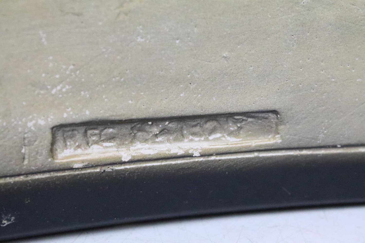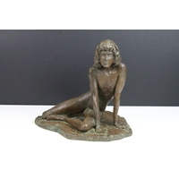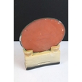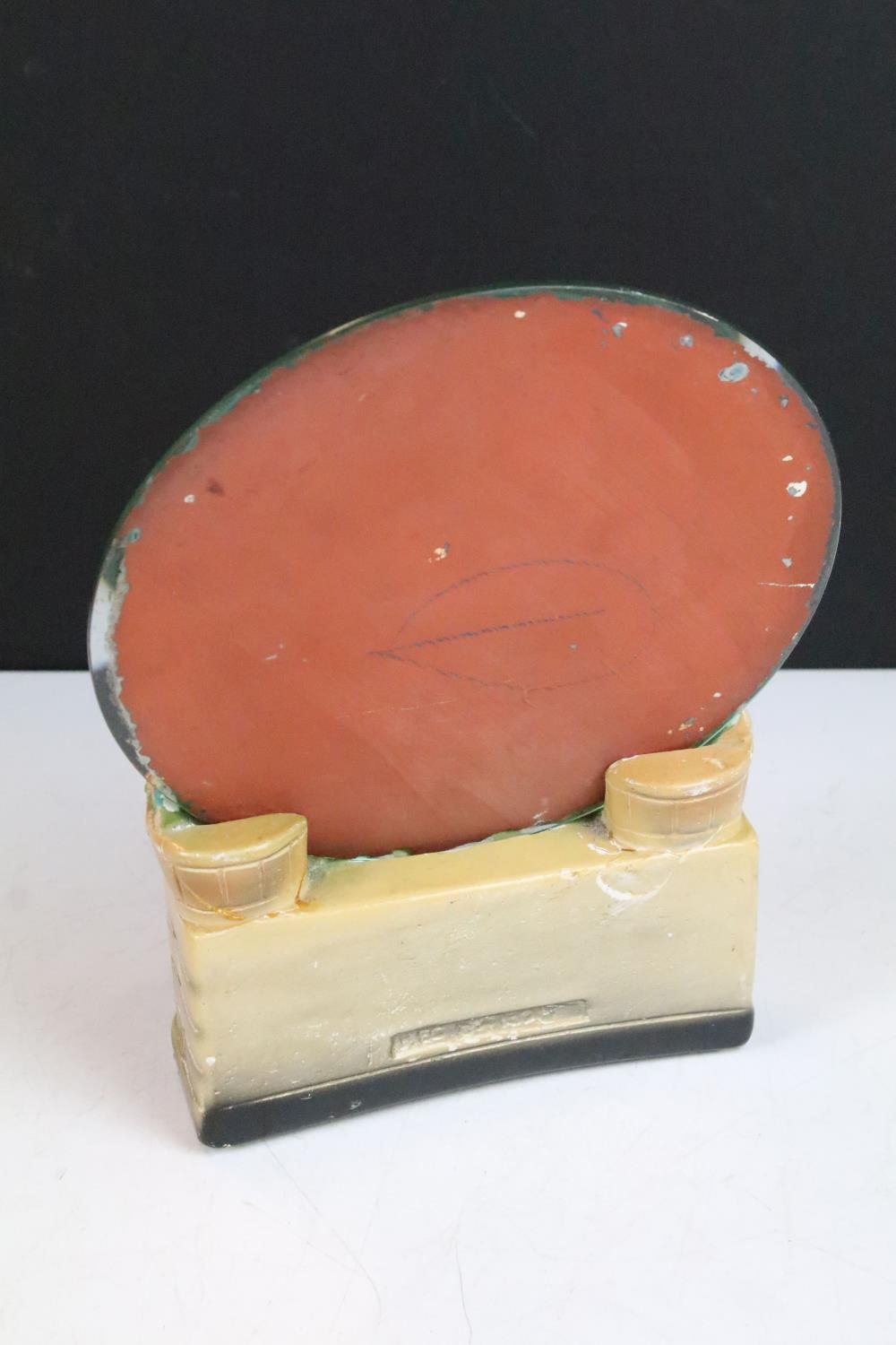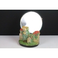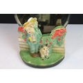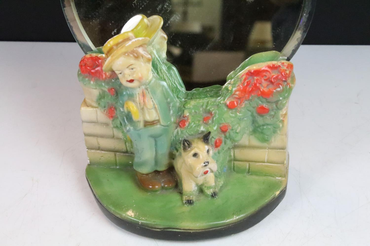Antique ceramic boy and dog by a wall scene with mirror stand background, H 27cm