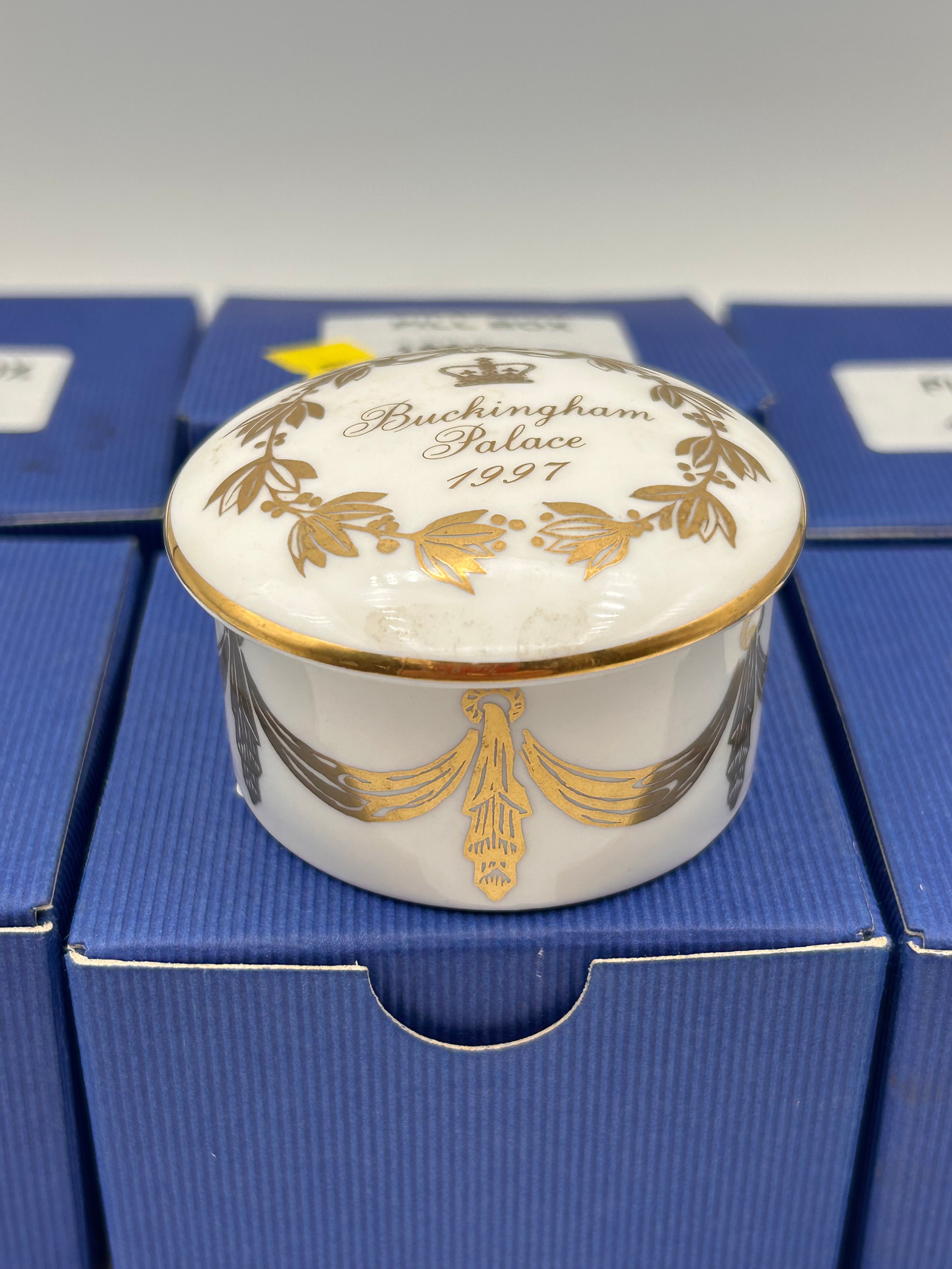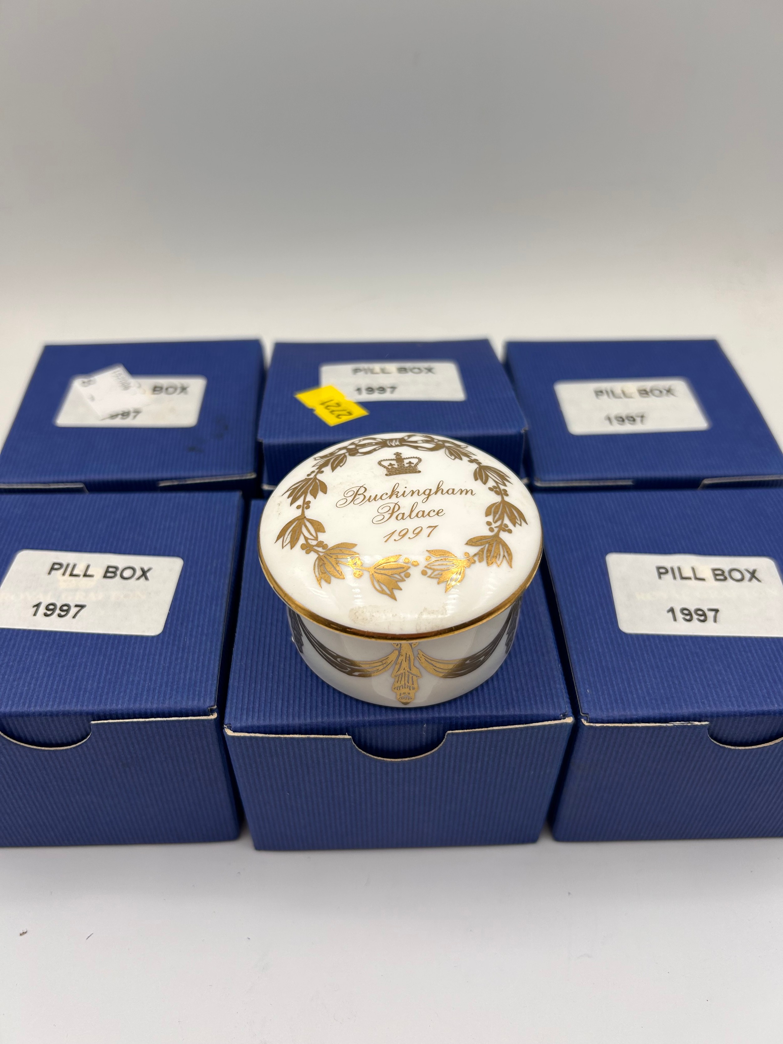 Six Boxed New Old Stock 1997 Buckingham Palace Pill boxes.