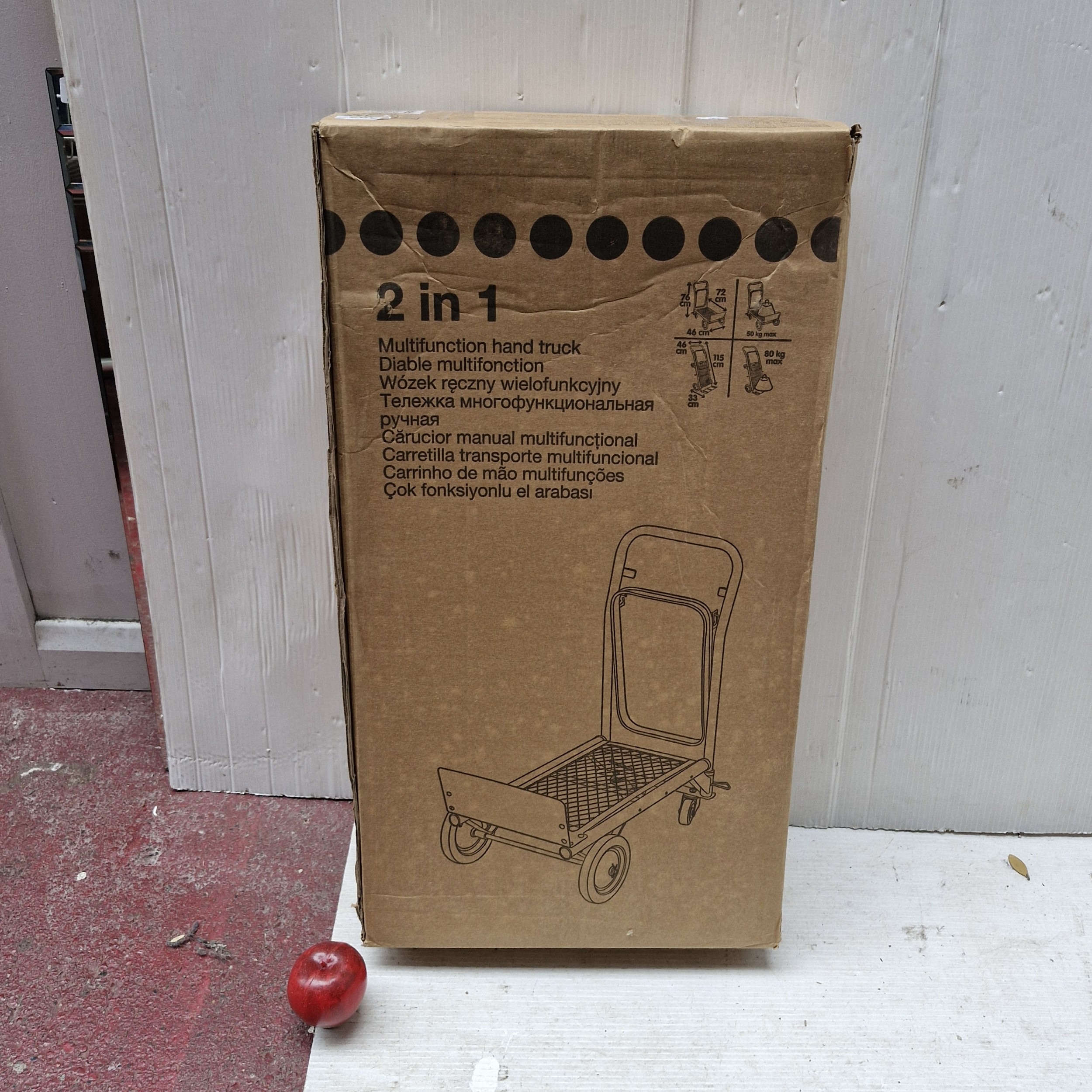A new in box 2 in 1 Multi functional hand truck made by Kingfisher. Converts between a sac truck and a platform truck. RRP: €94 for similar from screwfix.ie