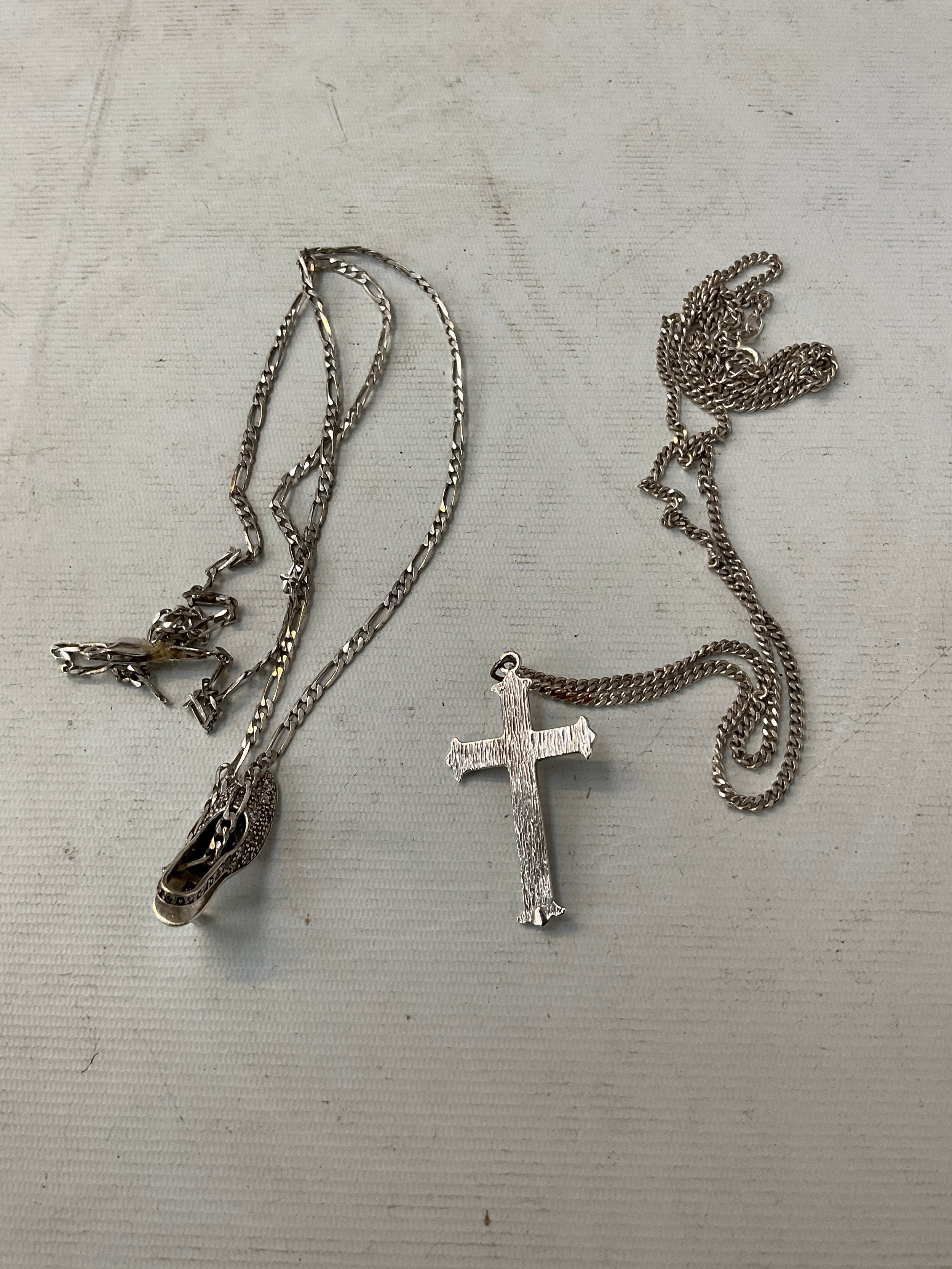 Two silver stamped necklaces with pendants, weight 18.2 grams