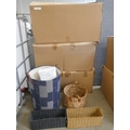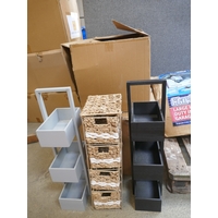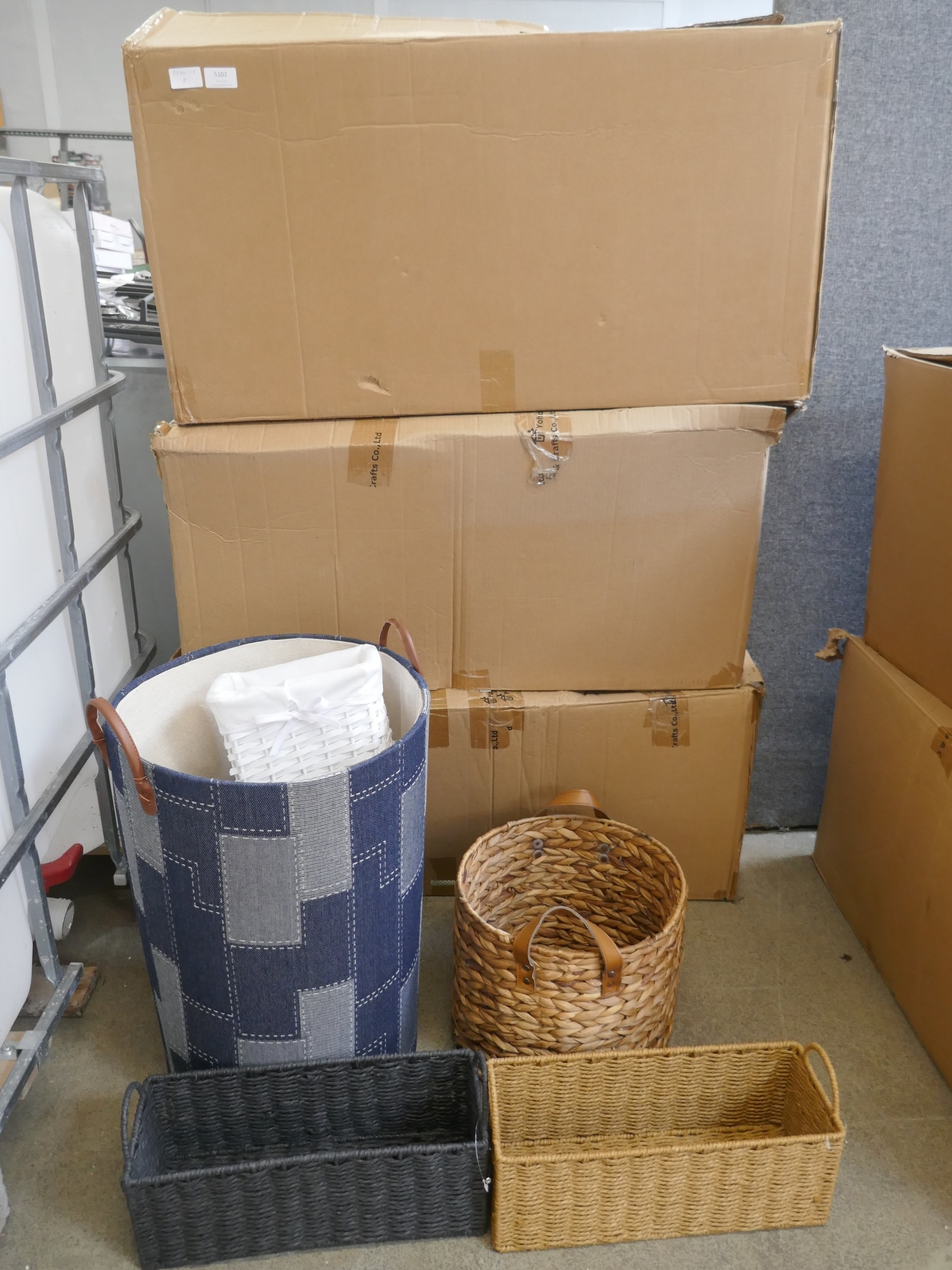 Three boxes of assorted wicker style baskets