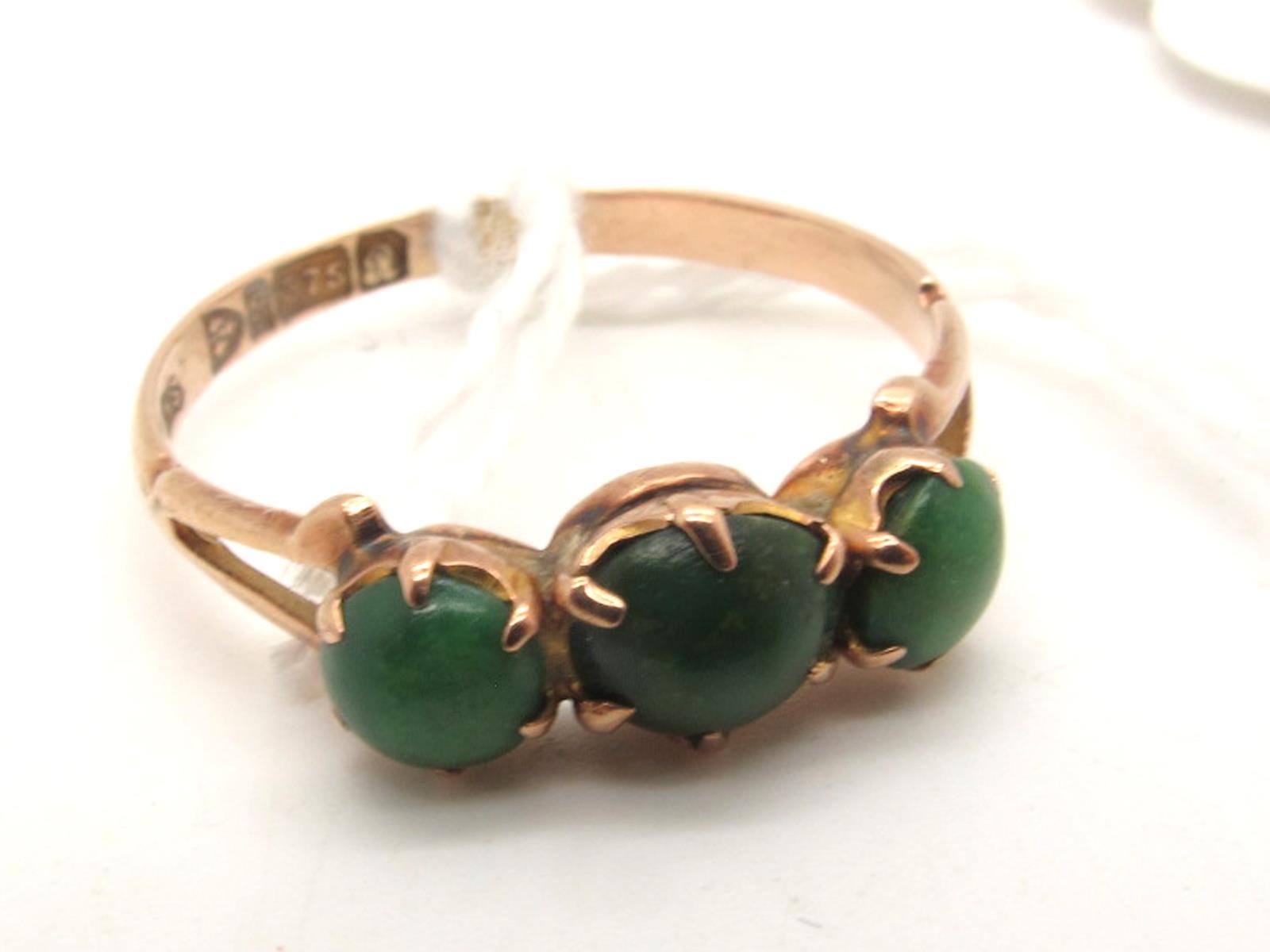 A Chester Hallmarked 9ct Gold Three Stone Ring, claw set (finger size P).