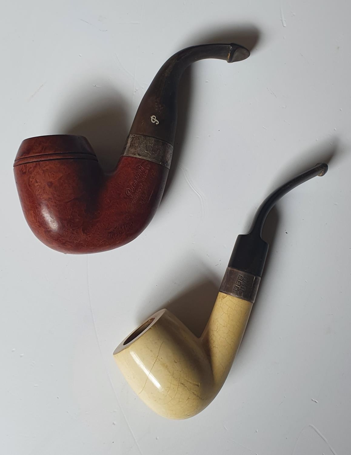 A Petersons of Dublin Sherlock Homes Pipe with Silver Ferrule along with a Petersons of Dublin silver ferruled Pipe with bone head.