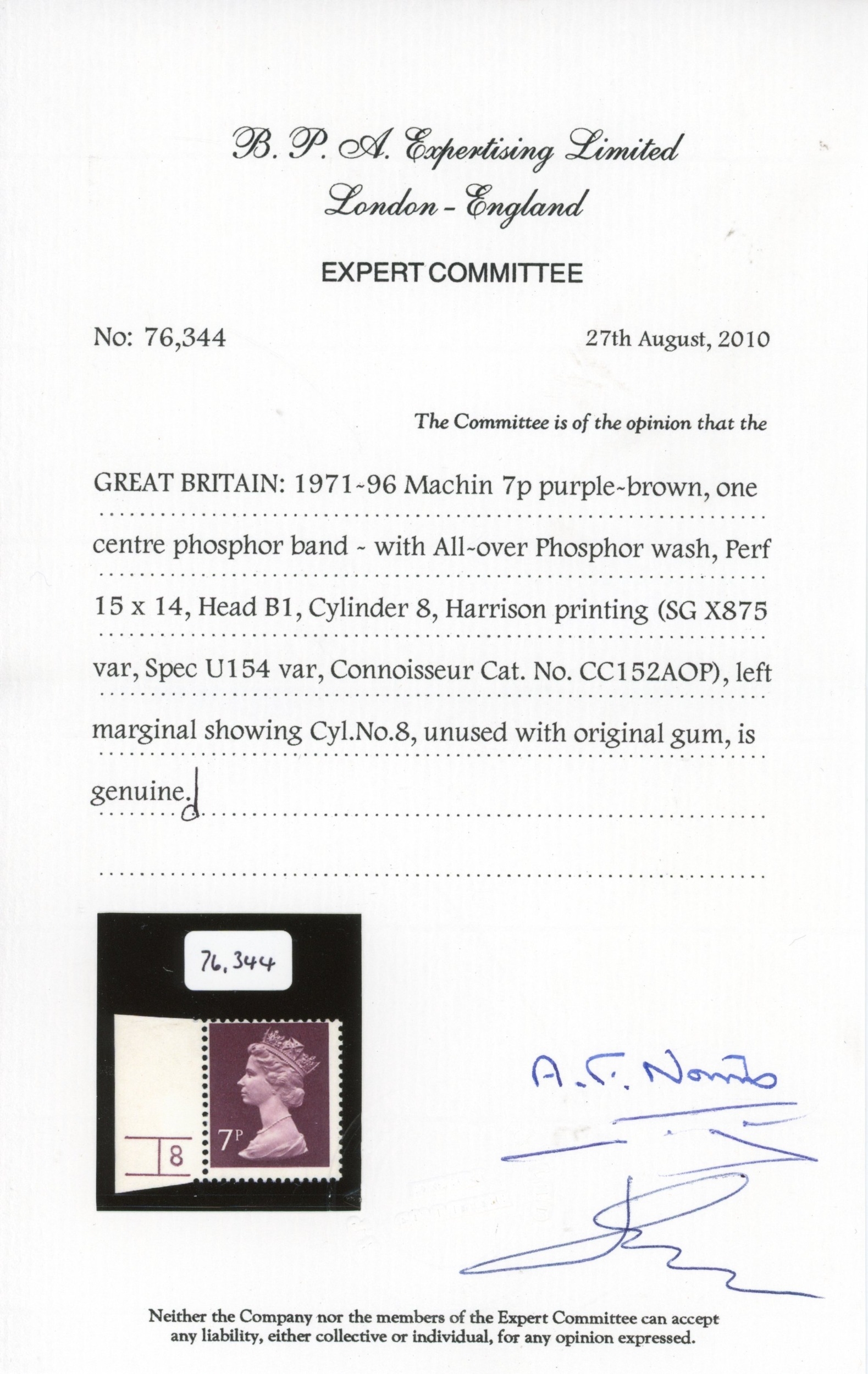 GB SG X875 1977 7p error of paper on PCP mint