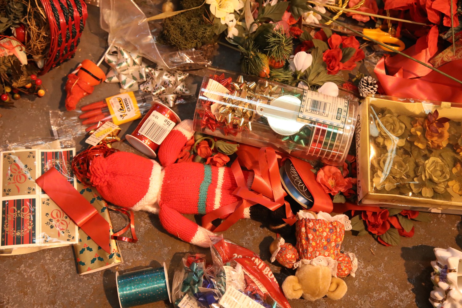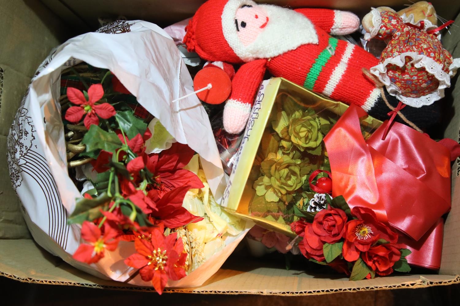 Box of Christmas decorations. Not available for in-house P&P, contact Paul O'Hea at Mailboxes on 01925 659133