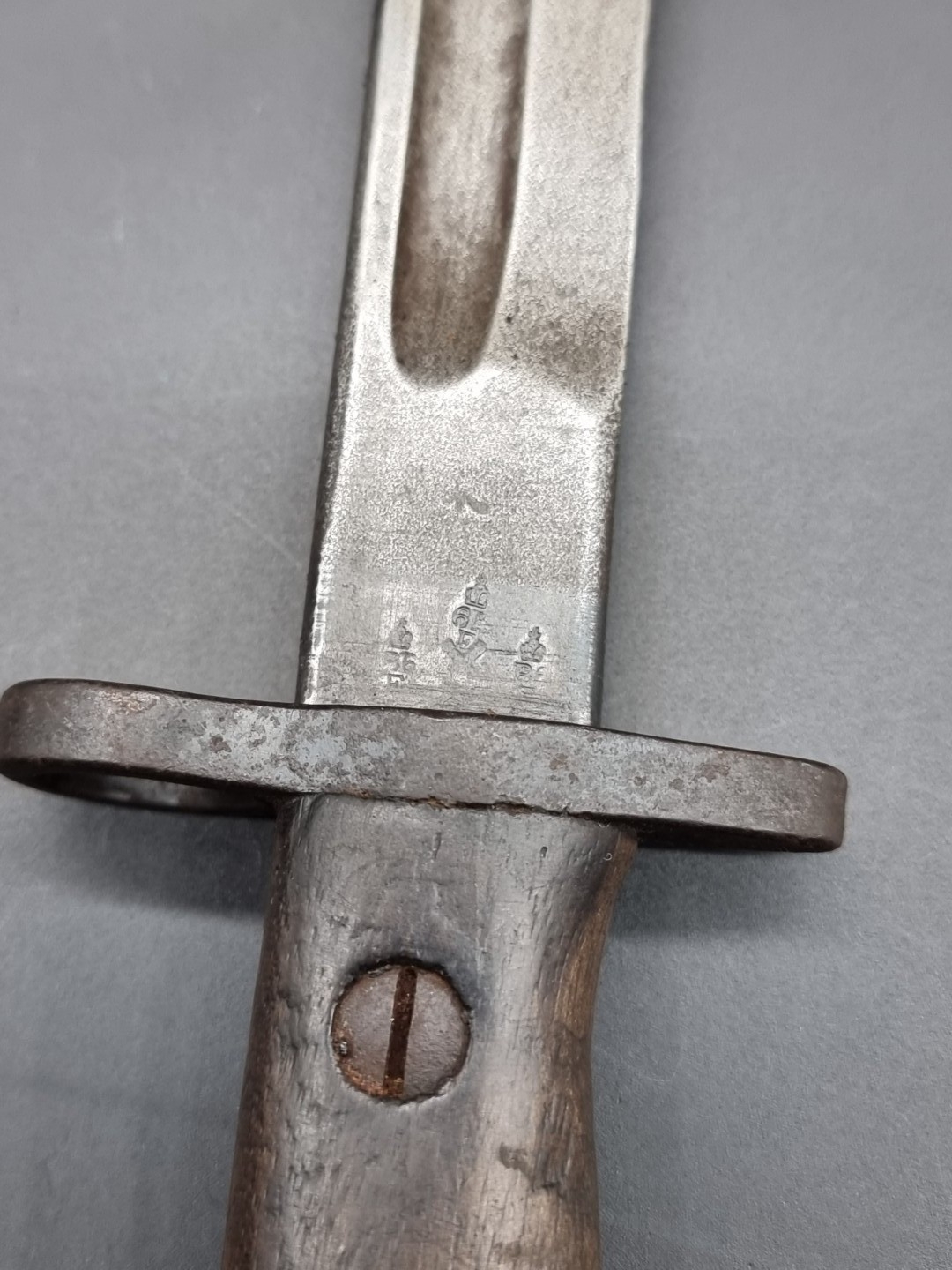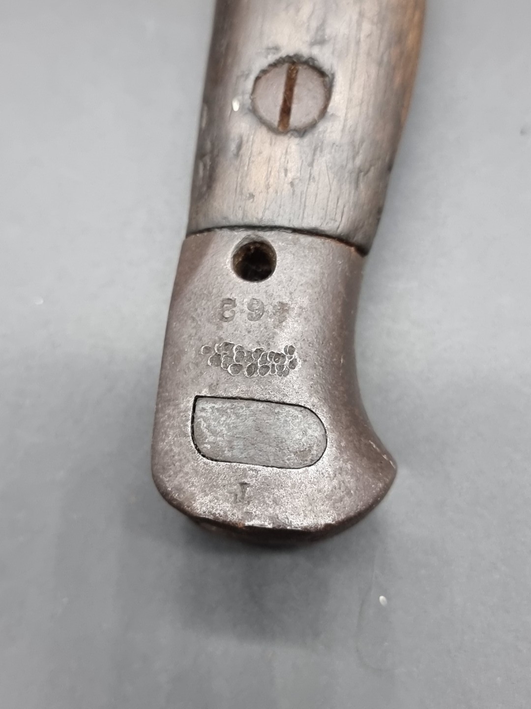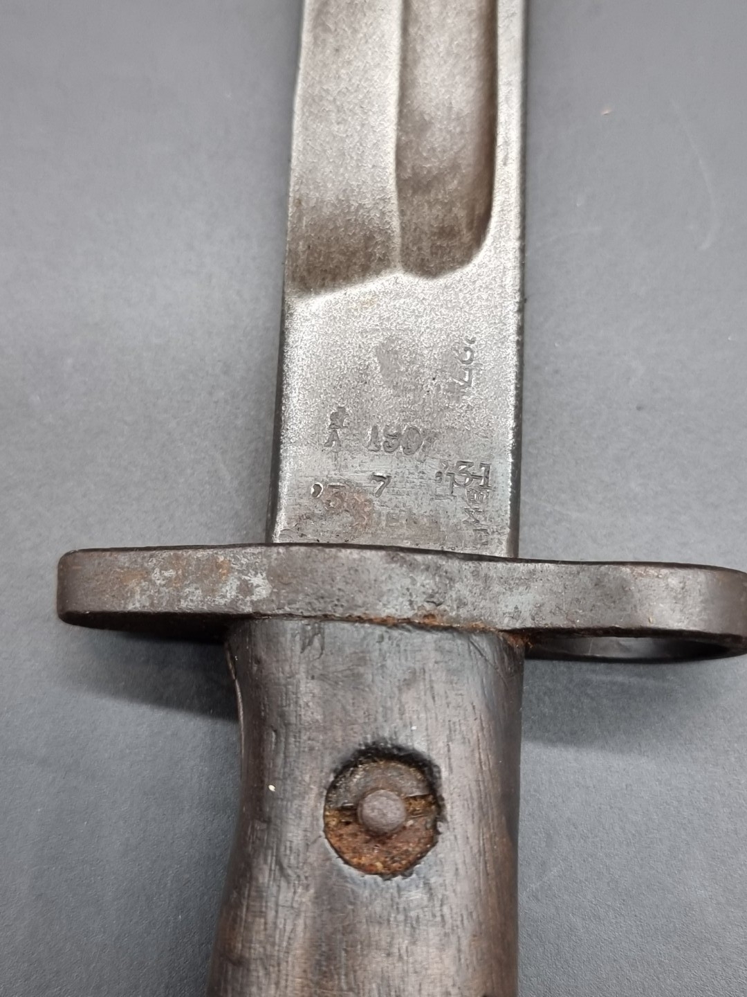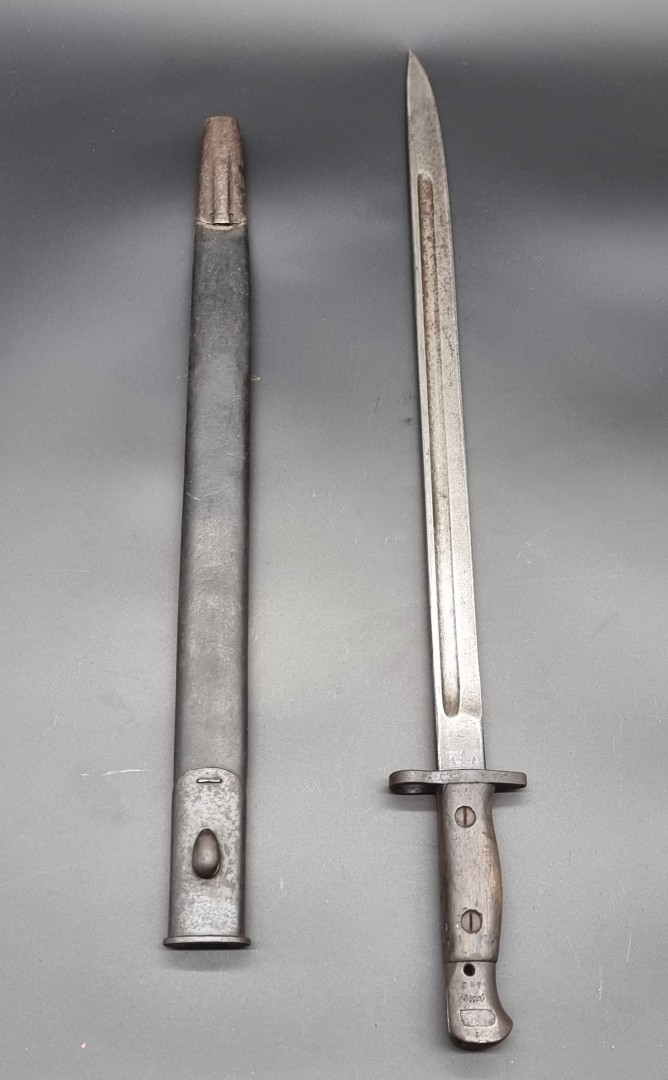 A British 1907 pattern sword bayonet MkI and scabbard, with 43cm blade.