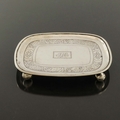 A George III Provincial silver teapot stand, David Darling, Newcastle circa 1800, cushioned rectangular form, bright cut engraved with a scrolling foliate border, on for ball feet, 16cm x 13cm, 5.40ozt