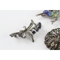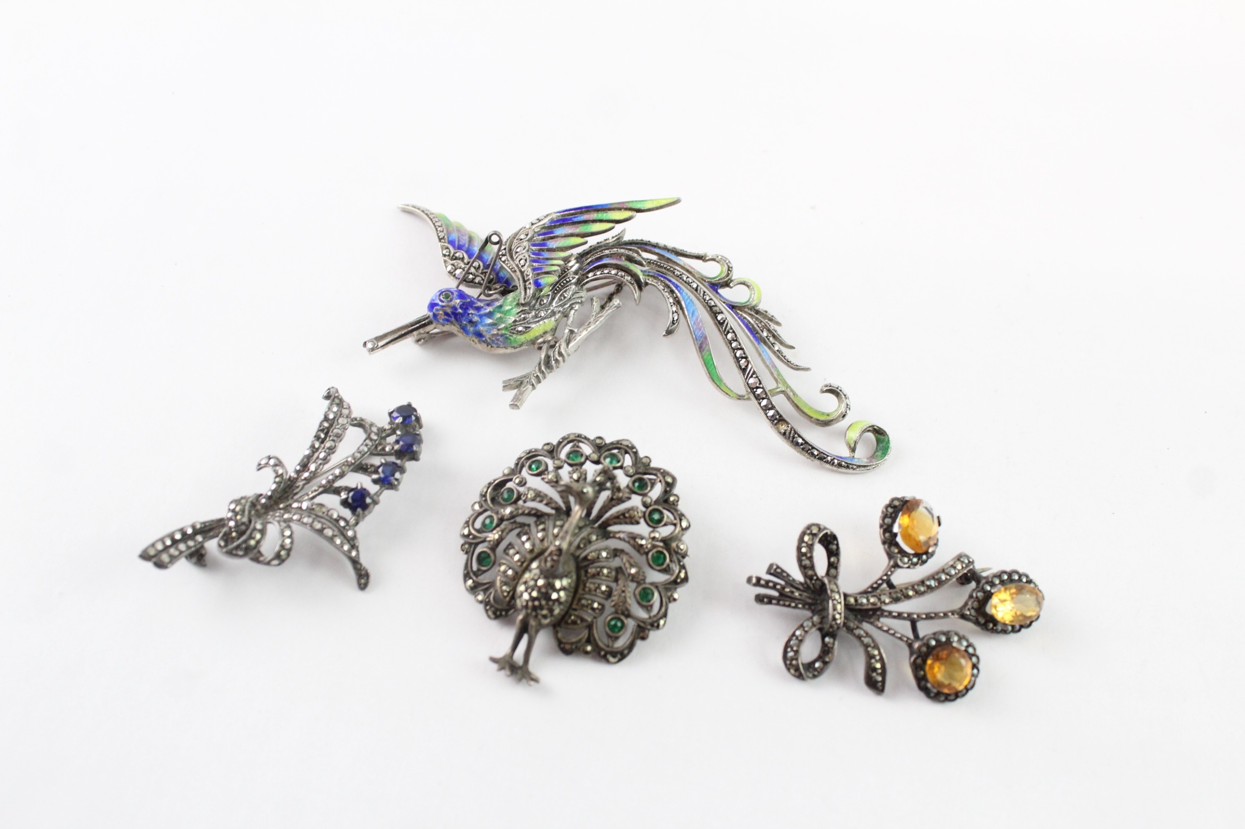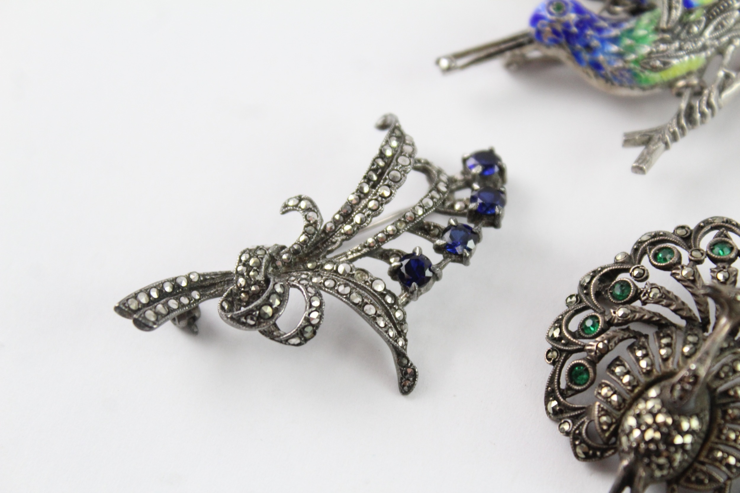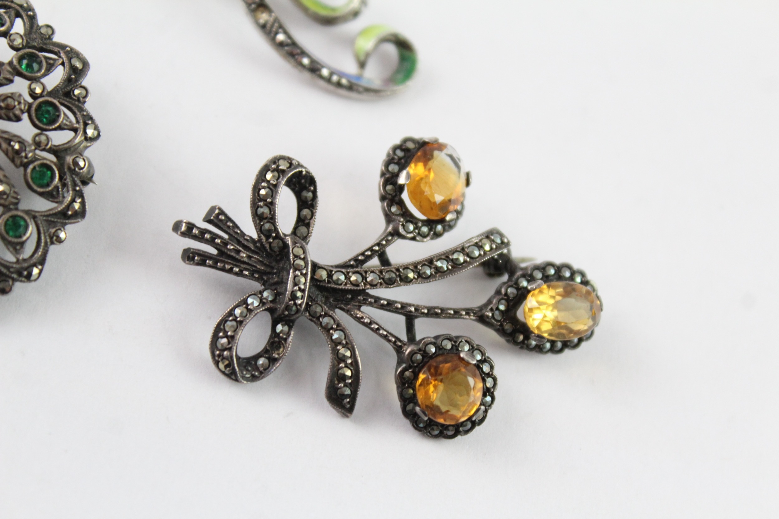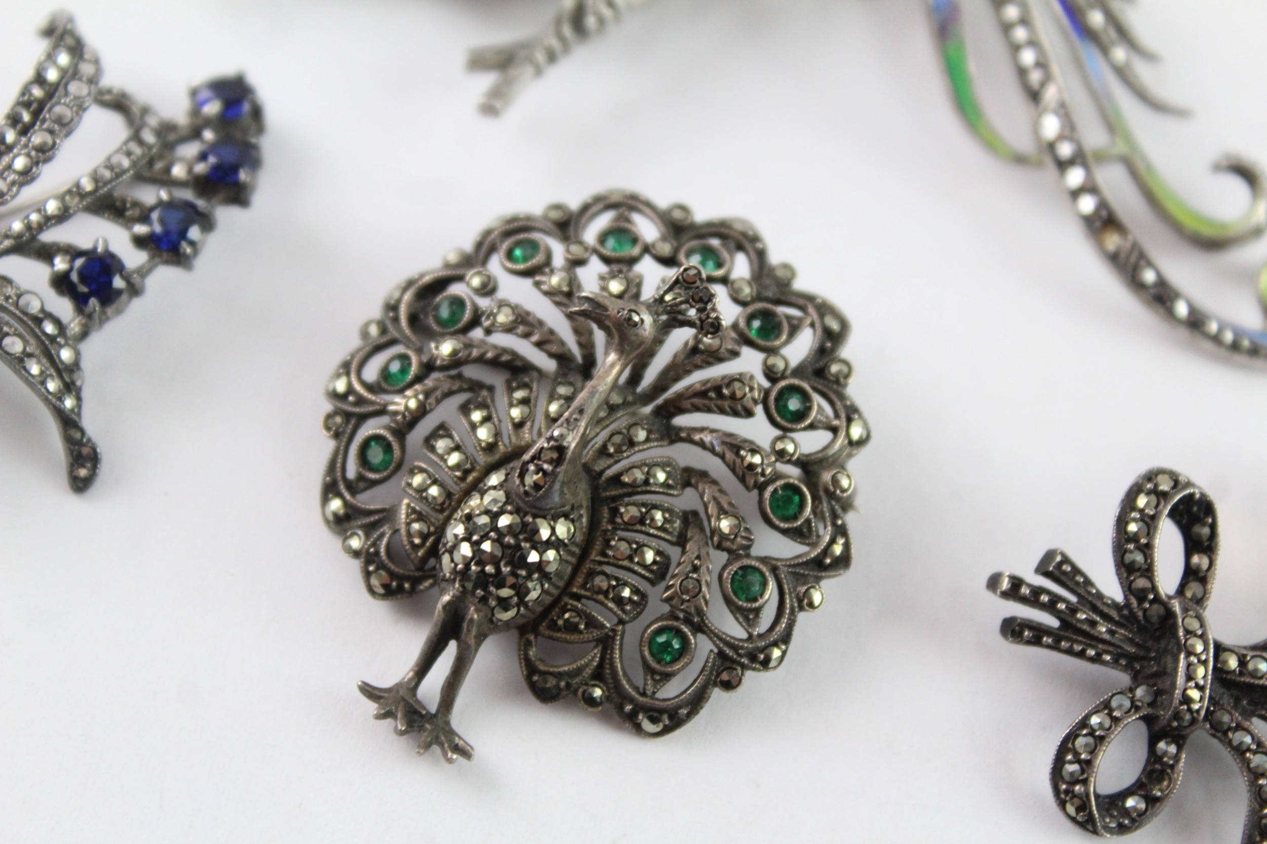 Collection of Silver Marcasite Brooches, inc. Stone Set, Vintage, Enamel x 4 (51g)
