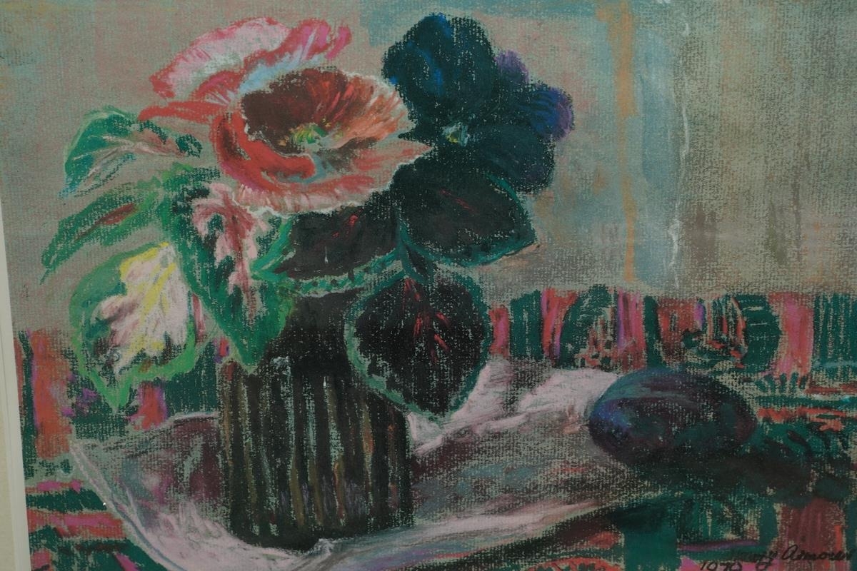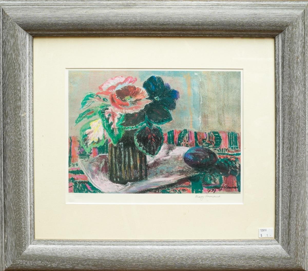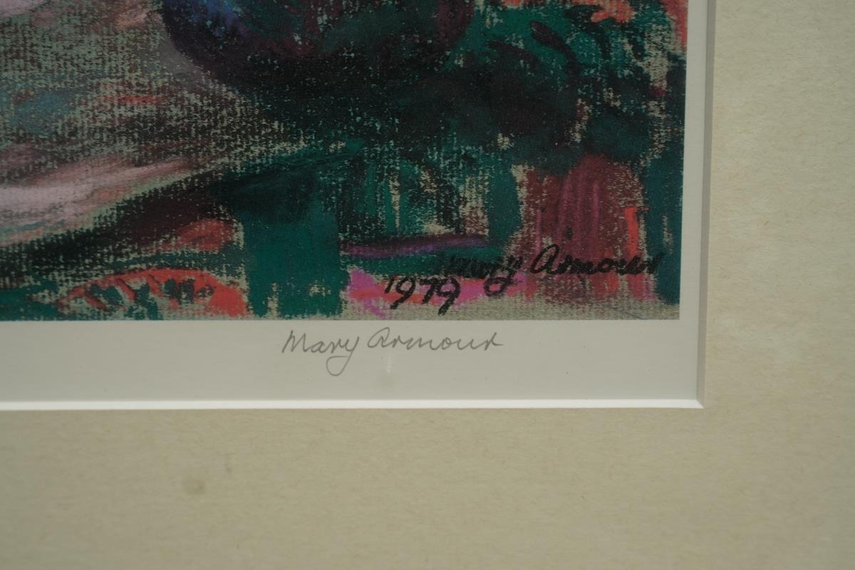 MARY ARMOUR, STILL LIFE OF FLOWERS AND A VASE, colour print, signed in pencil, framed and under glass, approx 57cm wide x 50cm high overall