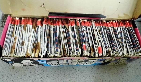 Box of sealed Elvis club cards - in packs