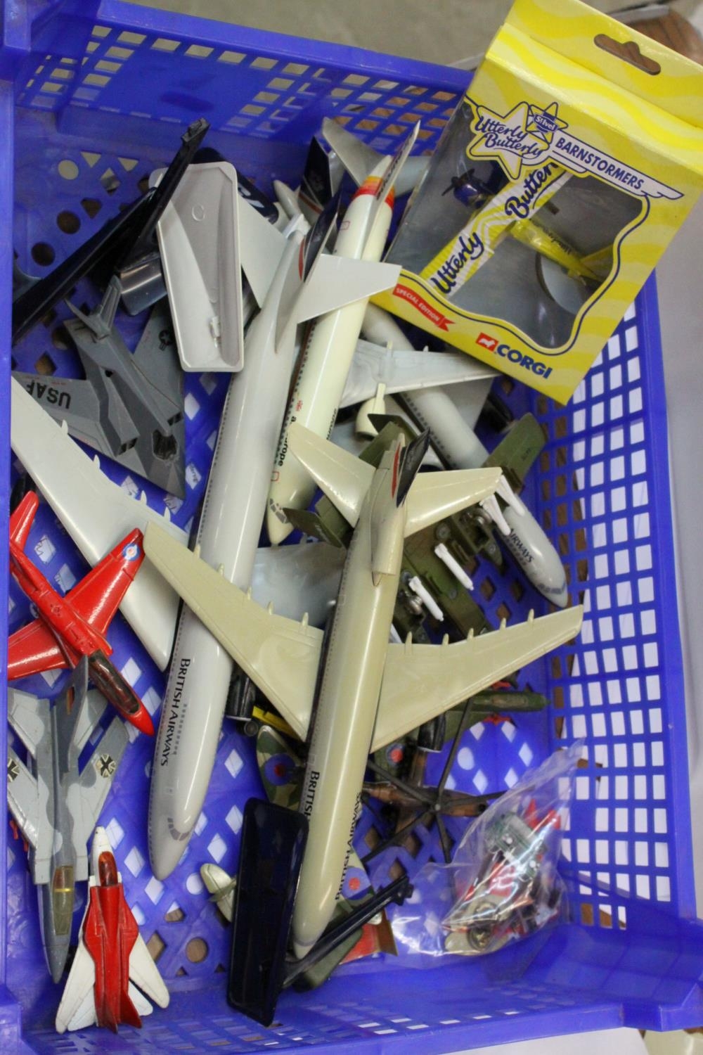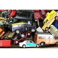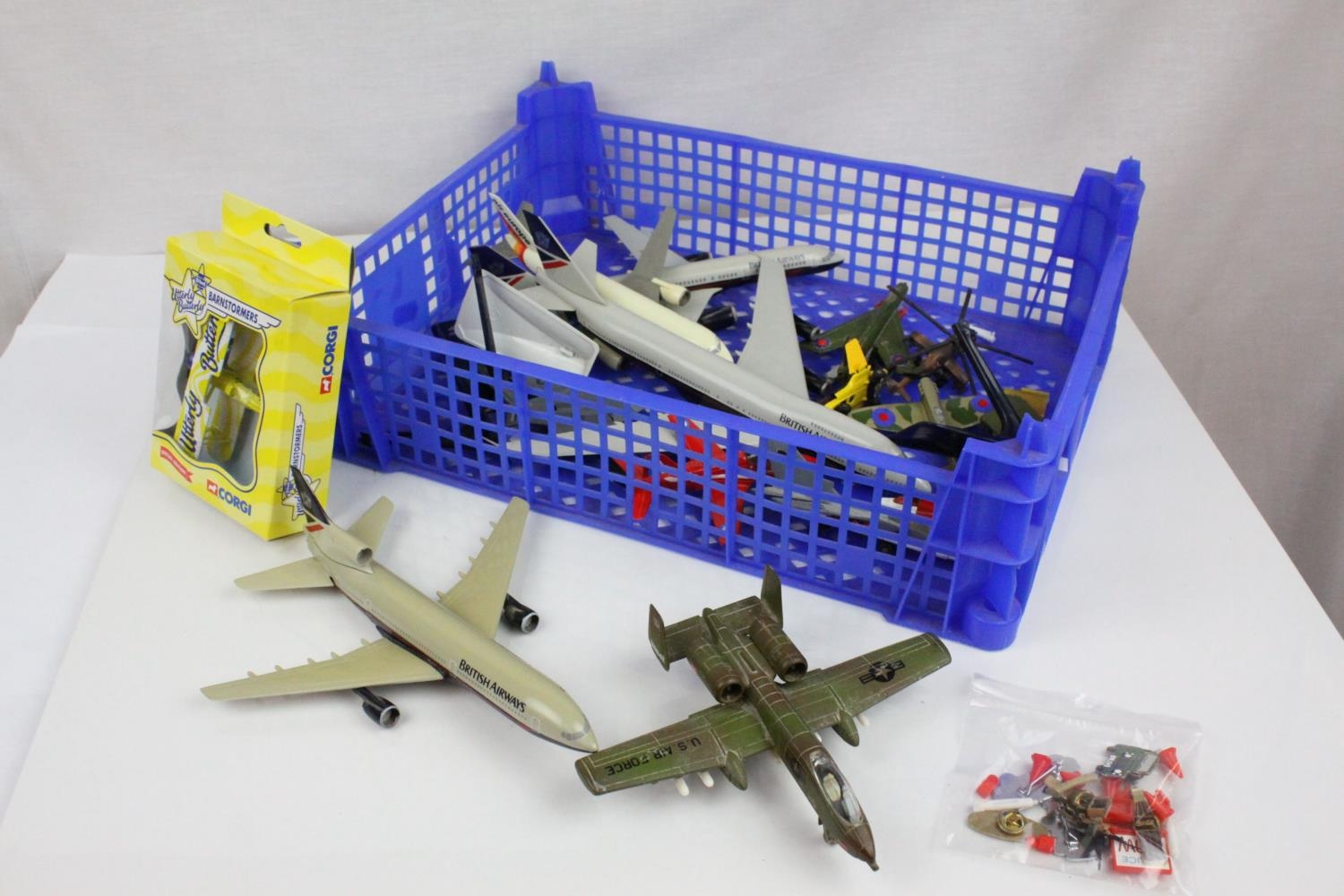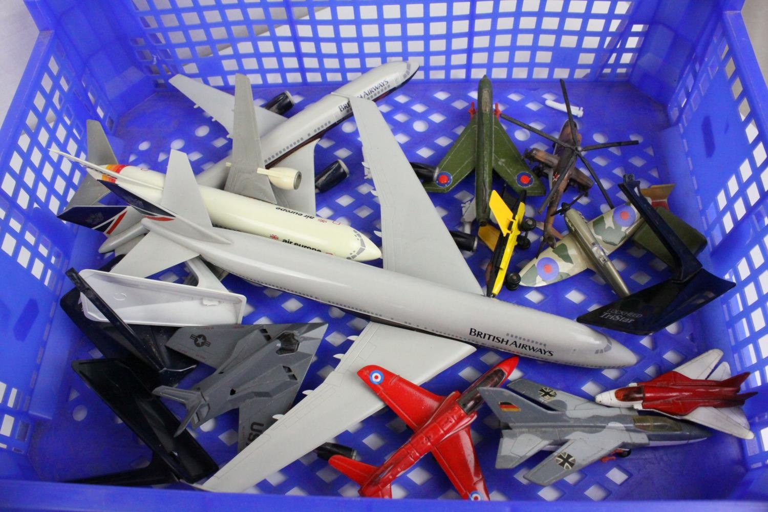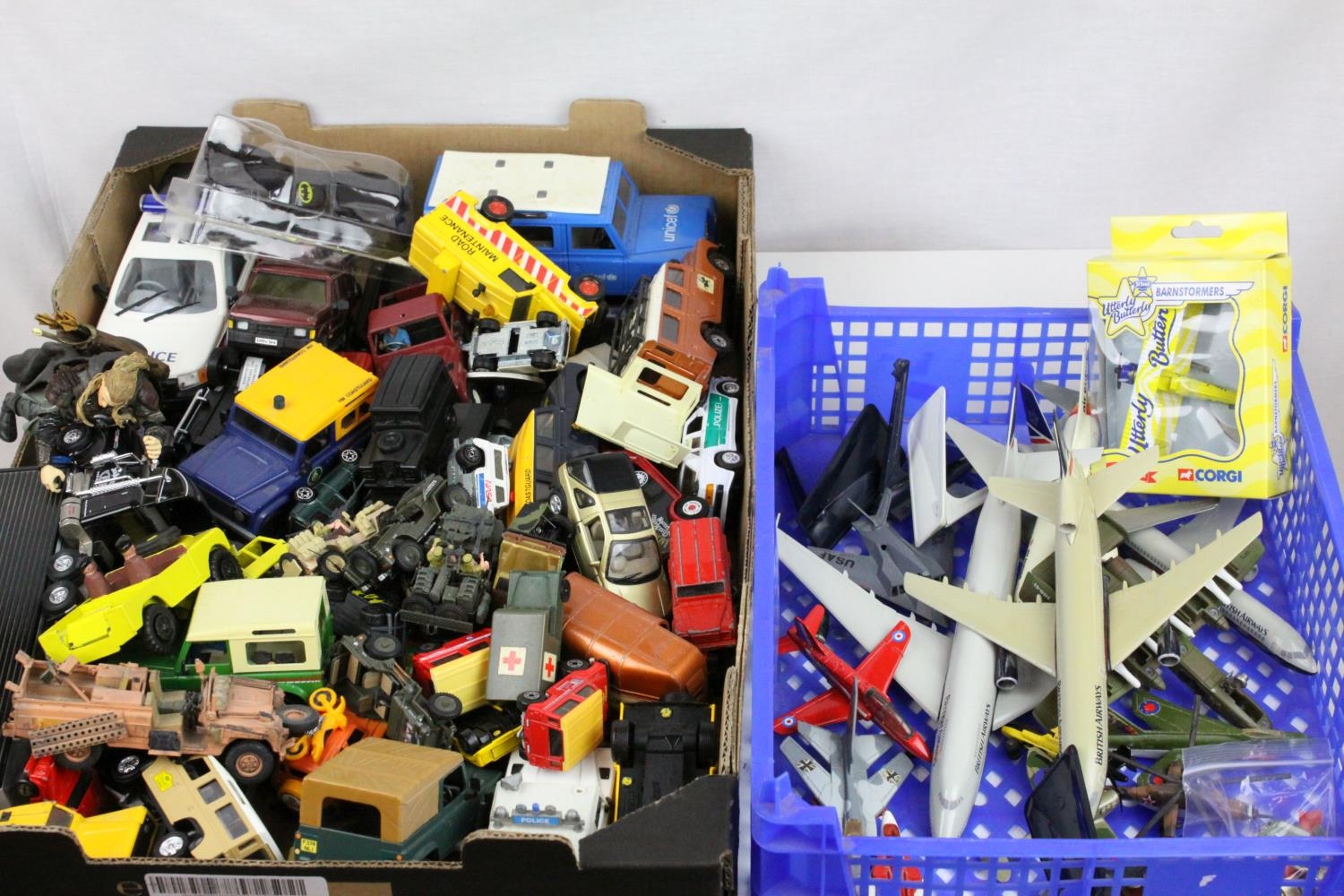 Collection of diecast/plastic model vehicles to include cars, vans, lorries, planes featuring Matchbox, Corgi, ERTL, Majorette, Lledo etc (2 trays)