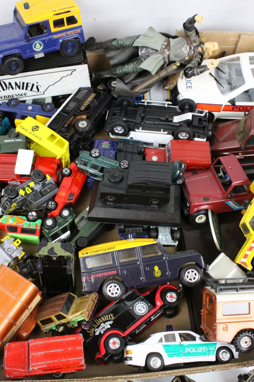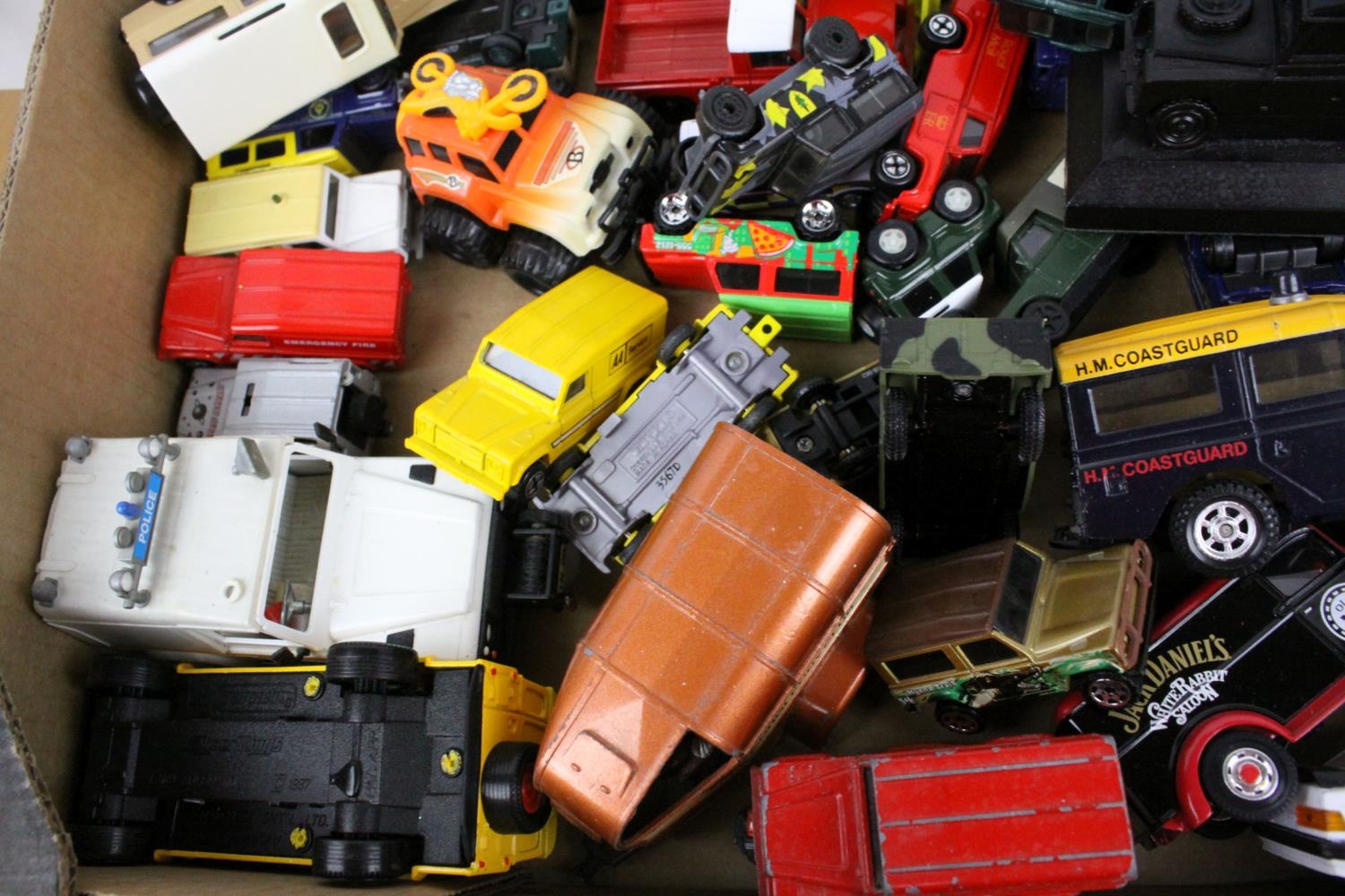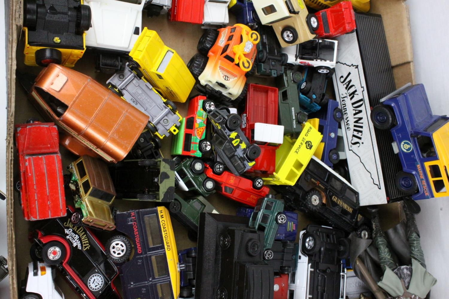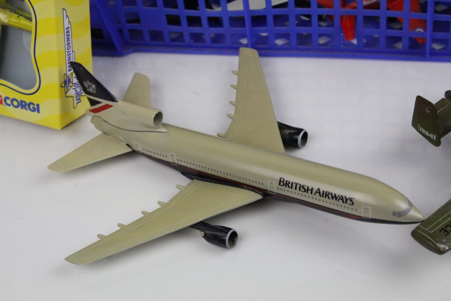 Collection of diecast/plastic model vehicles to include cars, vans, lorries, planes featuring Matchbox, Corgi, ERTL, Majorette, Lledo etc (2 trays)
