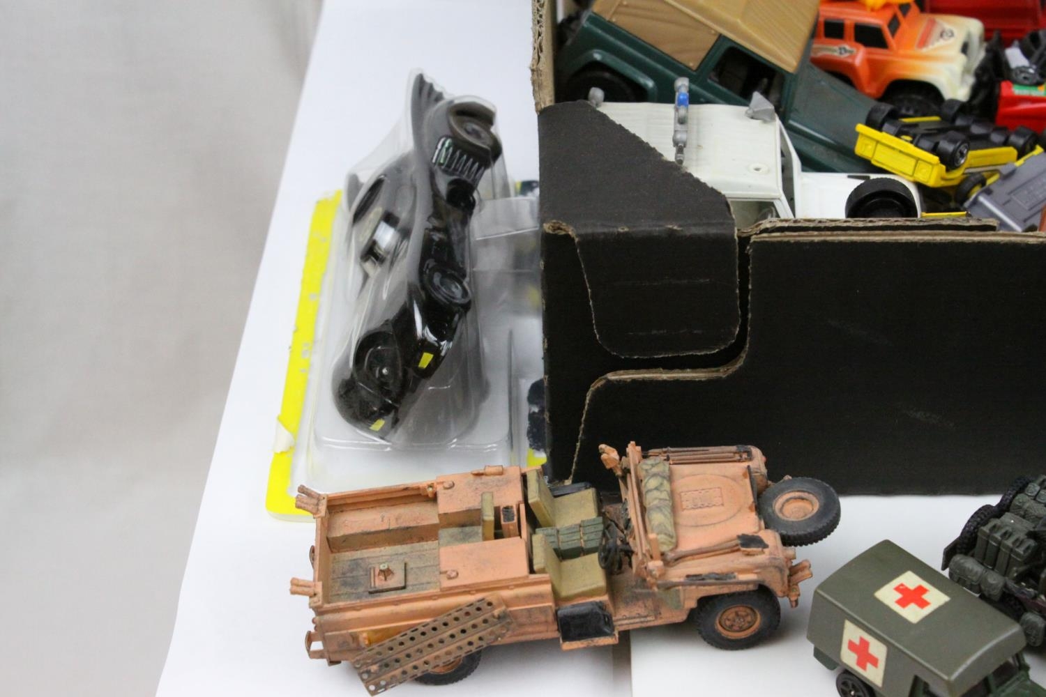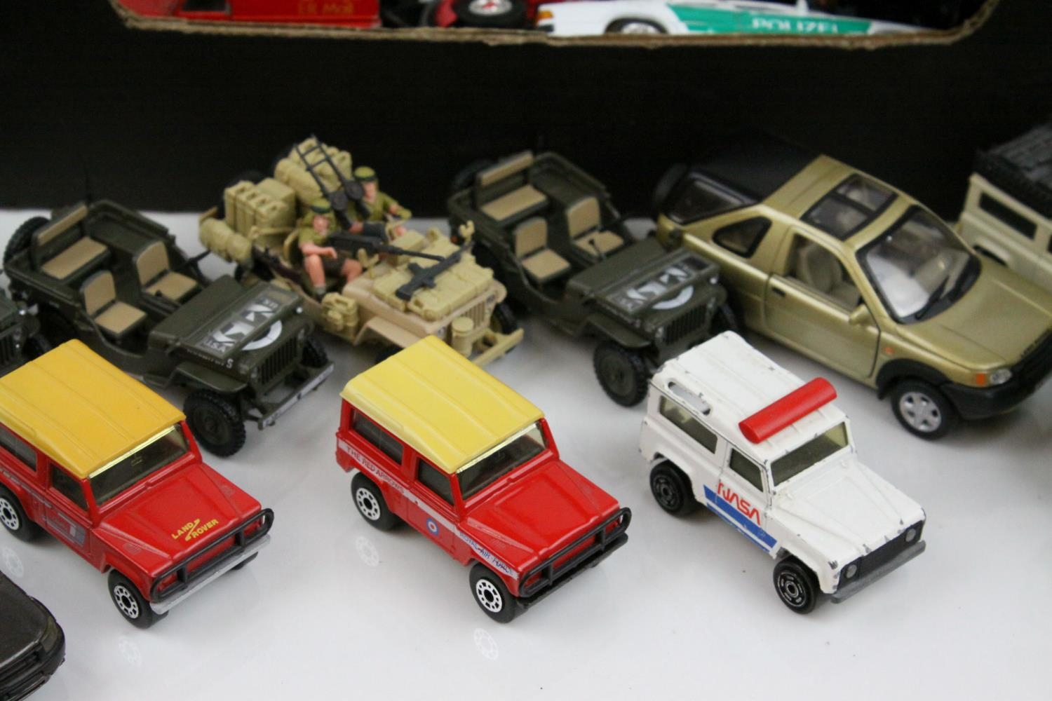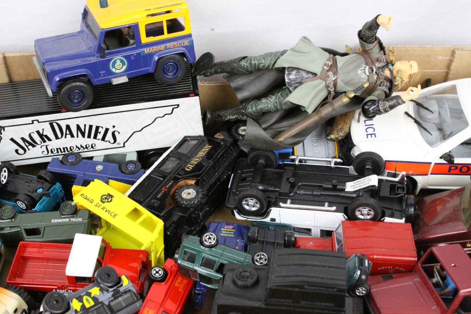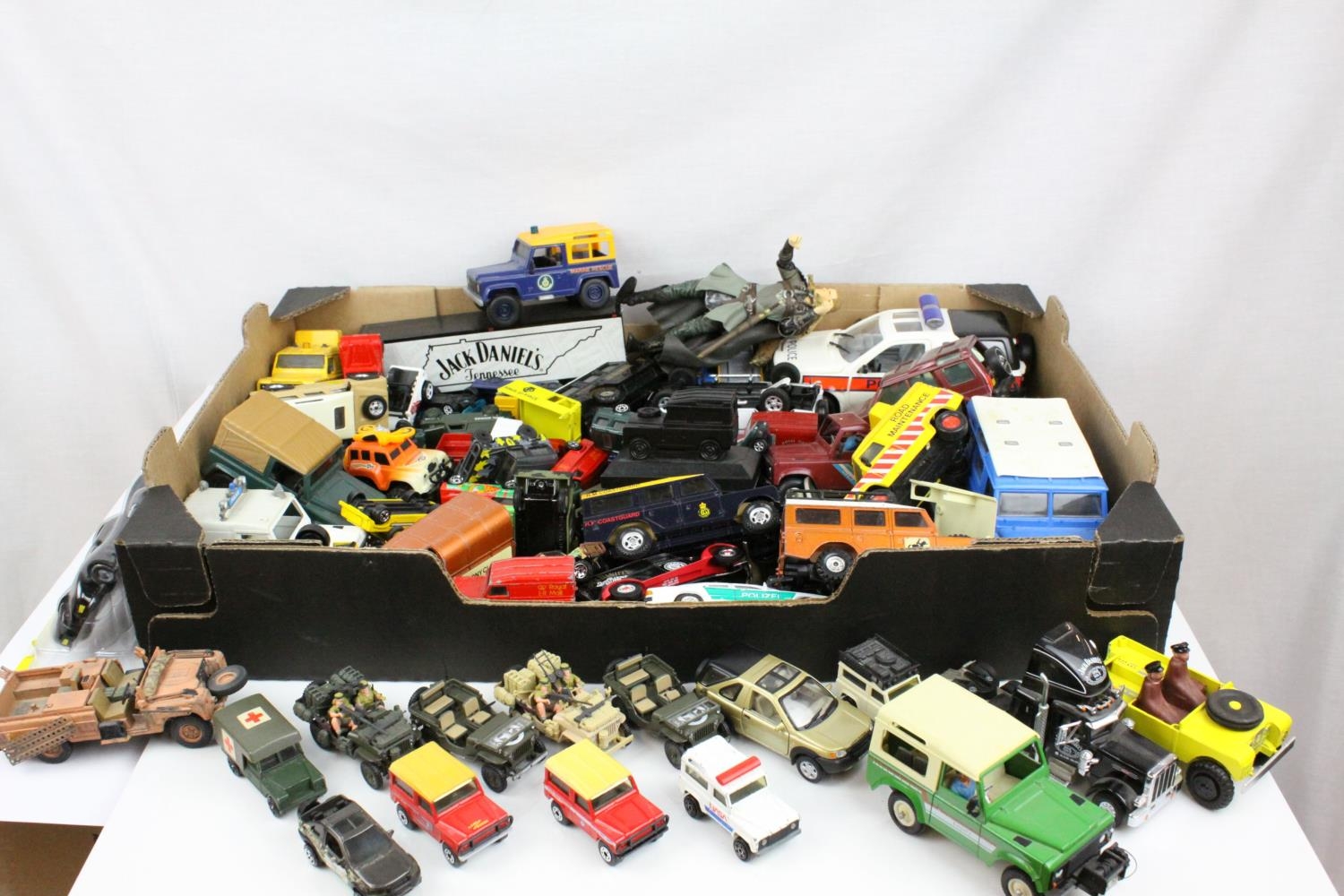 Collection of diecast/plastic model vehicles to include cars, vans, lorries, planes featuring Matchbox, Corgi, ERTL, Majorette, Lledo etc (2 trays)