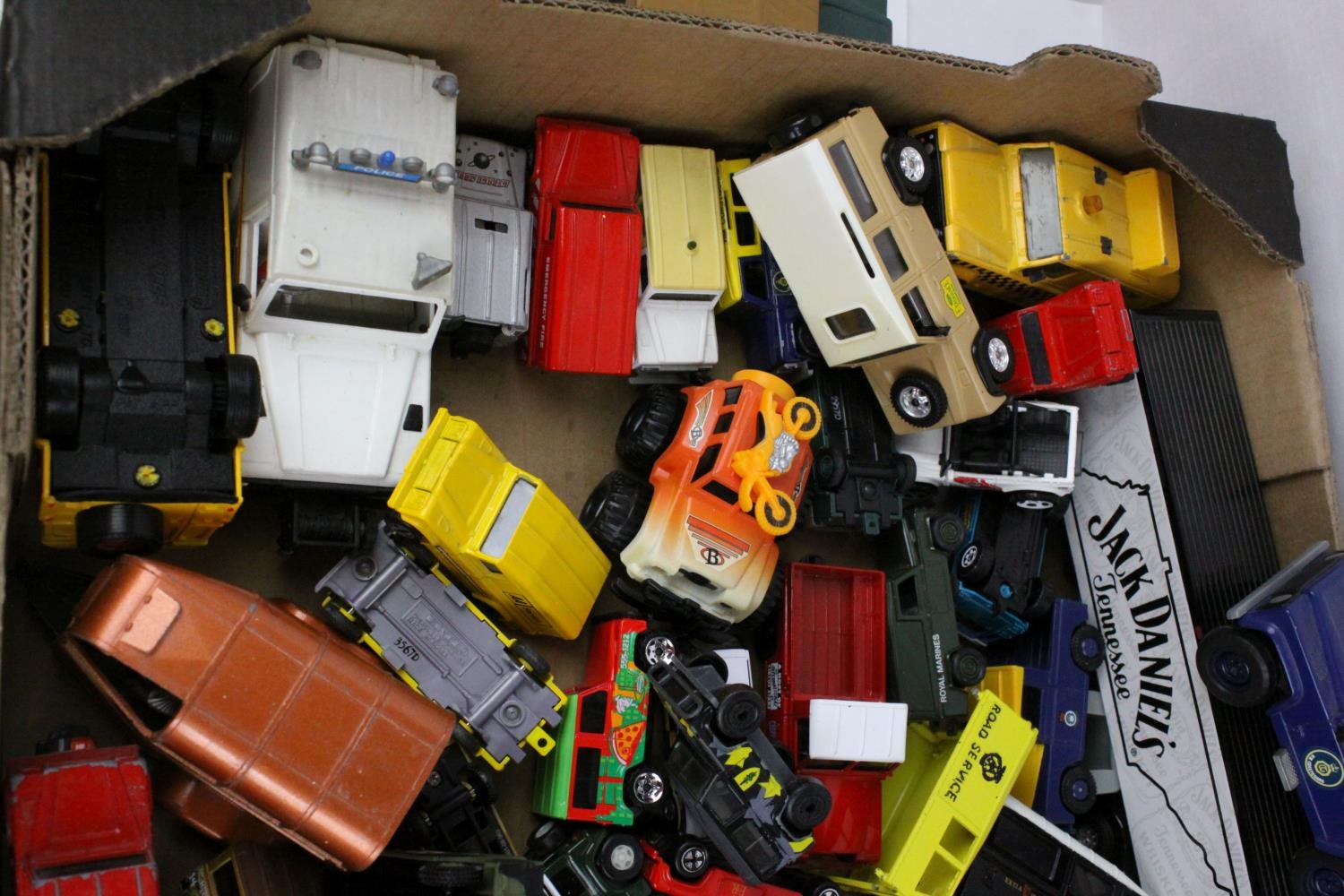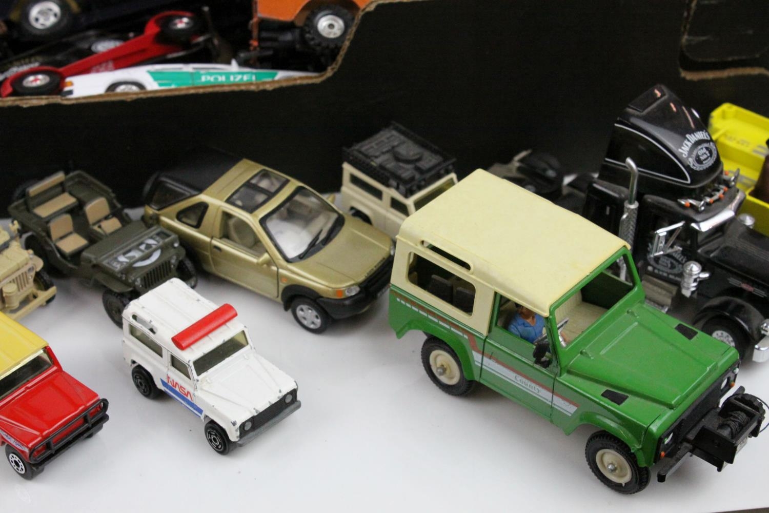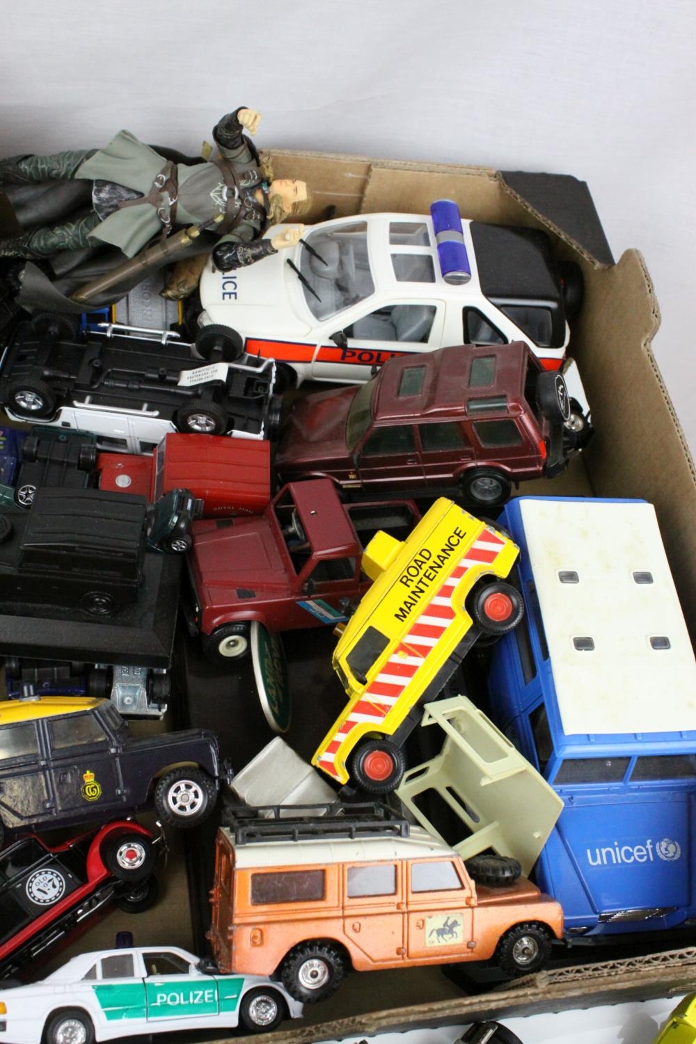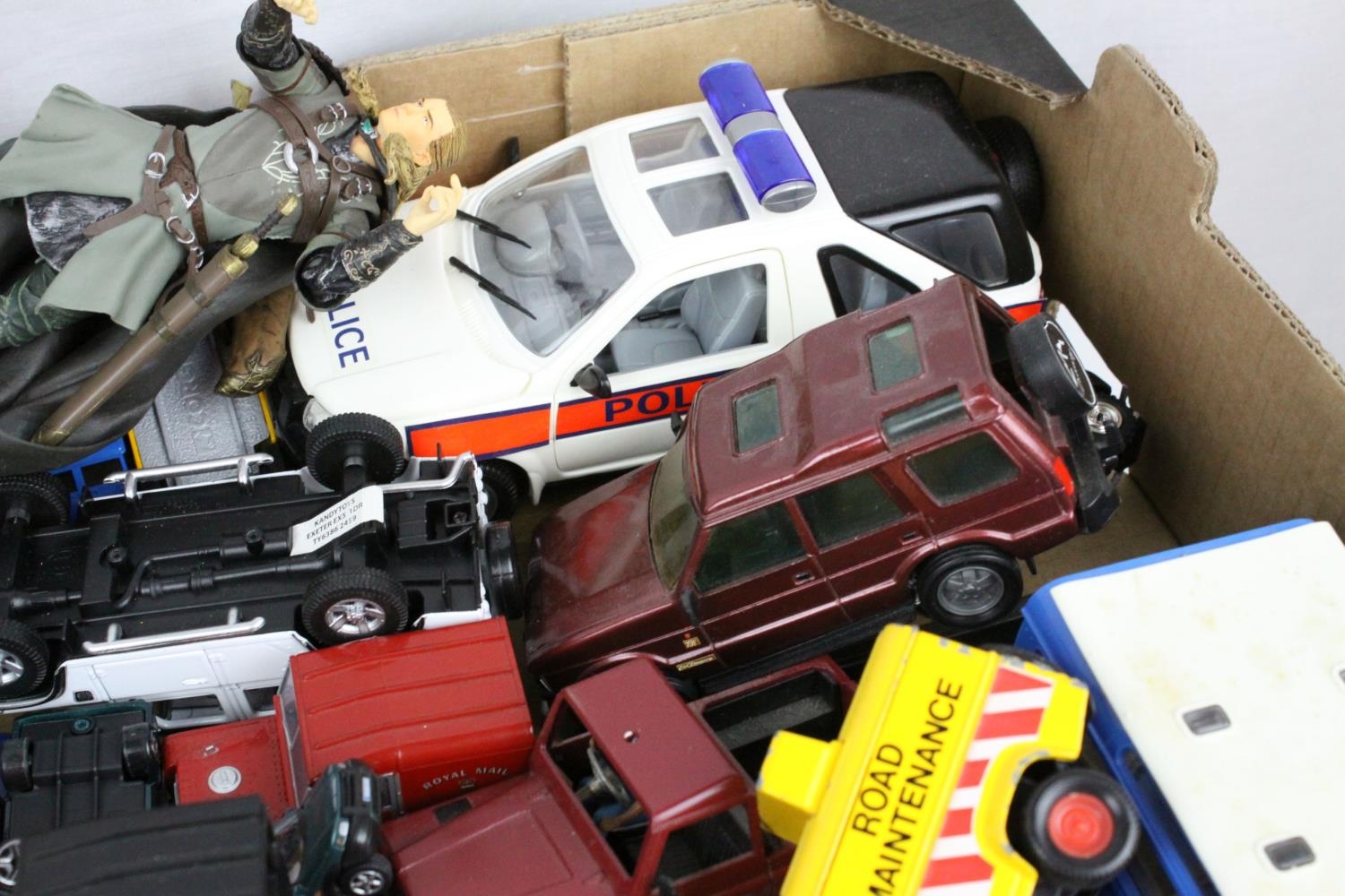 Collection of diecast/plastic model vehicles to include cars, vans, lorries, planes featuring Matchbox, Corgi, ERTL, Majorette, Lledo etc (2 trays)