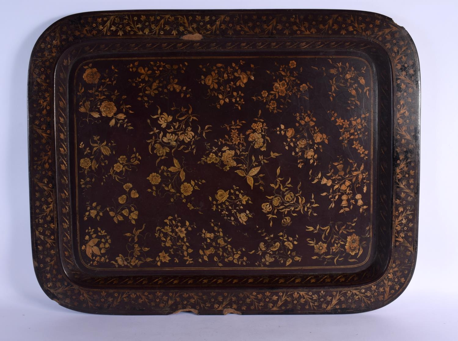 A LARGE LATE 18TH/19TH CENTURY ENGLISH COUNTRY HOUSE LACQUERED TRAY Chinese Export style. 64 cm x 50 cm.