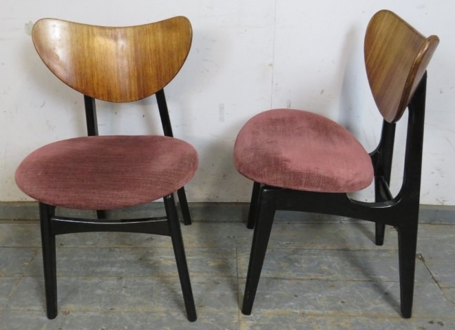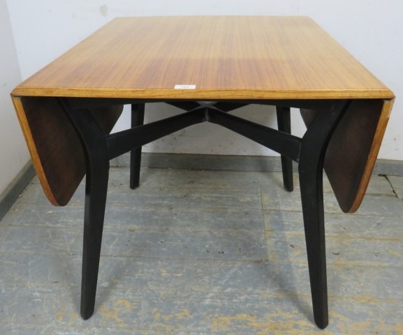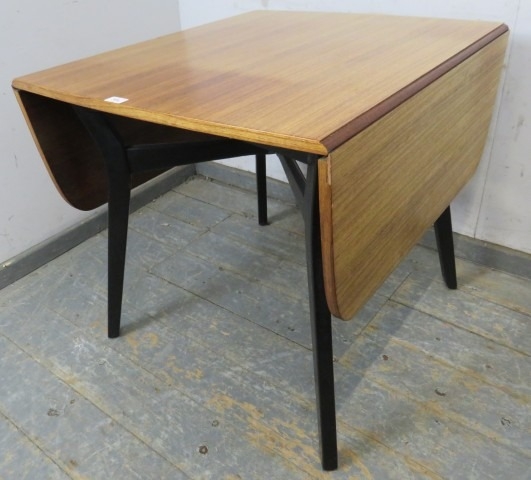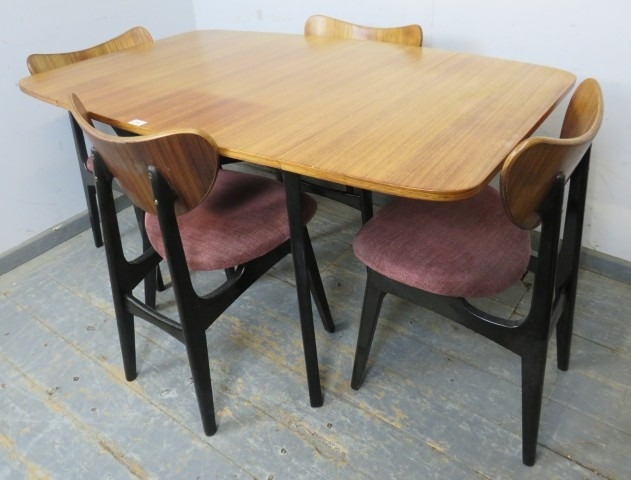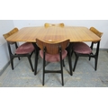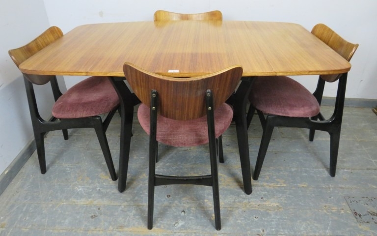 A fine G Plan Librenza Tola drop leaf dining table with ebonized legs together with four chairs. H73cm x W74/138cm x D84cm approx.
