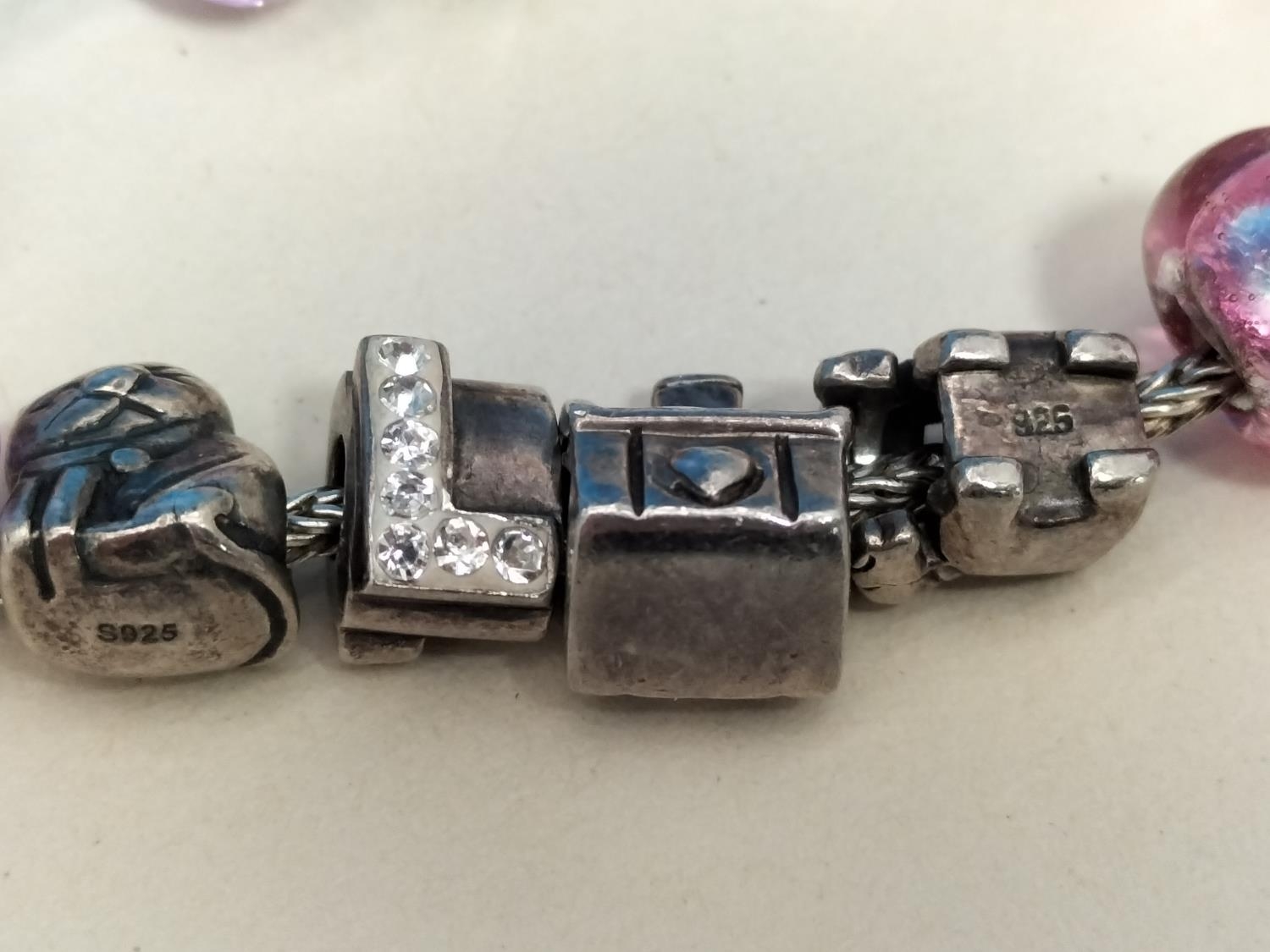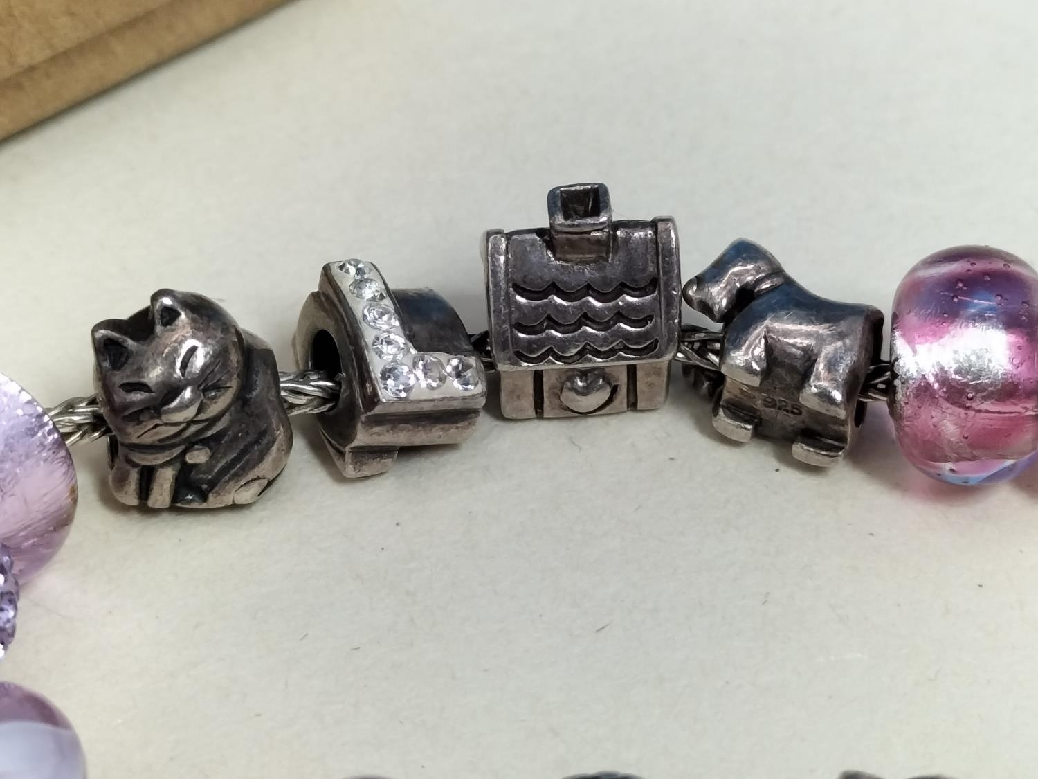 Silver 925 6" Charm Bracelet with Silver Charms. Tested.