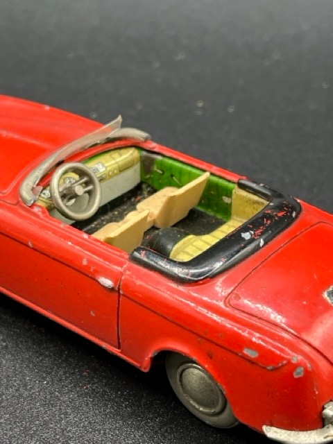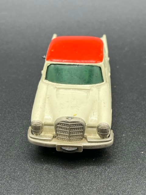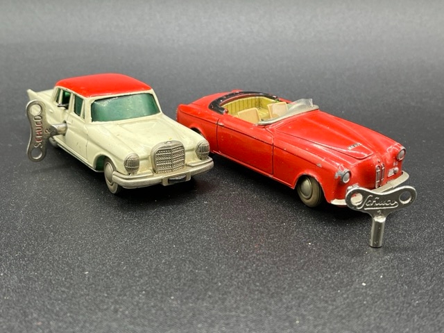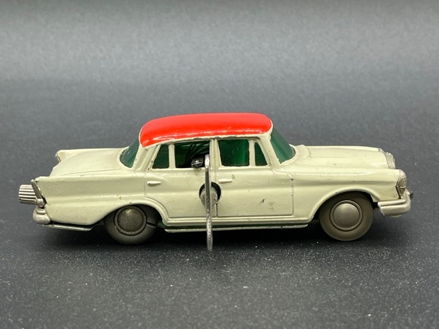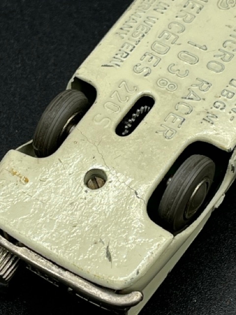 Schuco Micro Racer 1038 Mercedes 220S with key - Operation not perfect, appears to have been attempted repair in past causing stress to chassis as shown