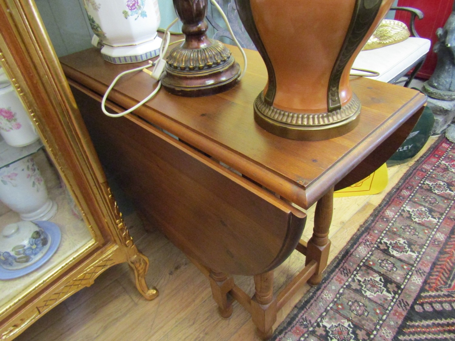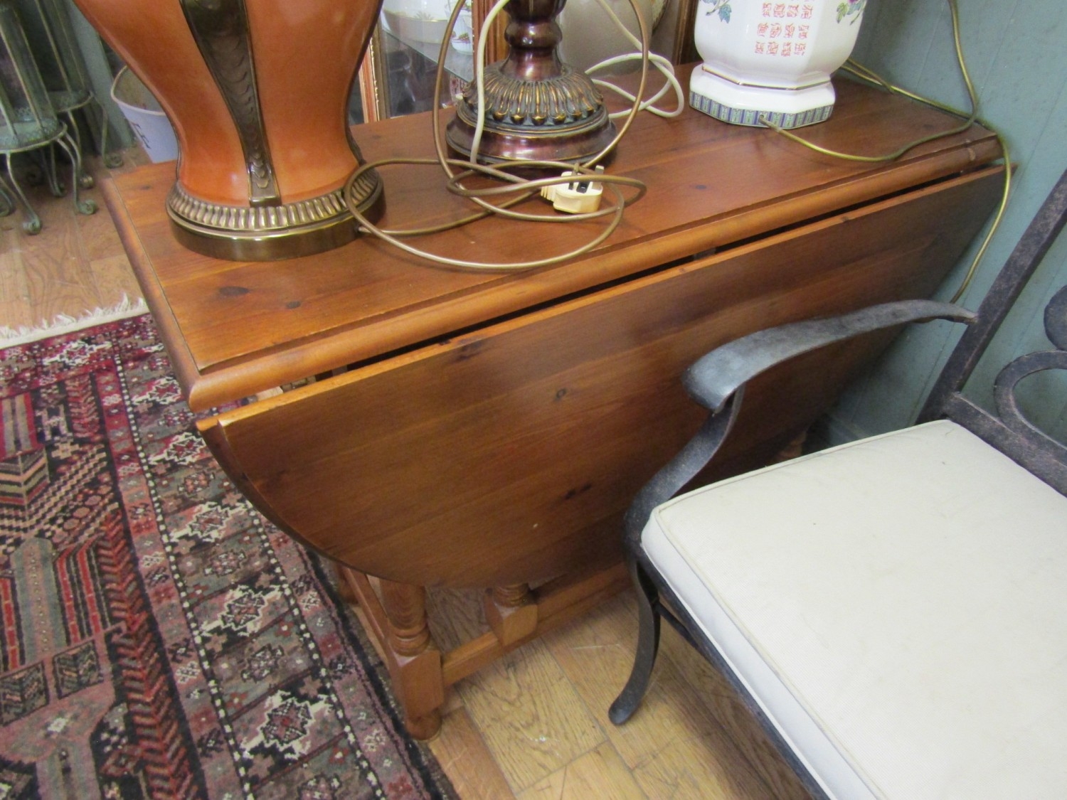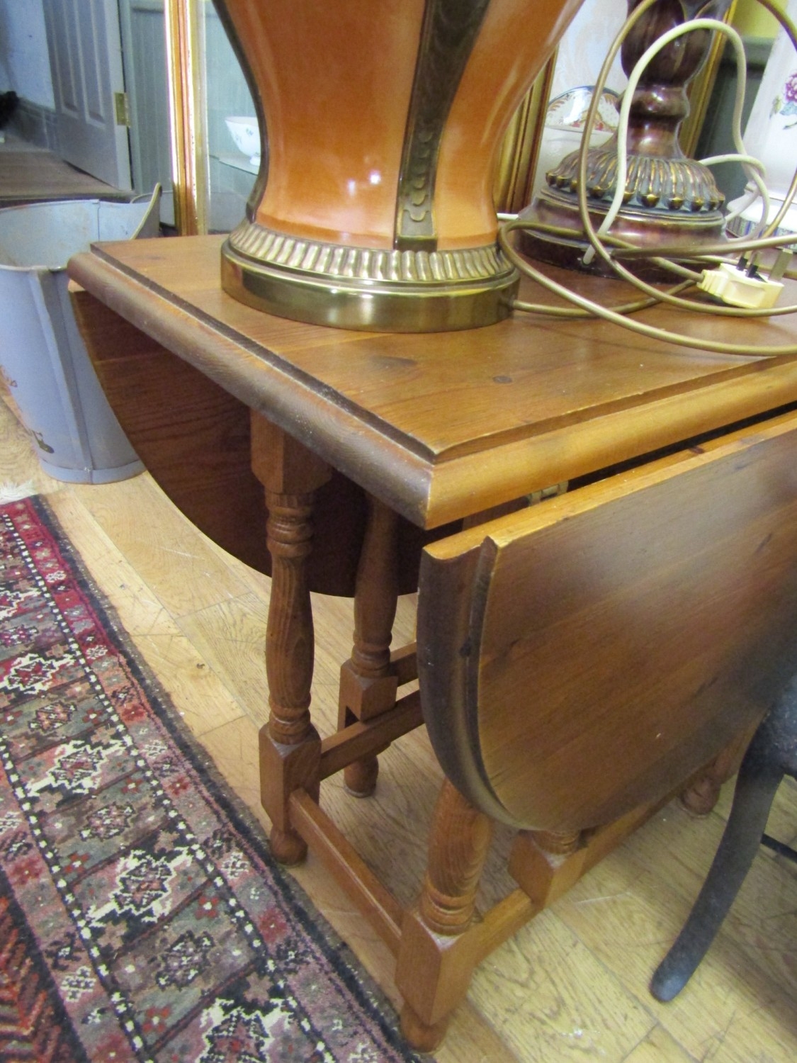 Oak Drop Leaf Table Turned Supports Approximately 32 Inches Wide