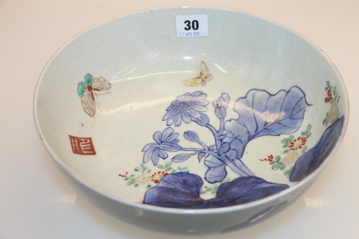 Oriental bowl decorated with butterflies and flowers, 25cm.