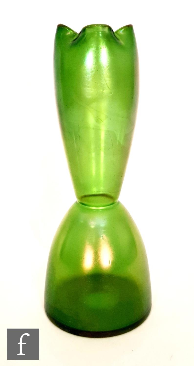 Josef Hoffman - Loetz - An early 20th Century glass vase, circa 1910, of waisted form with quatrefoil rim, all in a green iridescence, height 27cm.