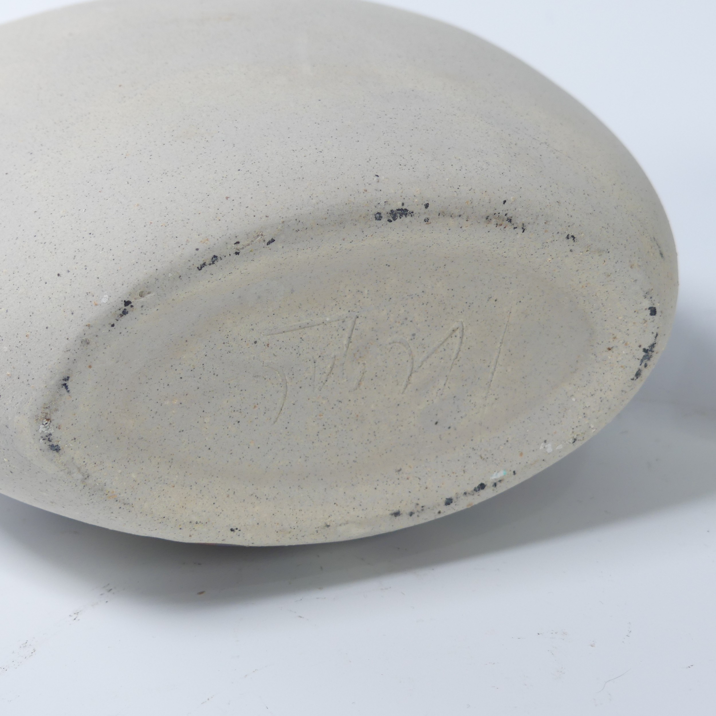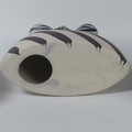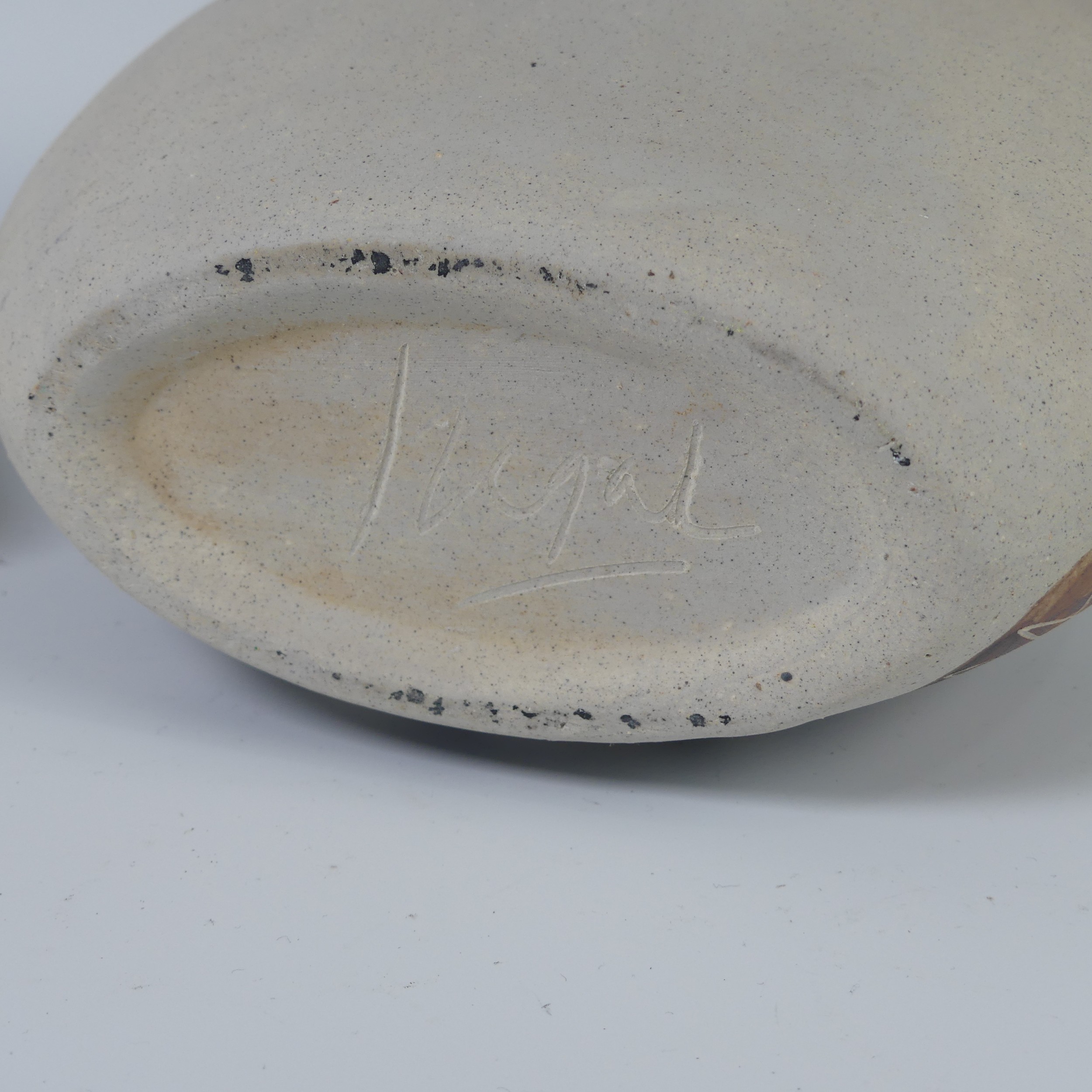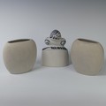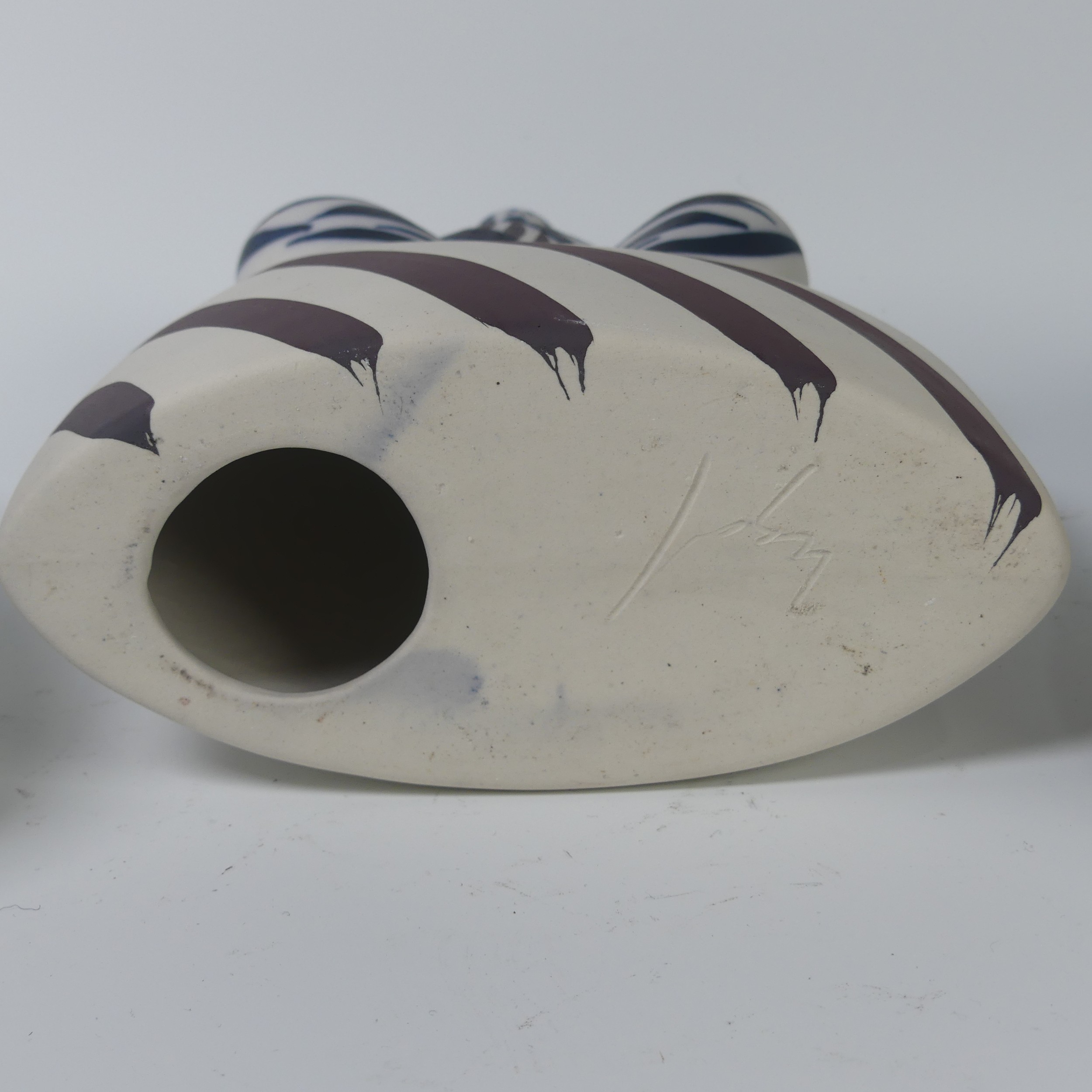 A pair of Otero Regal ceramic Vases, mid-20th century, with 'Picassoesque' decoration, signed on base, 20cm high, together with a figurine of a lady by the same hand, 23cm high (3)