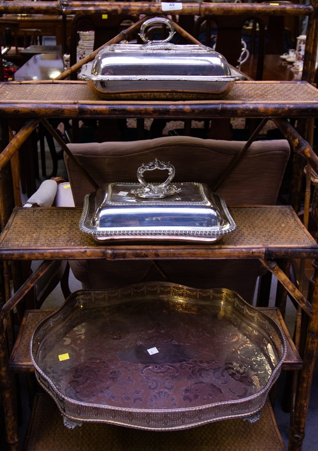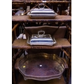 SILVER PLATED GALLERY TRAY . 53 X 38 CM + 2 SILVER PLATED ENTREE DISHES