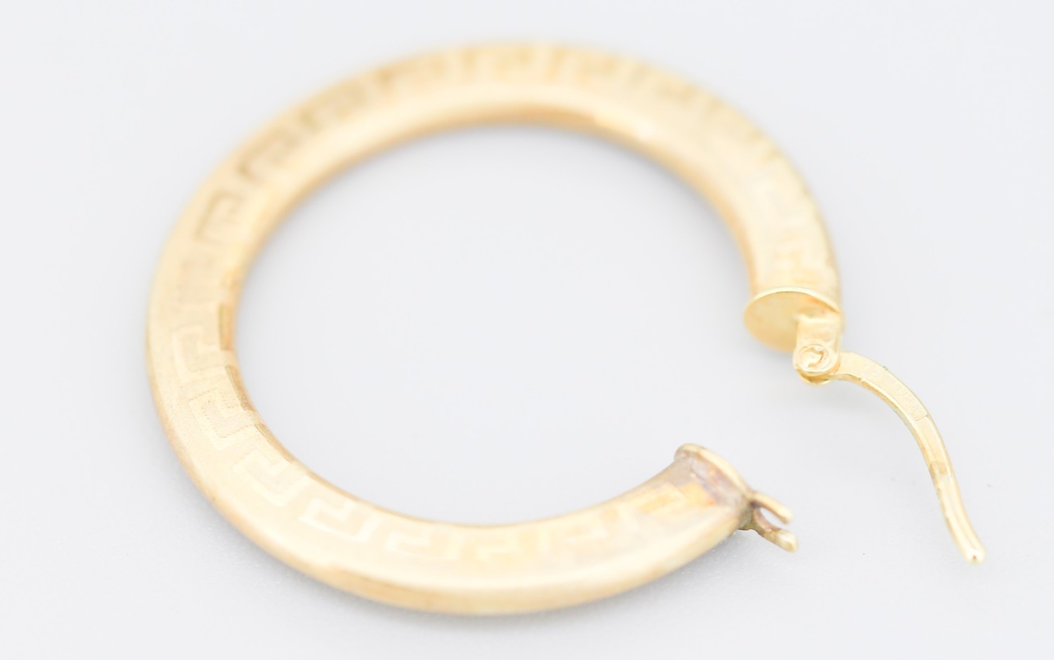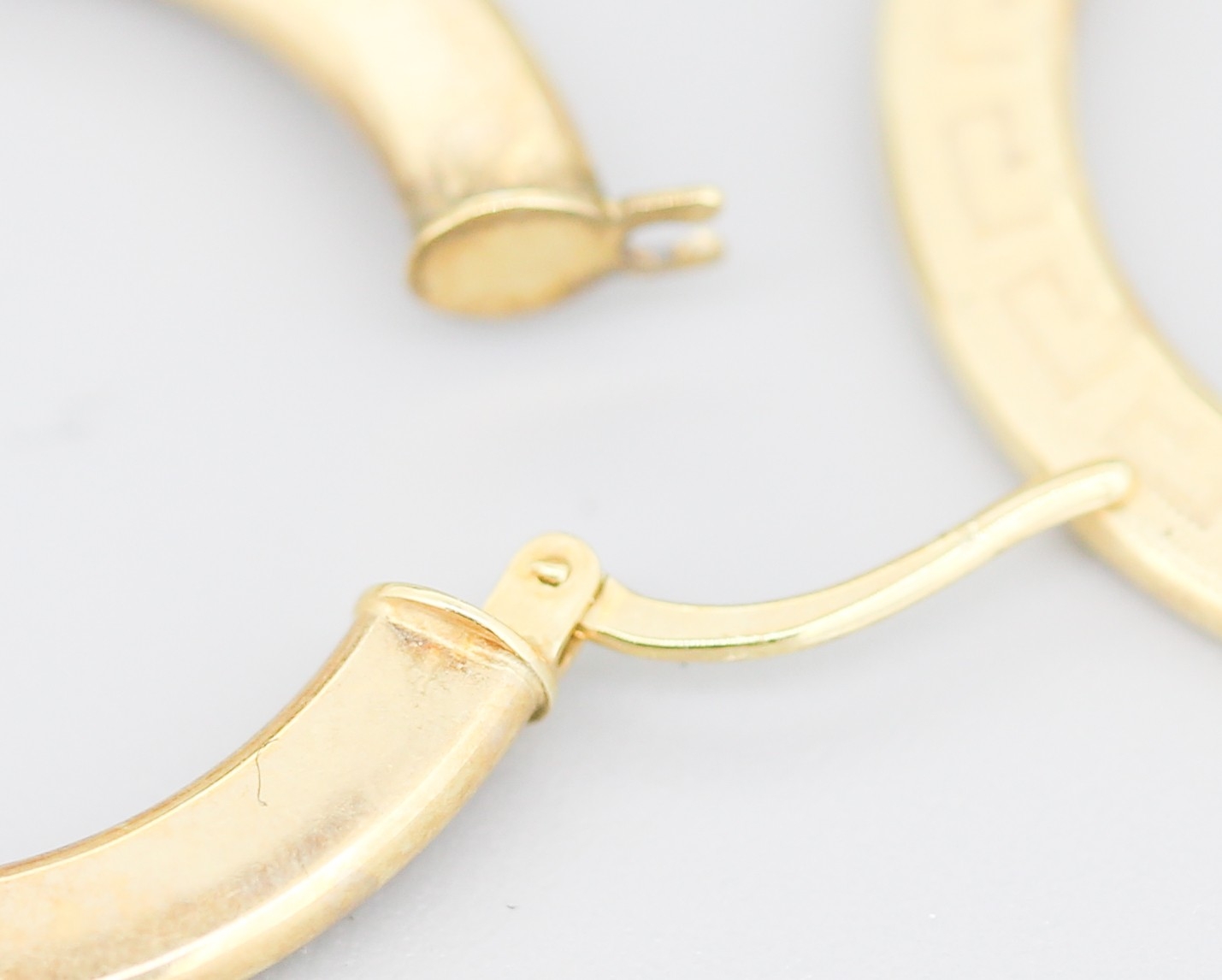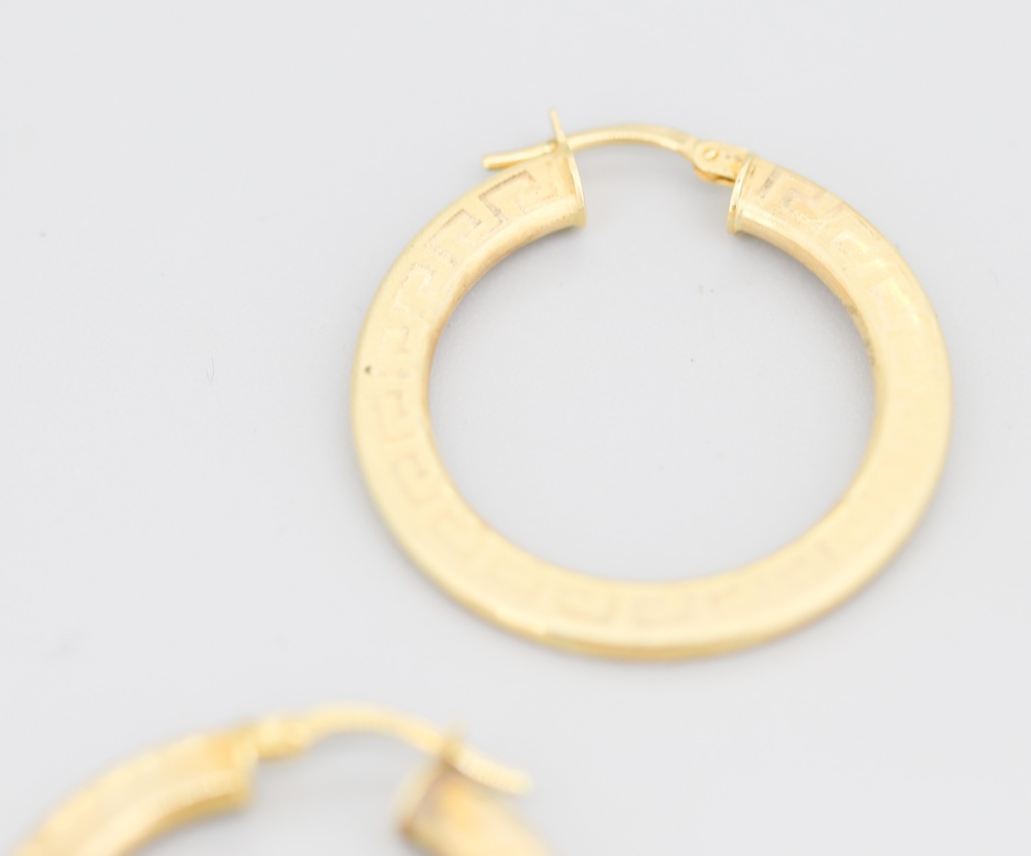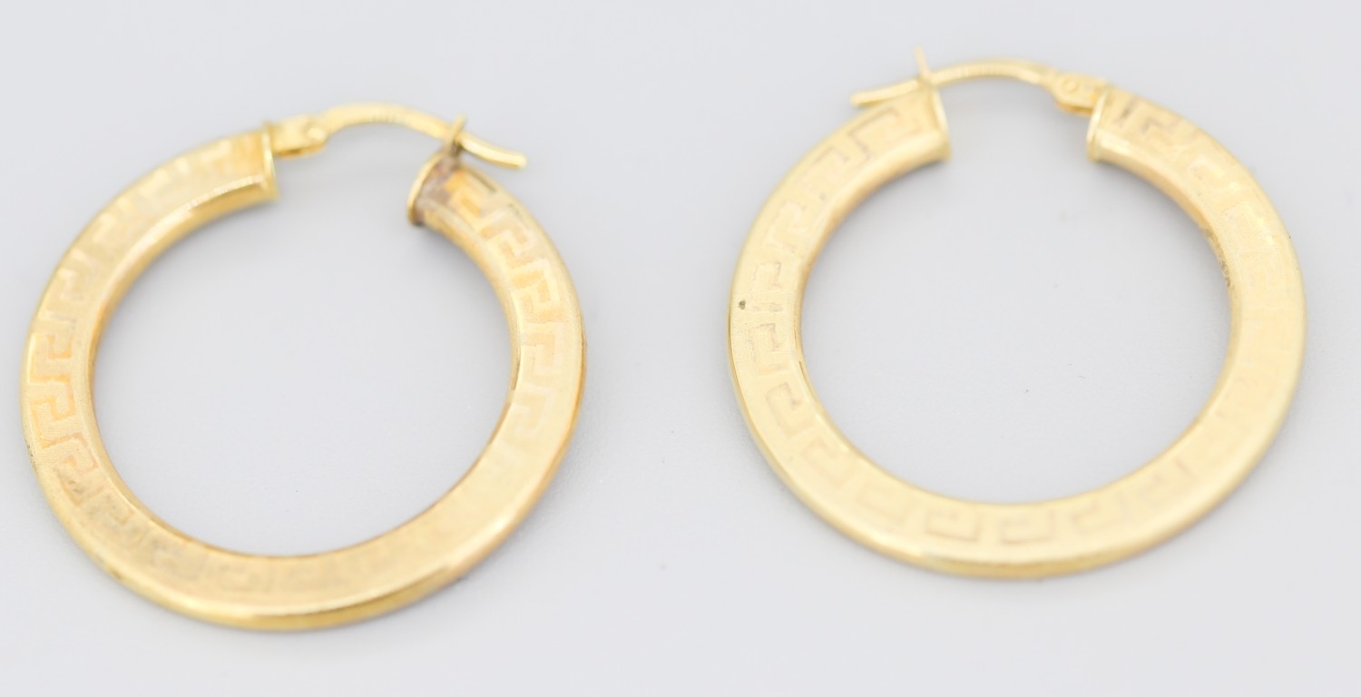 Pair of 9 Carat Yellow Gold Greek Key Motif Hoop Earrings 3cm