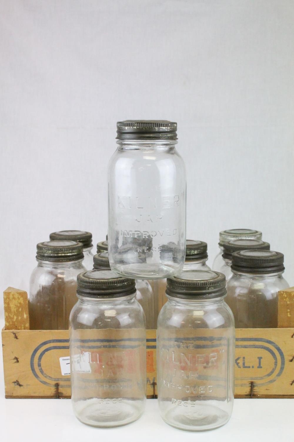 Twelve Mid 20th century Kilner Jars with screw-on lids, 18cms high
