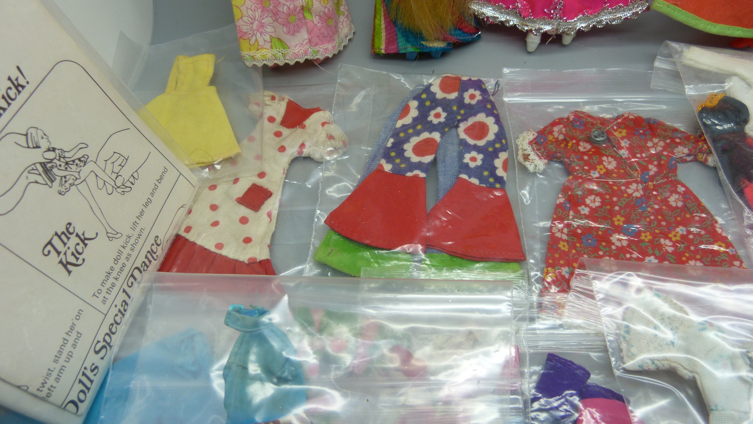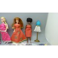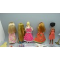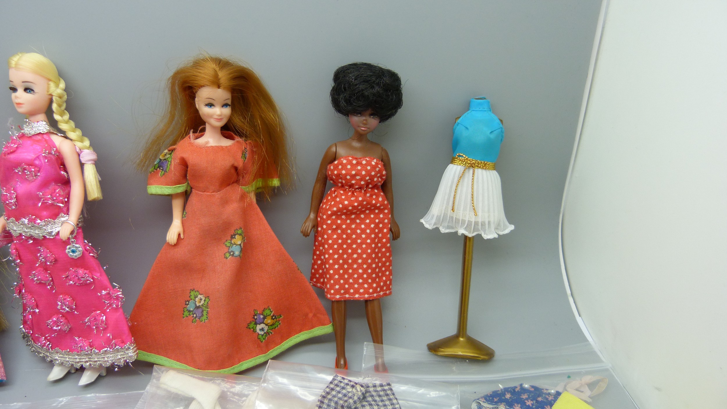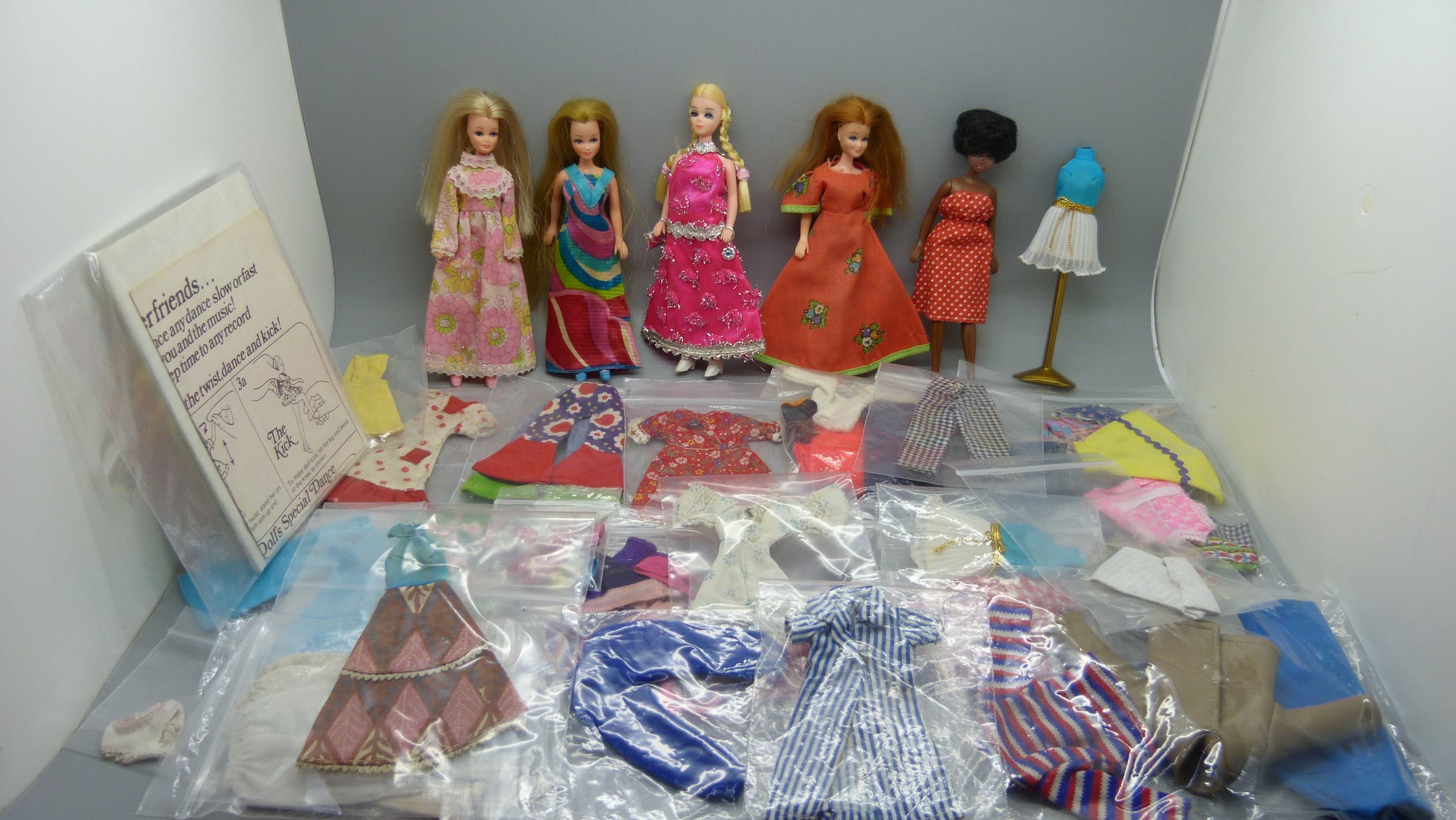 Pippa Dolls:- Princess Pippa with ankle length hair, Britt, Mandy, Tammie and Dinah (Dawn model) with selection of Pippa clothes, shoes and accessories