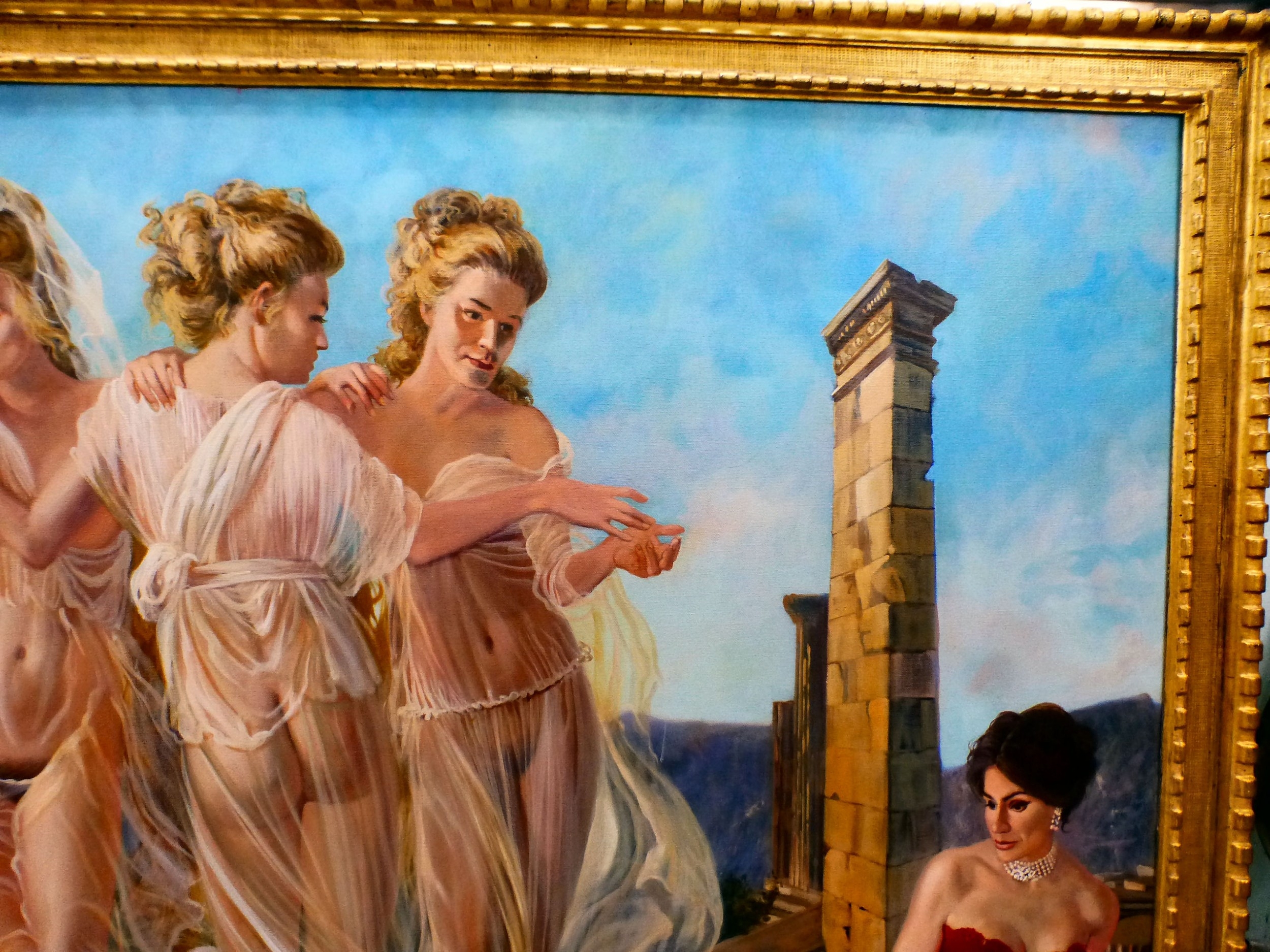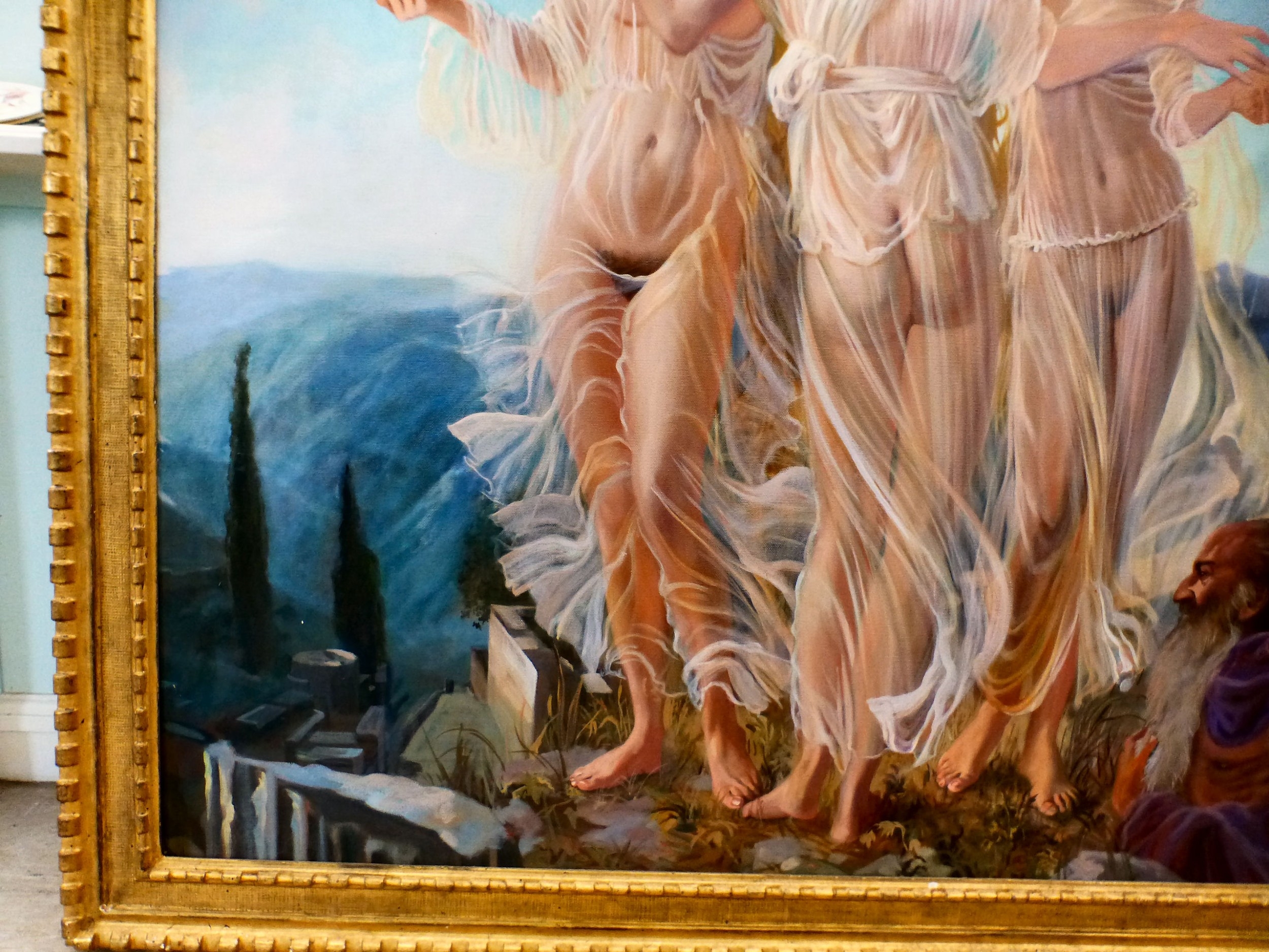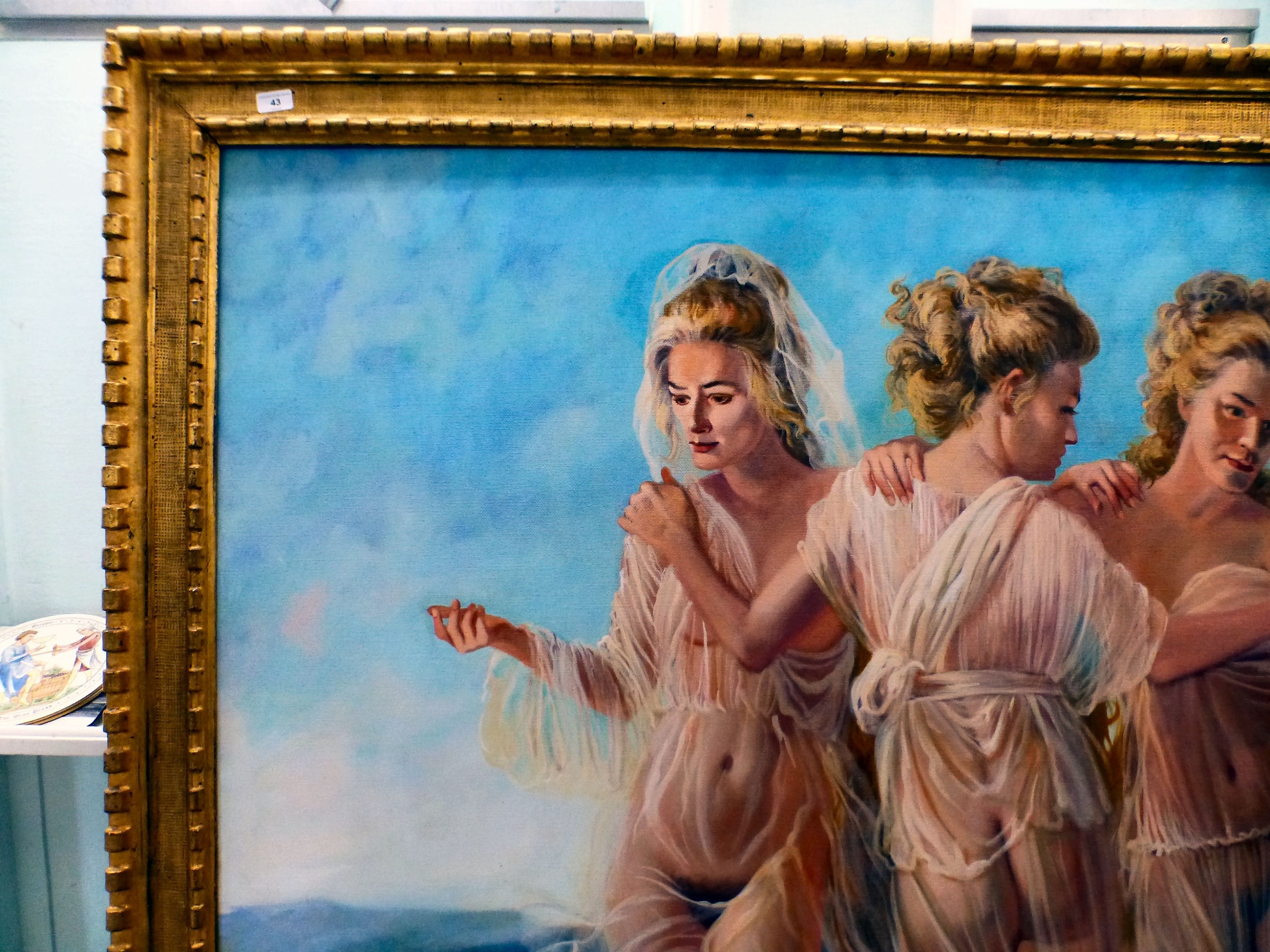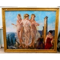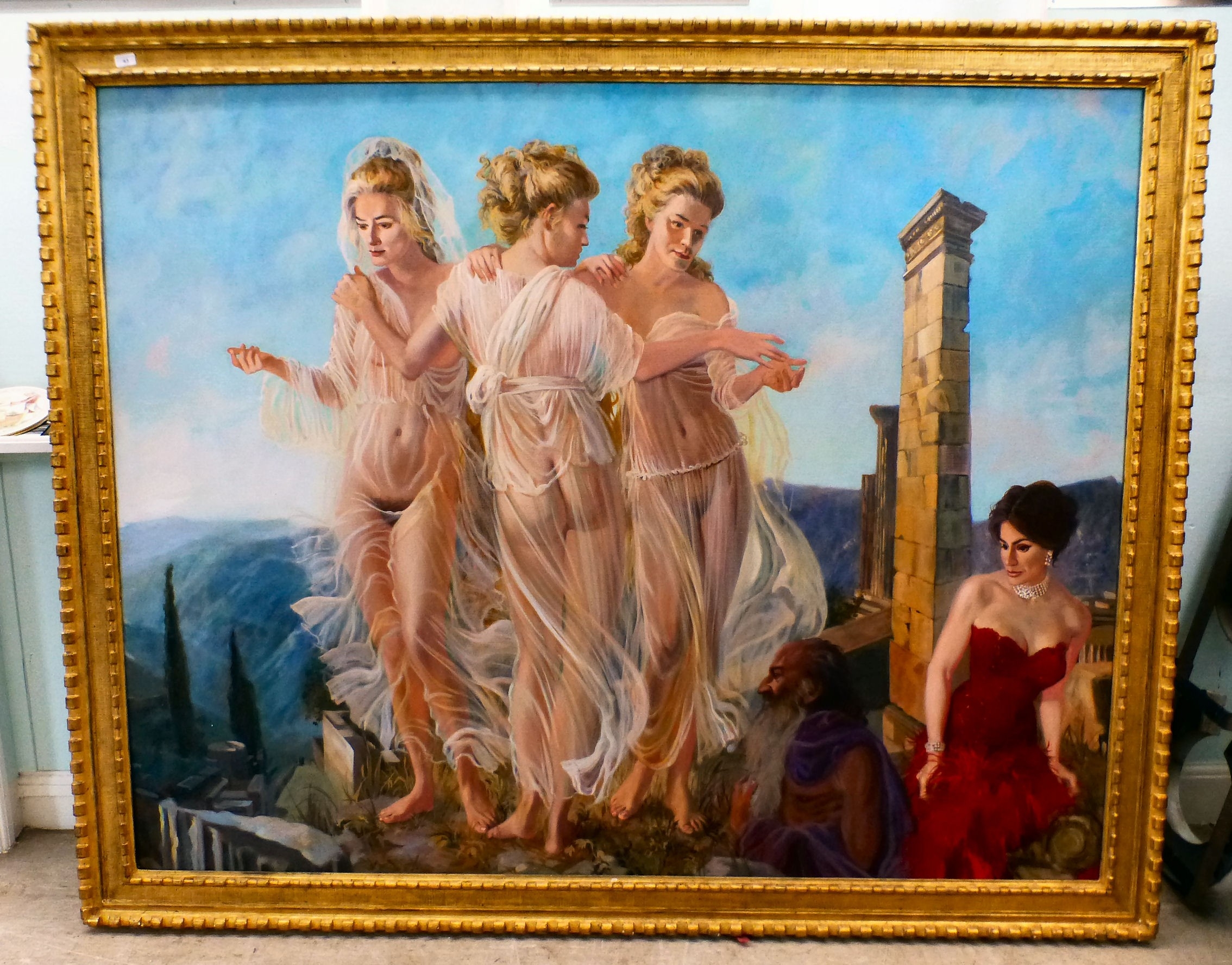 Andre Durand - a creative version of the Three Graces, in an ancient Roman landscape oil on canvas bears a signature & dated 1995 with some ephemera verso 62" x 78" framed
