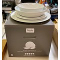 BOXED SET OF 13 DENBY WHITE DINERWARE SET 4 DINNER PLATES, 4 SIDE PLATES, 4 PASTA BOWLS, 1 CEREAL BOWL