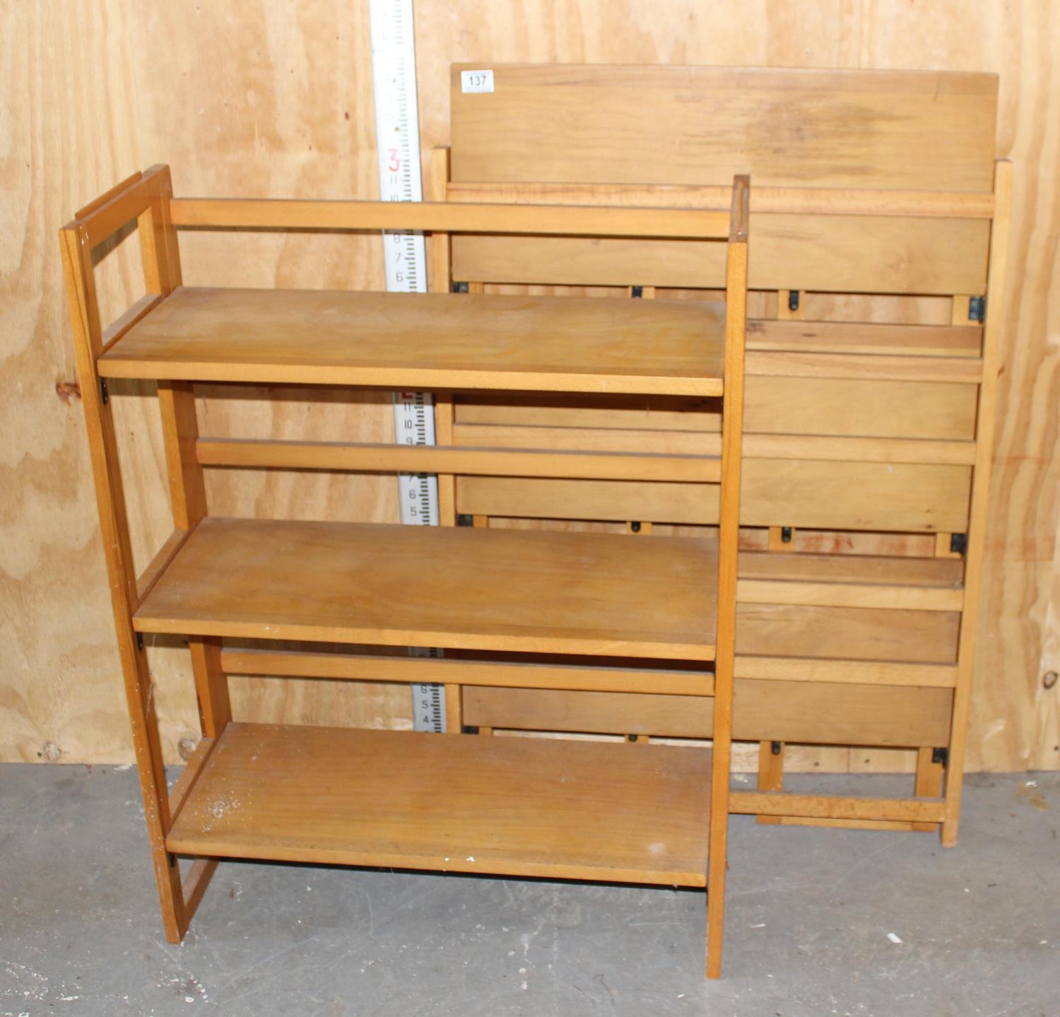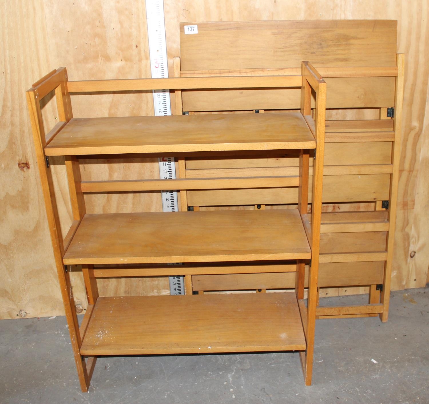 A pair of folding lightwood shelves, ideal for antiques fairs
