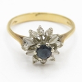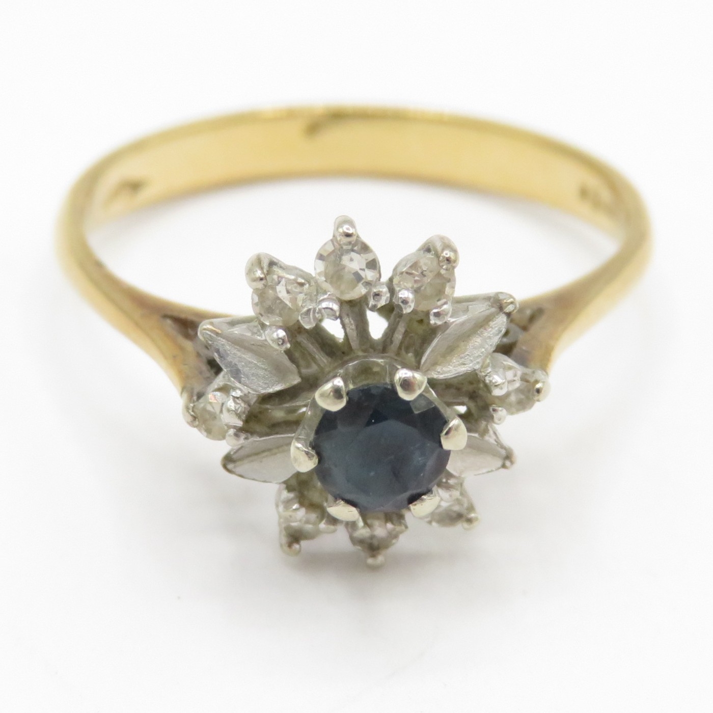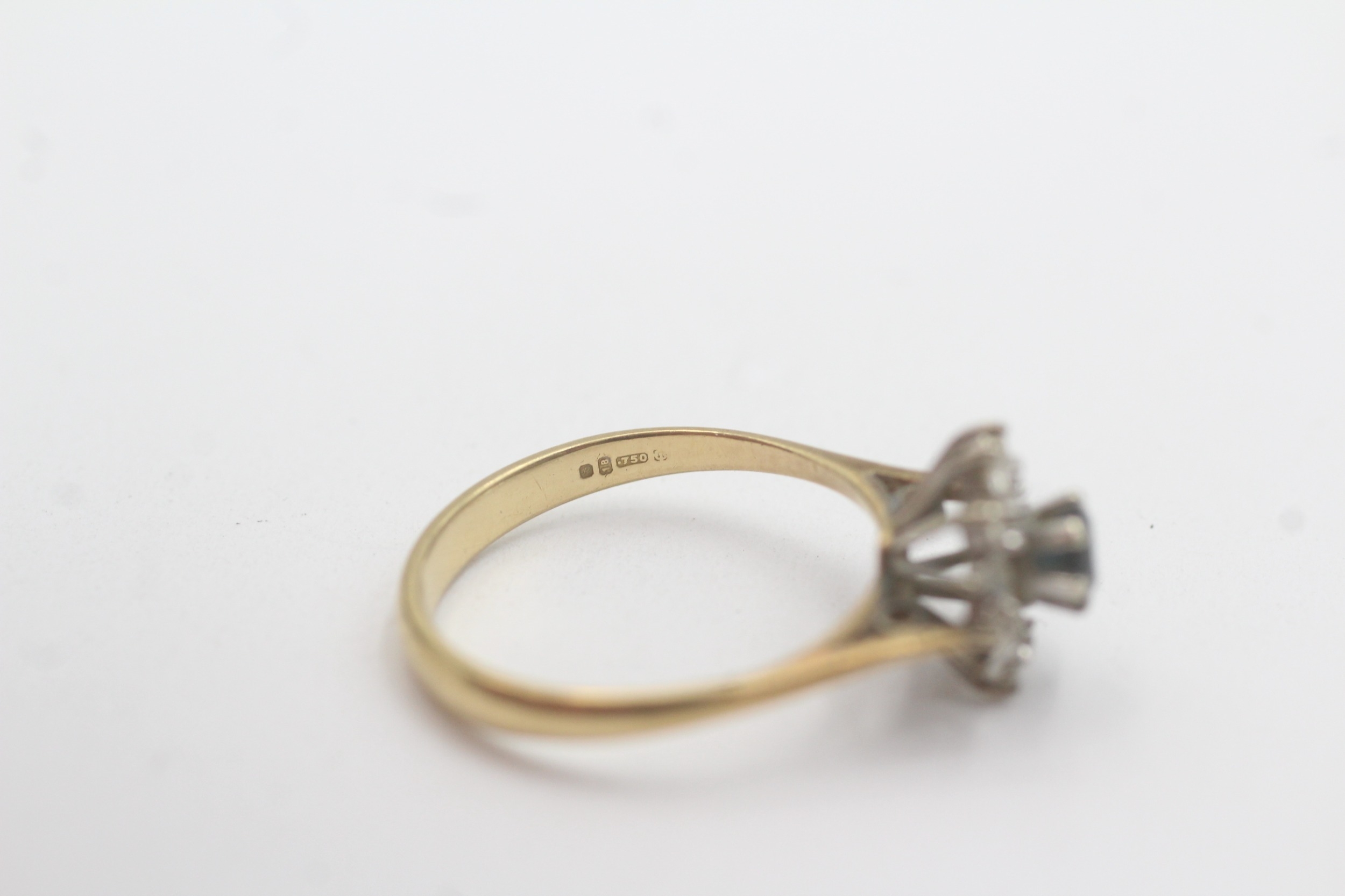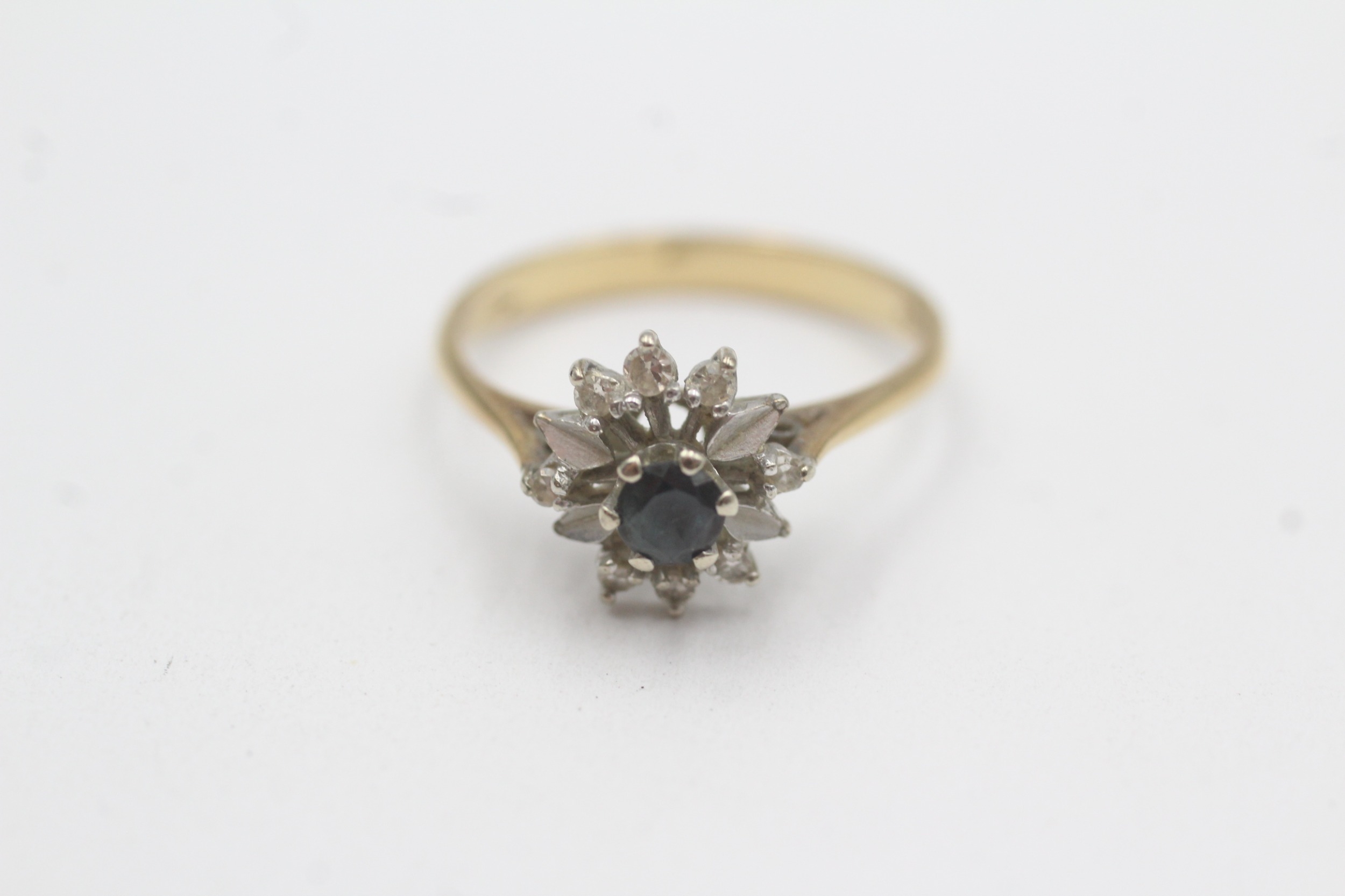 18ct gold diamond sapphire cluster ring (2.8g) Size N