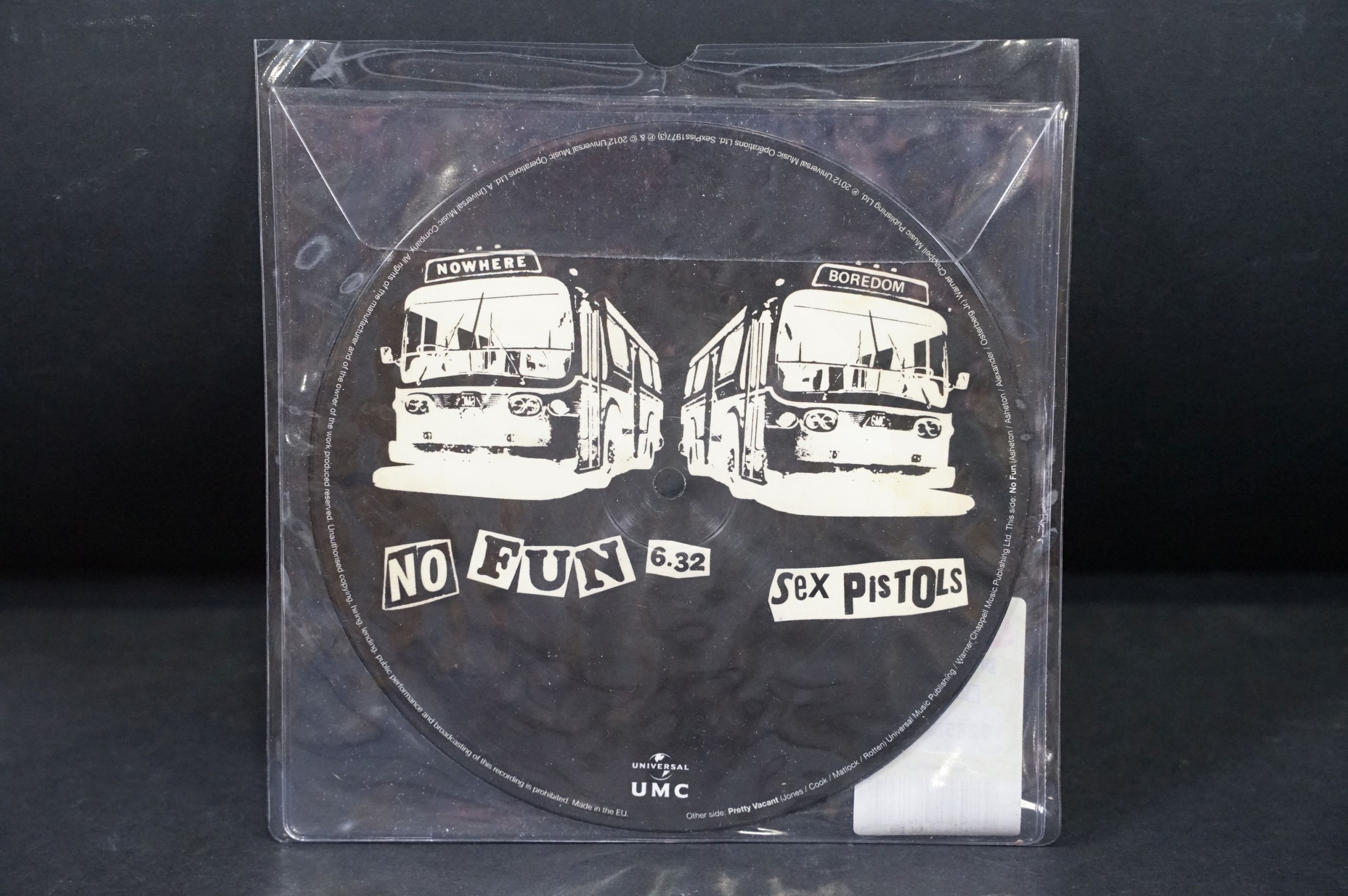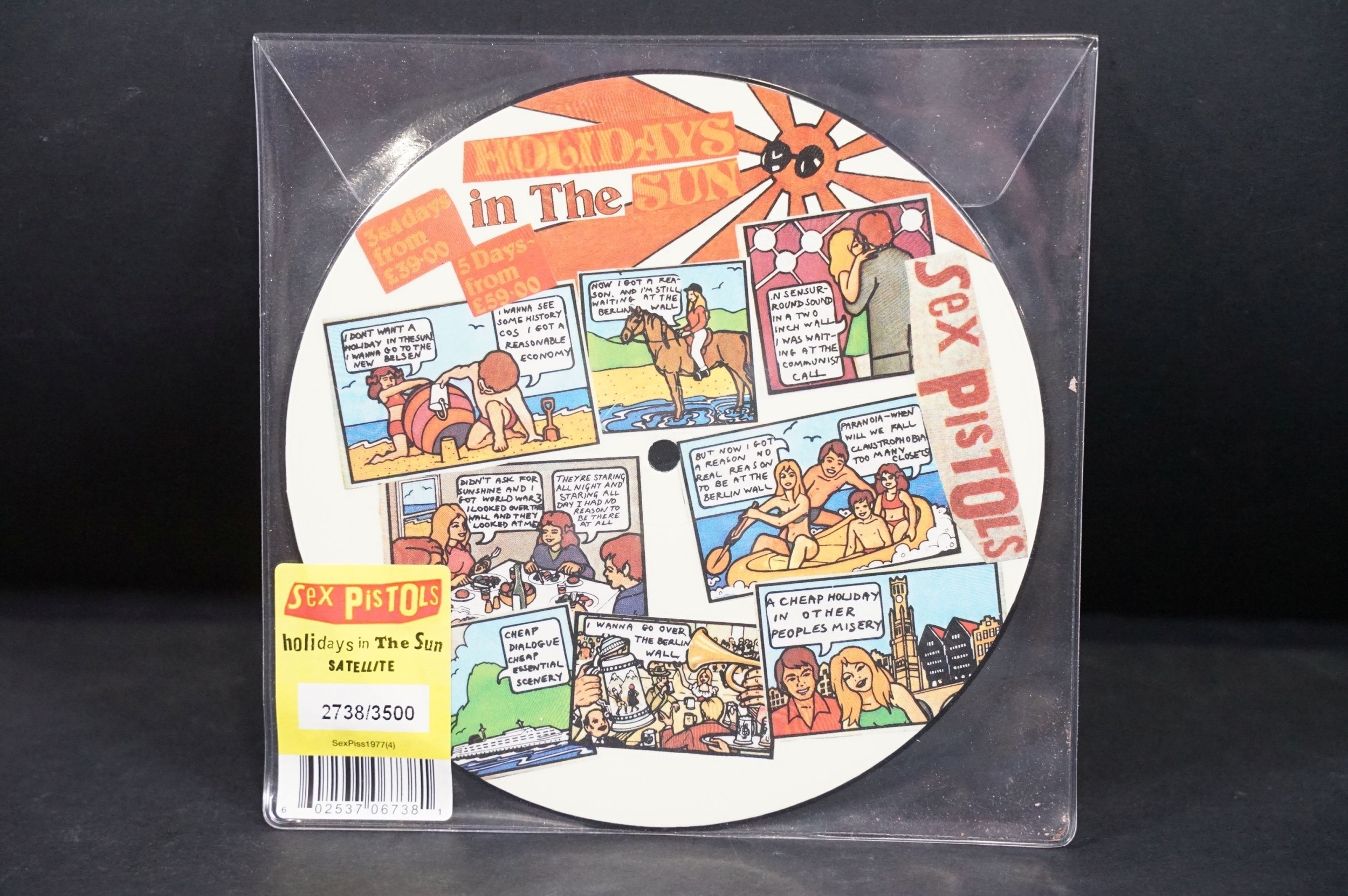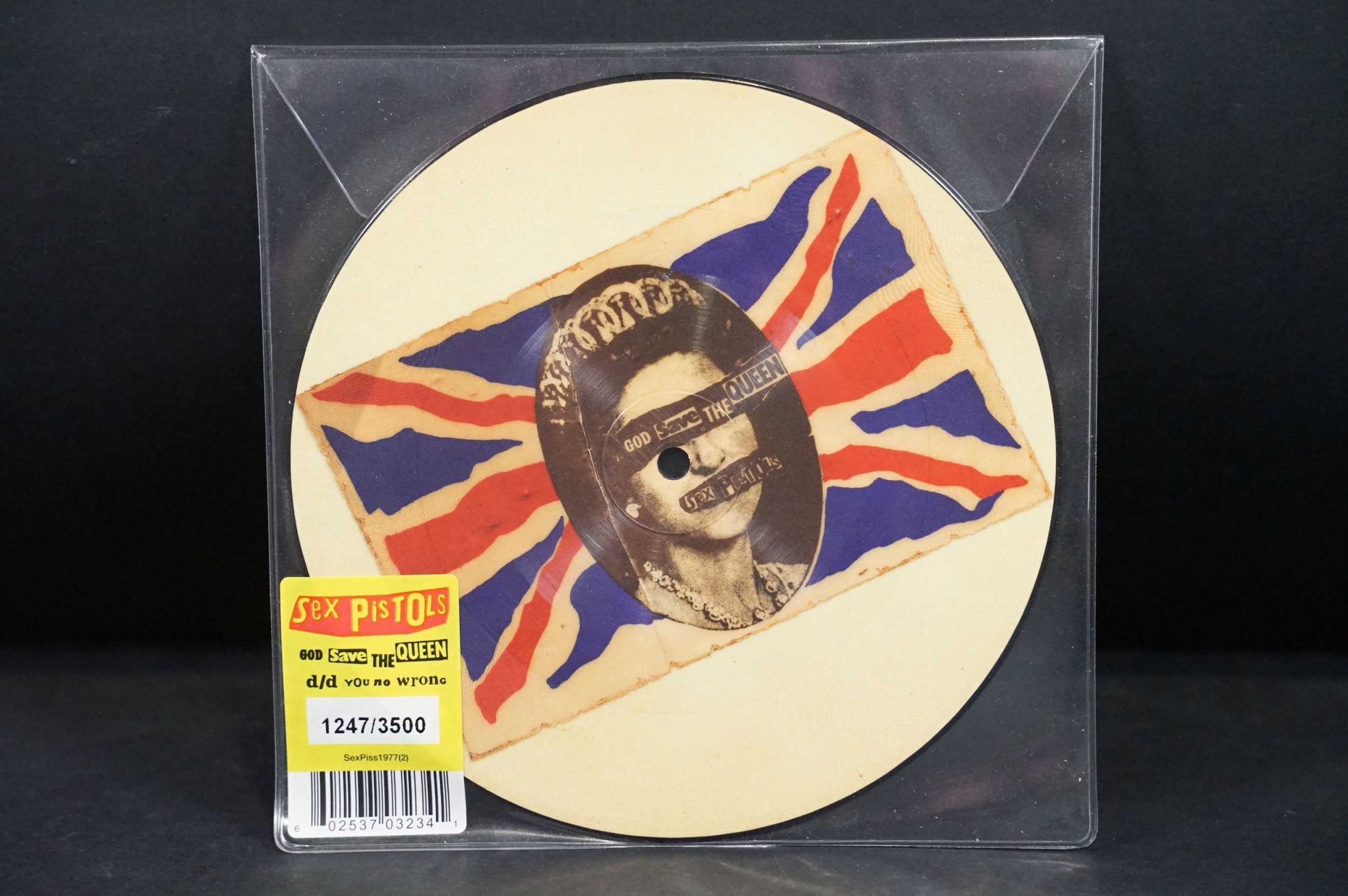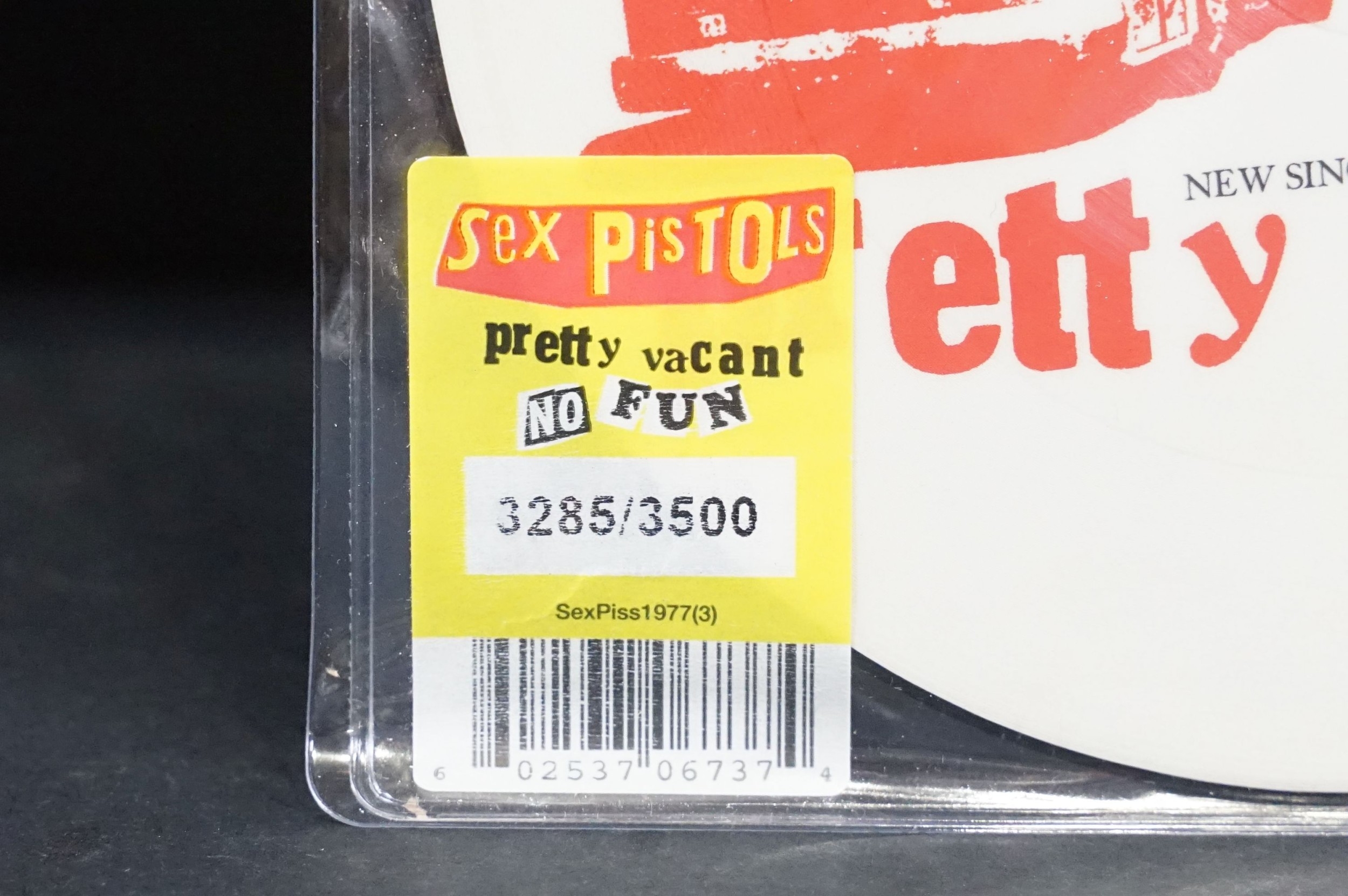 Vinyl - Punk - Sex Pistols, 4 official UK 2012 limited edition numbered re-issue picture disc 7” singles to include: Pretty Vacant (3285/3500), Holidays In The Sun (2738/3500), God Save `The Queen (1247/3500), Anarchy In The U.K. (2015/3500), all in original stickered plastic sleeves. EX+