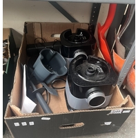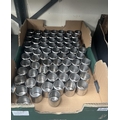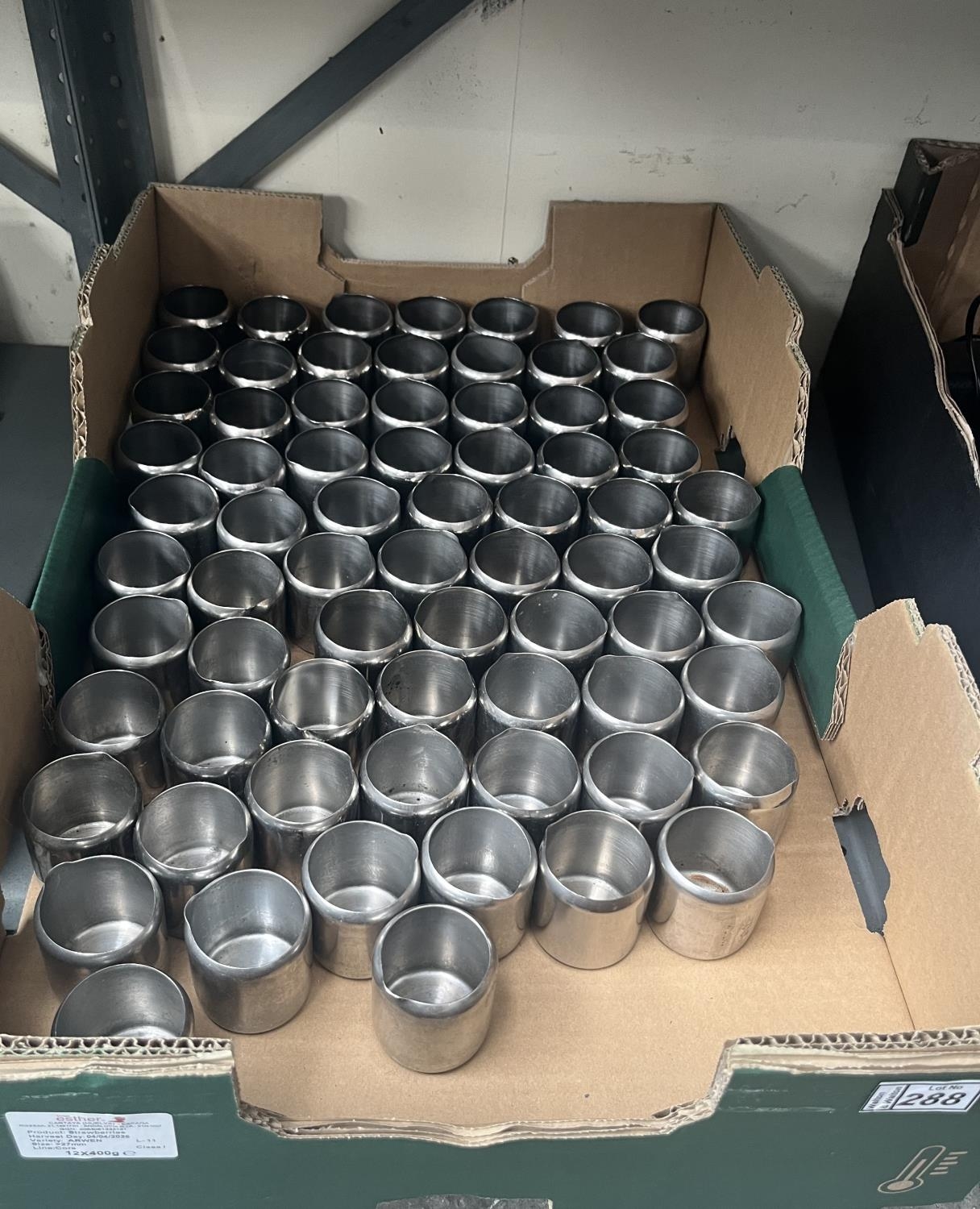 Box containing a large quantity of stainless steel milk jugs