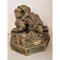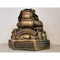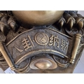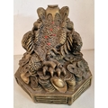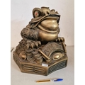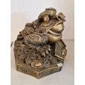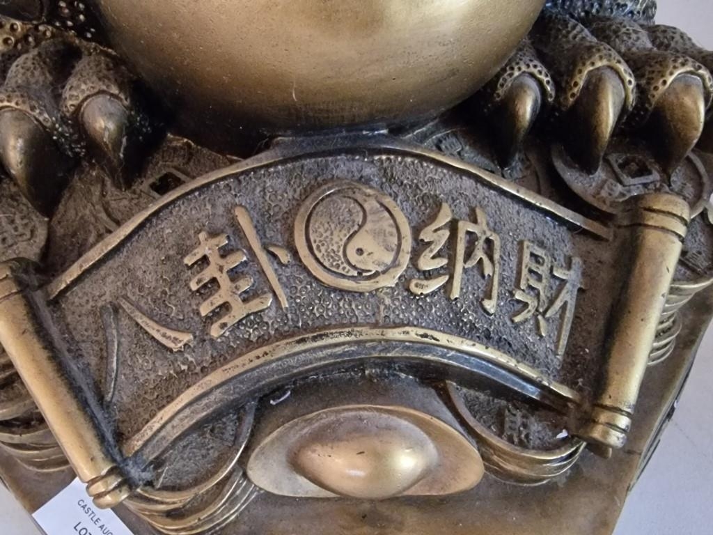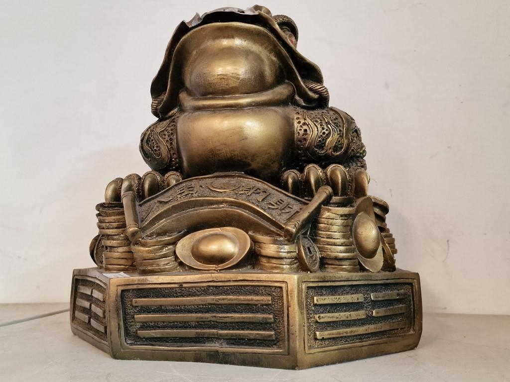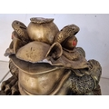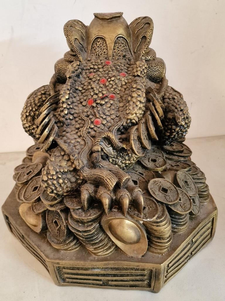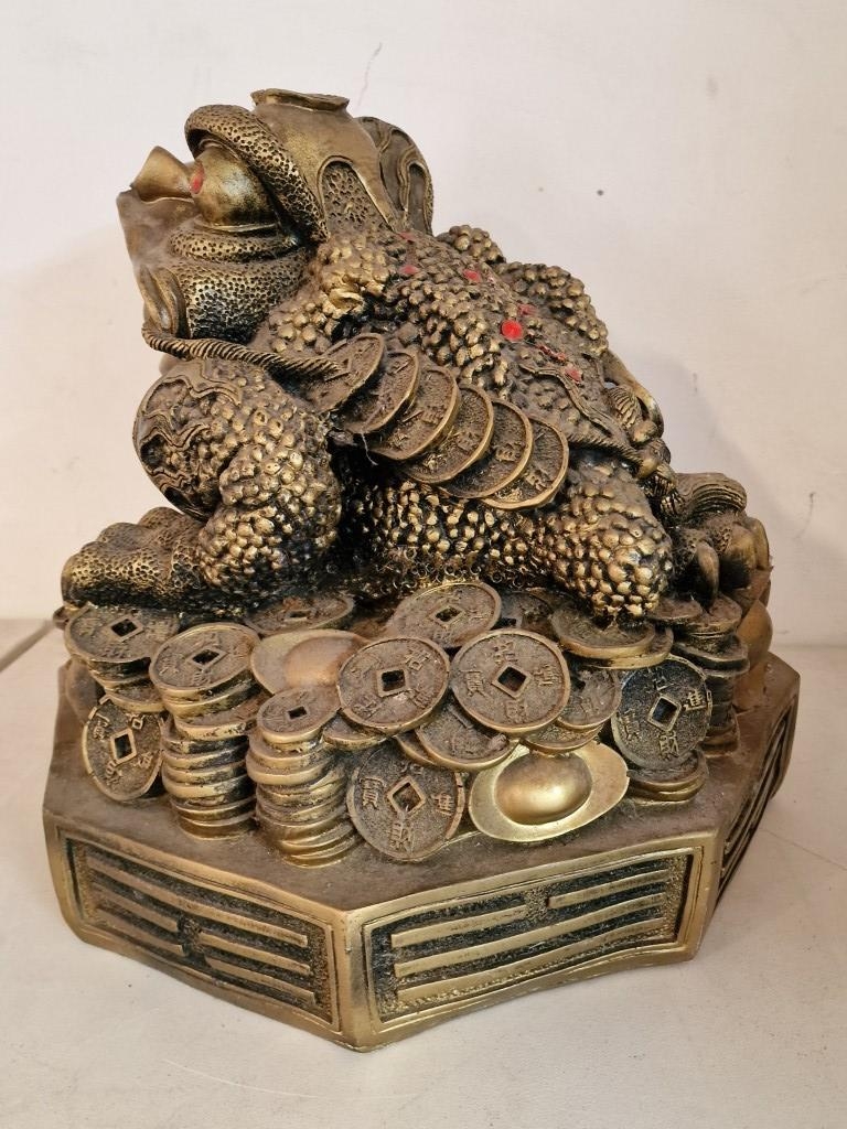 Large Chinese Feng Shui Lucky Money Frog Statue, 'For Good Luck & Riches'! Gold Colour Resin Ornament with Red Colour Eyes and Back Decoration, (Approx. H: 43cm, Base Ø: 47cm)