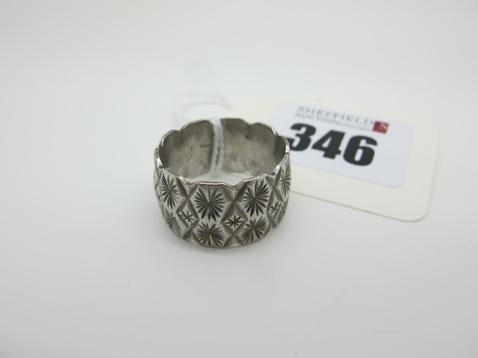 A 9ct White Gold Patterned Band, with wavy edge (finger size T) (8grams).