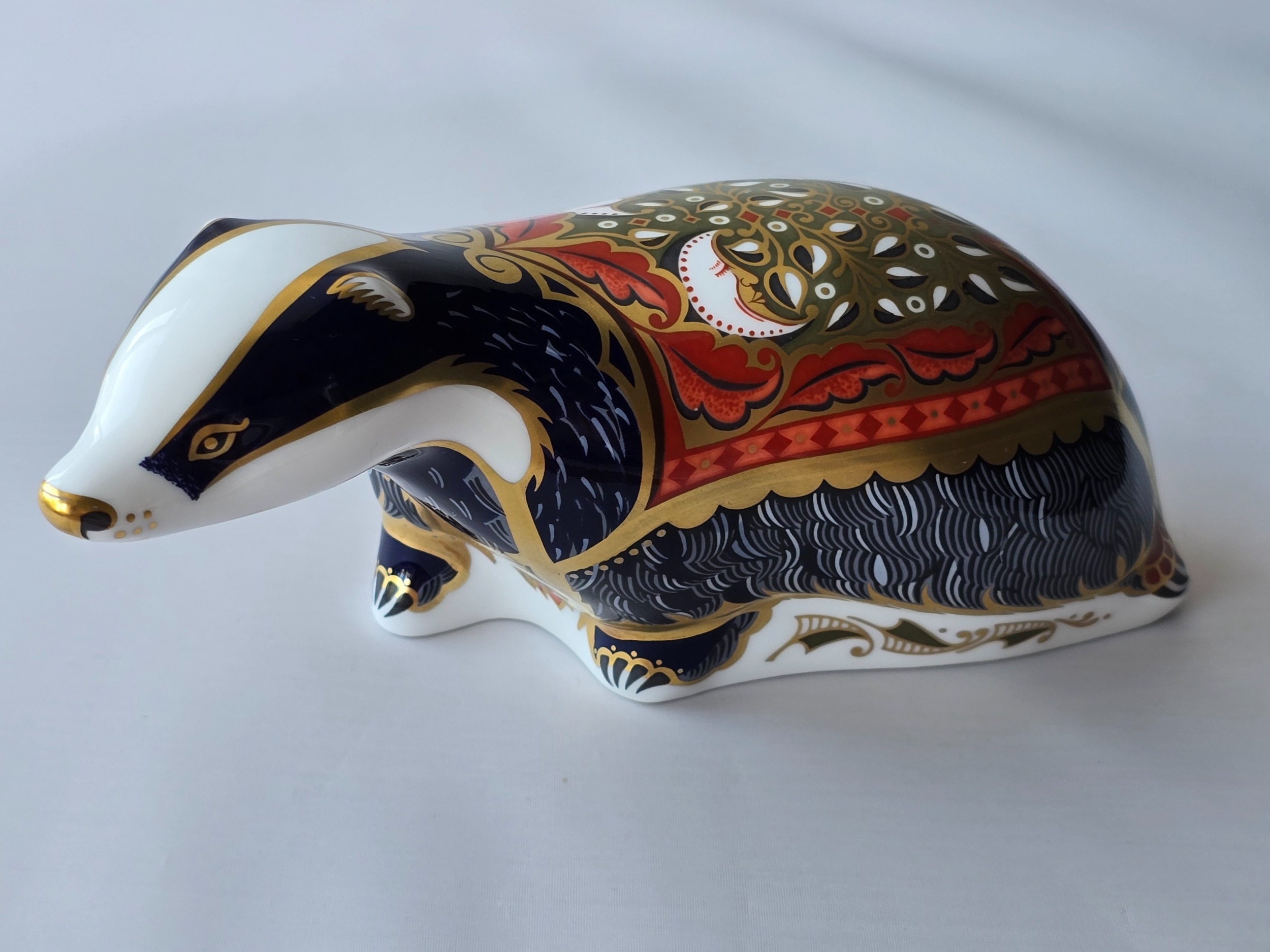 Royal Crown derby Moonlight Badger ceramic paperweight. Gold RCD stopper - First quality. Excellent condition. Boxed.
