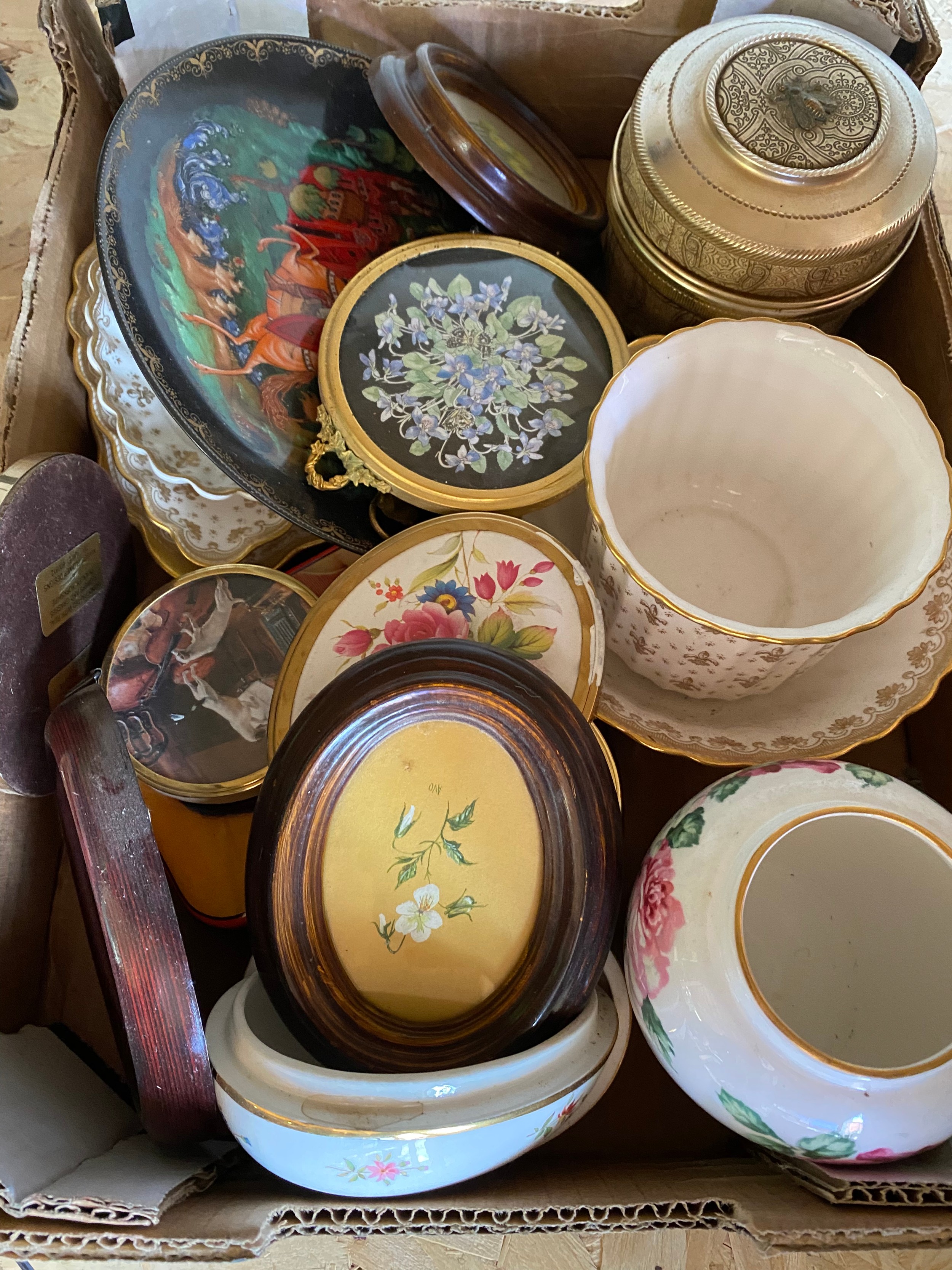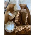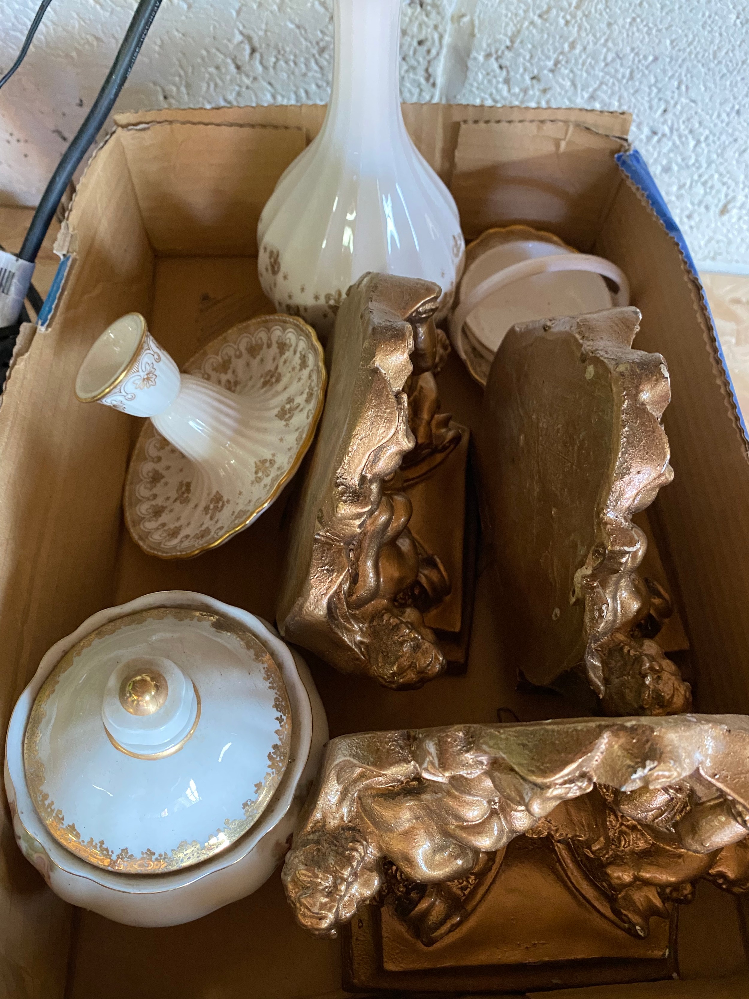 Collection of ceramics and gilt painted wall brackets (2 boxes)