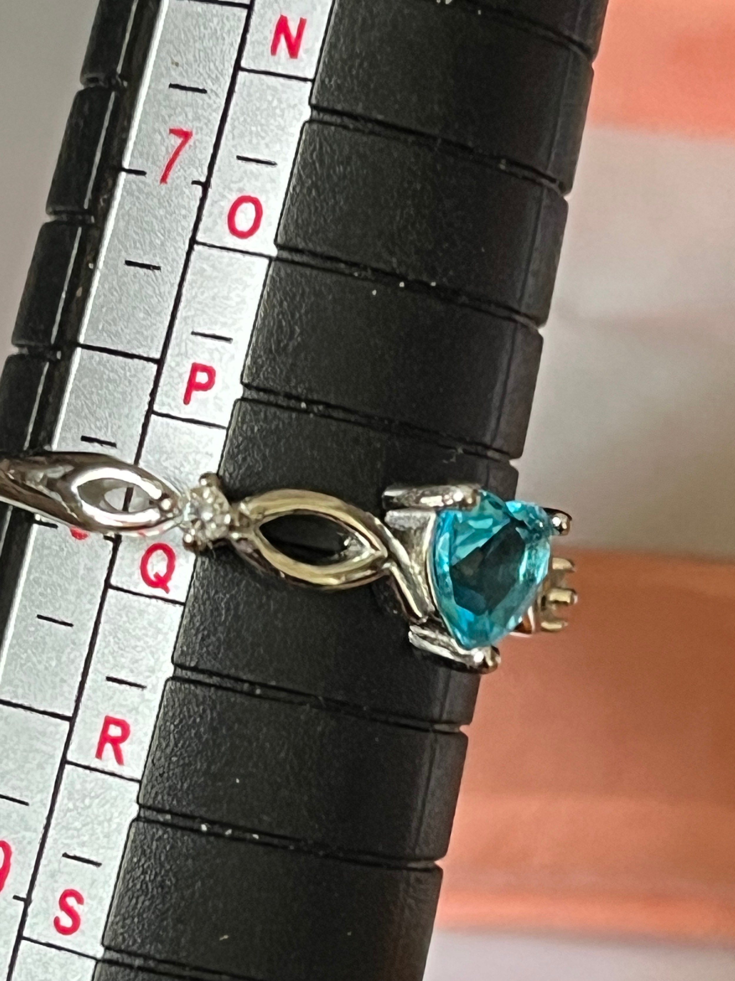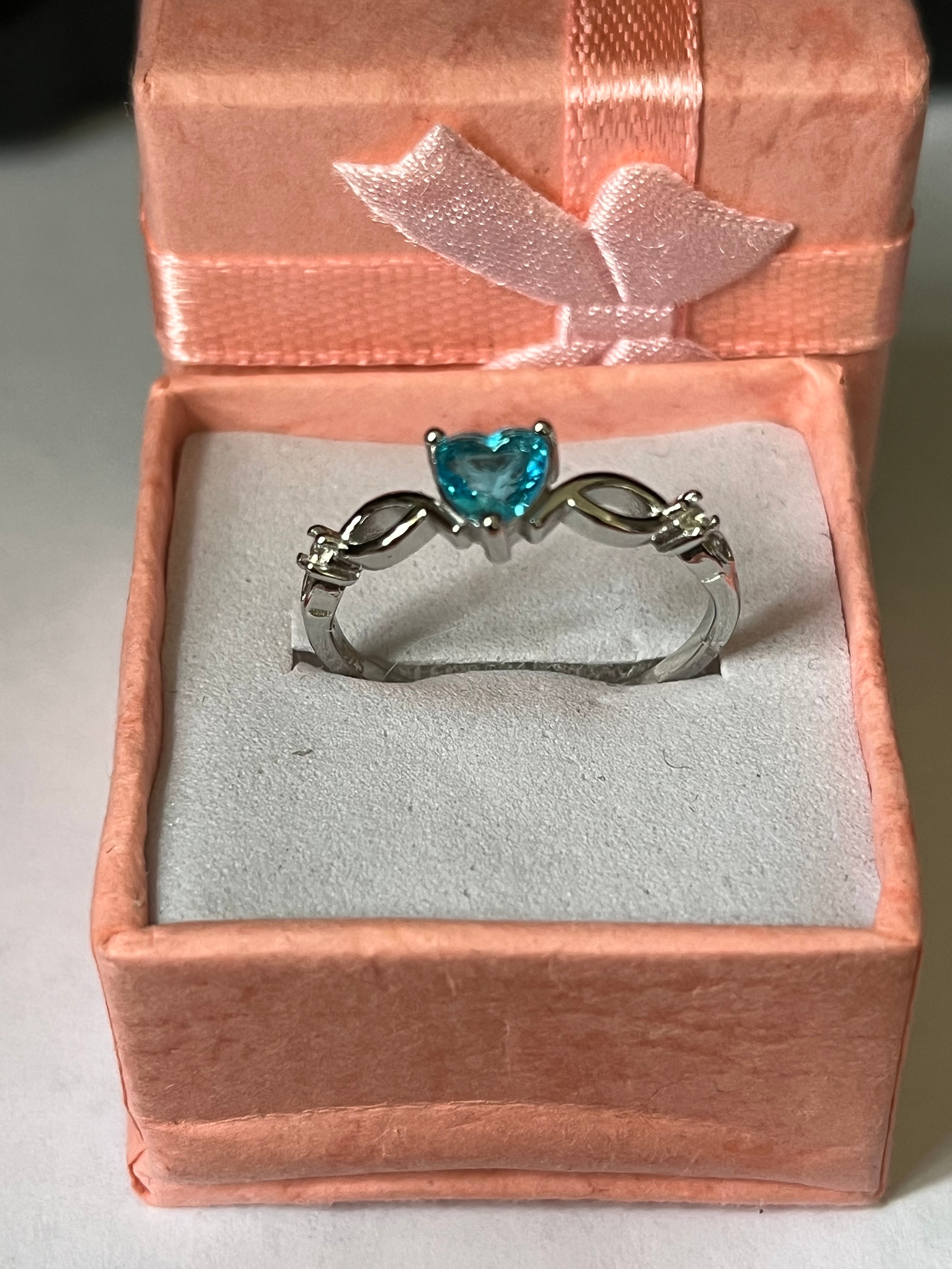 Pretty blue stone ring marked S925 size P.5 including presentation box