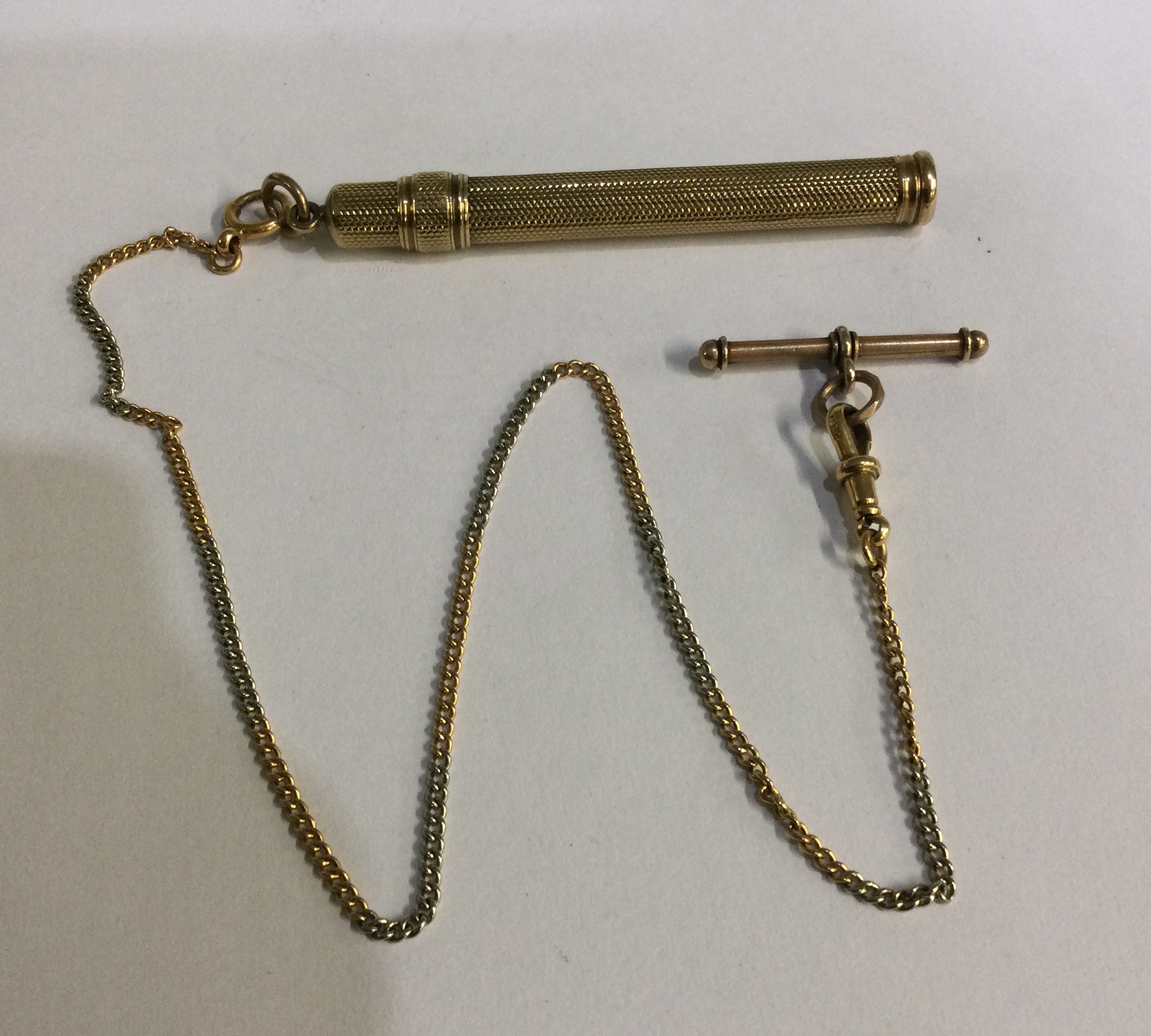 An attractive 18 carat gold two colour watch chain together with a 9 carat pencil. Approx. 19 grams gross. Est. £250 - £350.