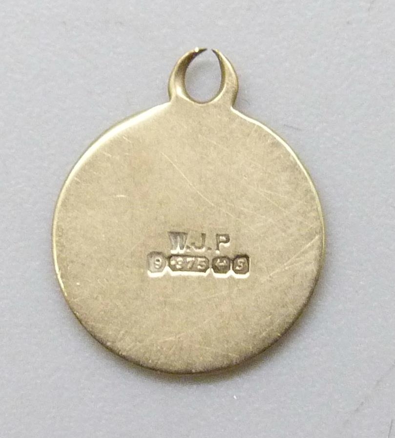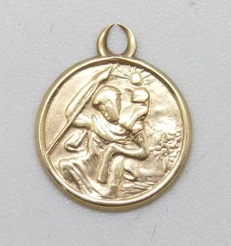A small 9ct gold St Christopher charm, loop split, 0.6g, 1cm