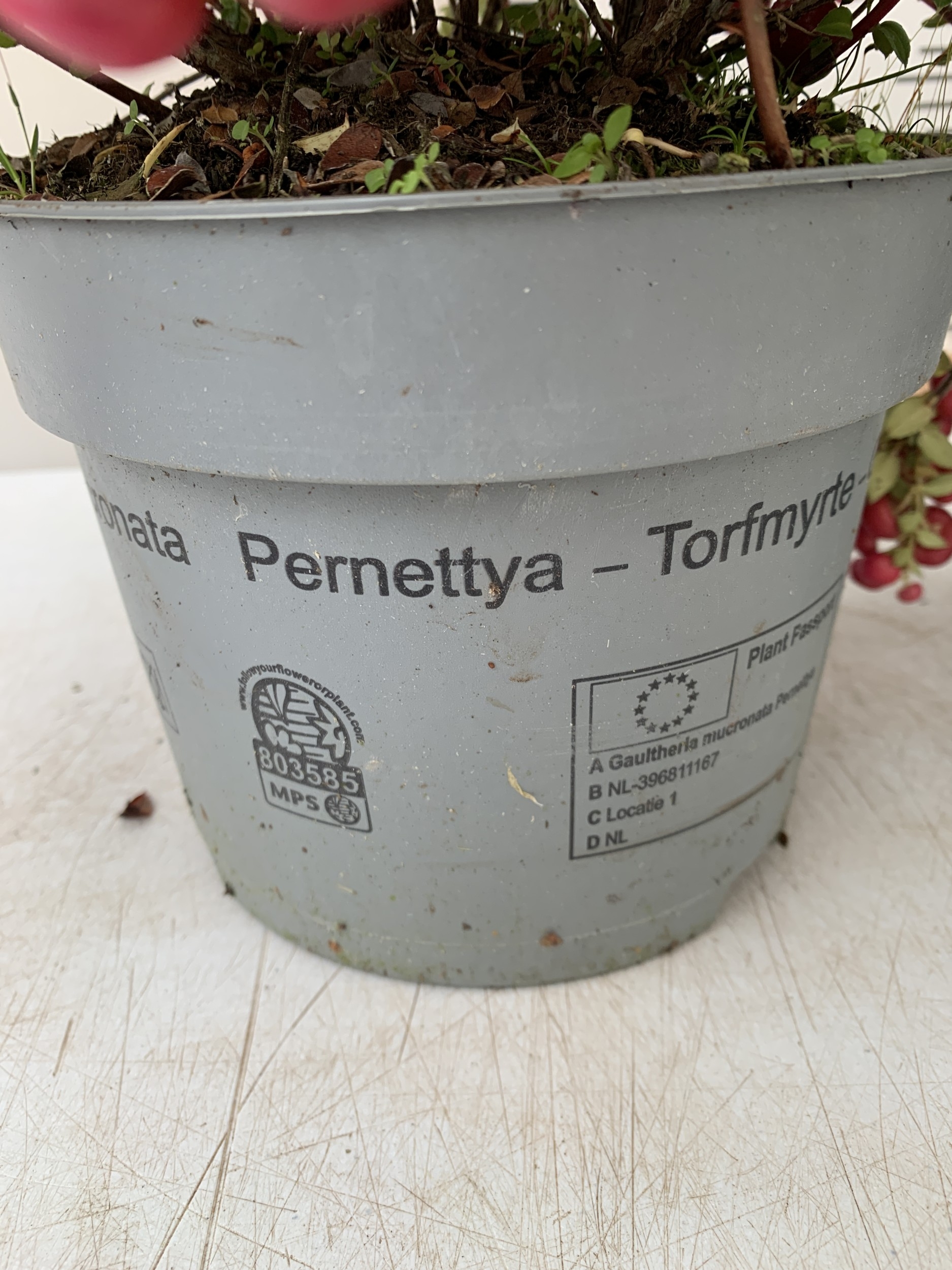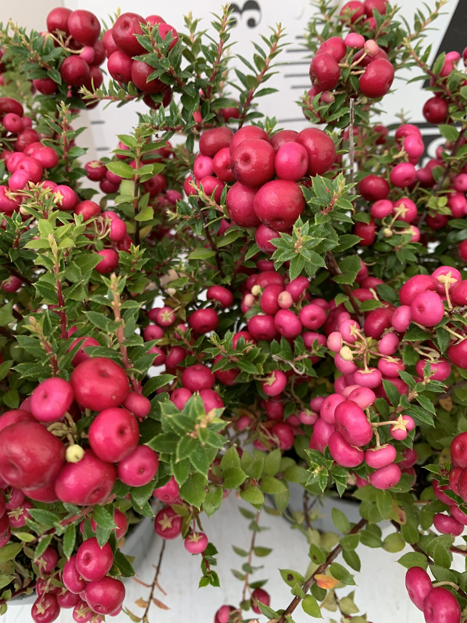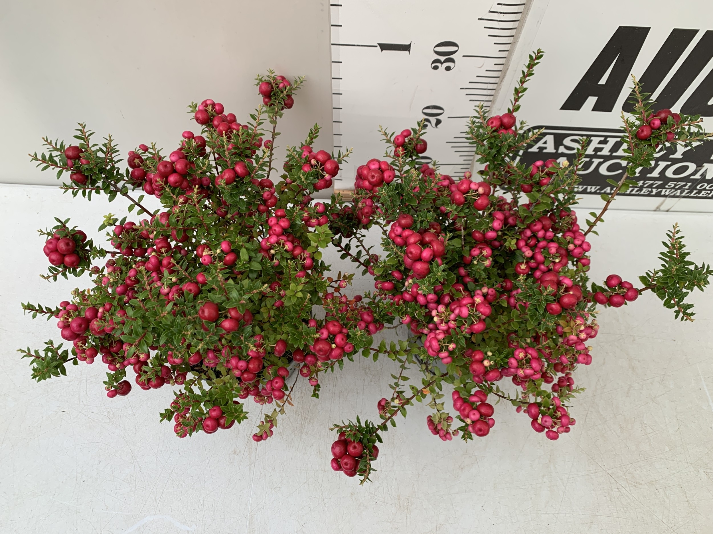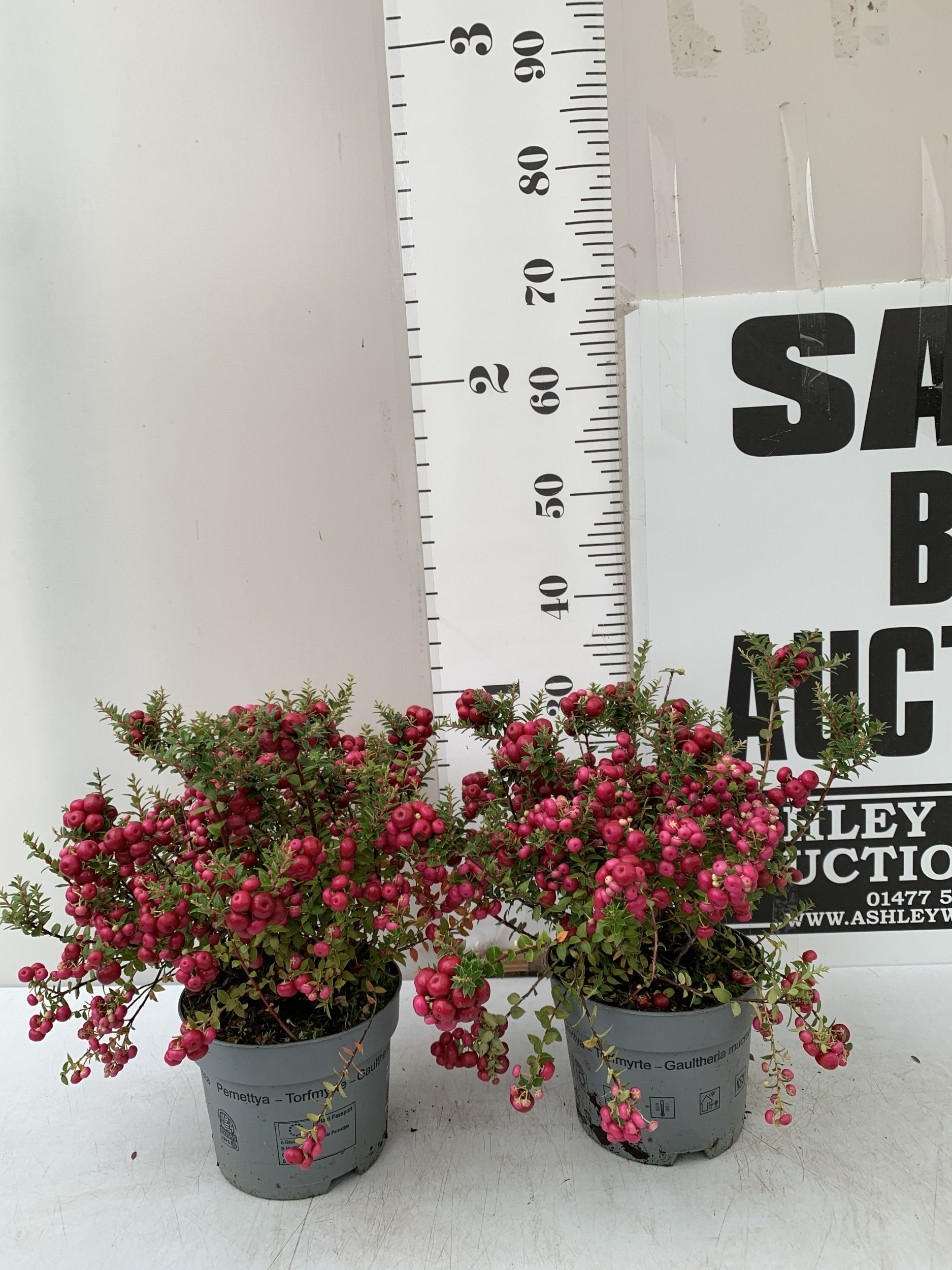 TWO PINK PERNETTYA GAULTHERIA MUCRONATA IN 2 LTR POTS. FULL OF BERRIES, APPROX 30CM TALL. TO BE SOLD FOR THE TWO