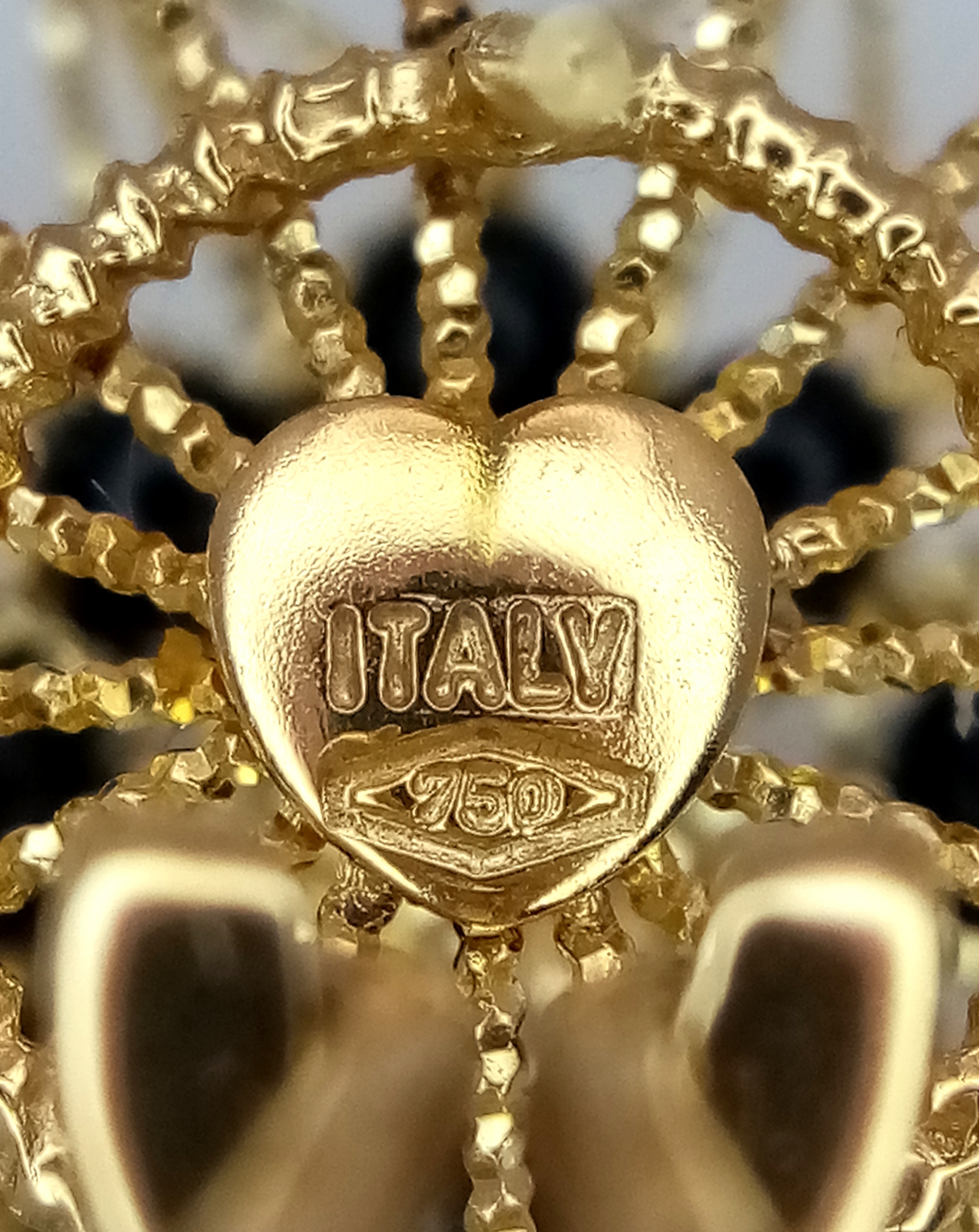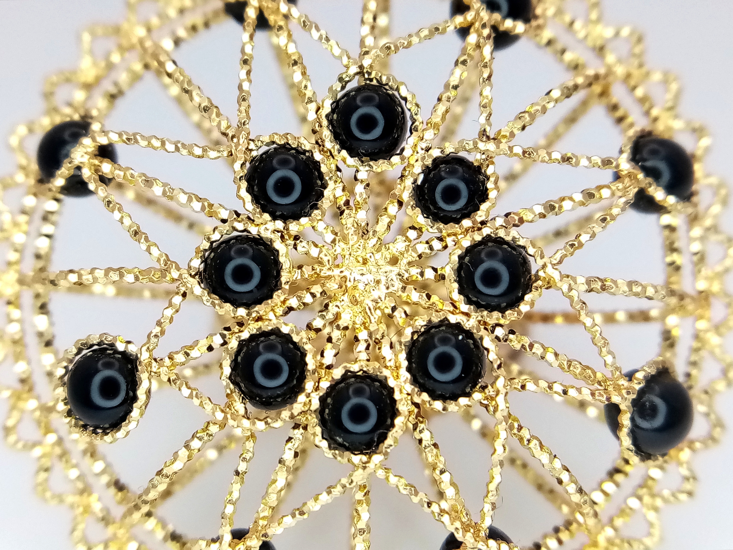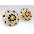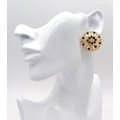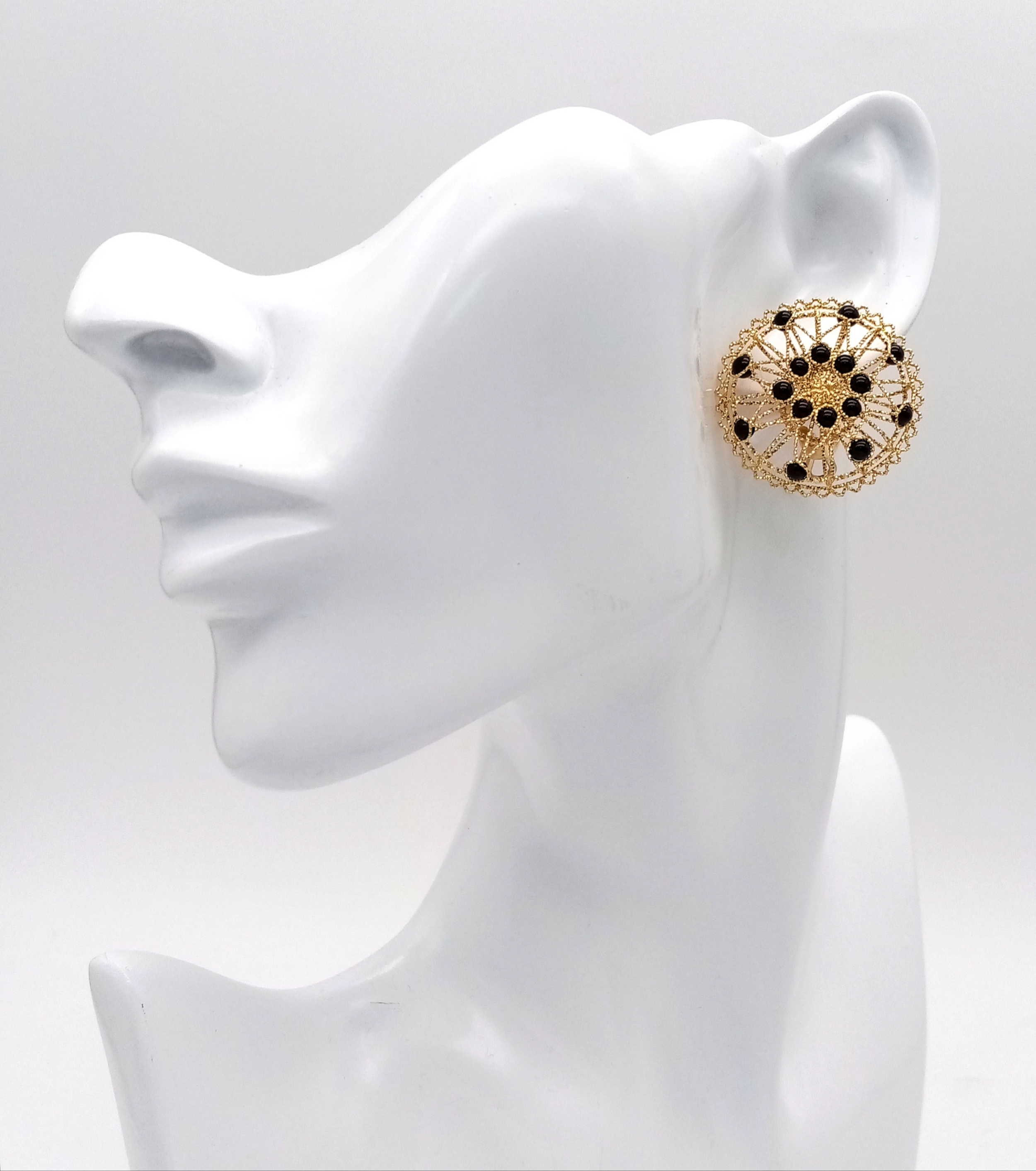 A Pair of Italian Fancy 18K Gold and Onyx Bead Earrings. Beautiful open-work in a circular form. 33mm diameter. 10.4g.