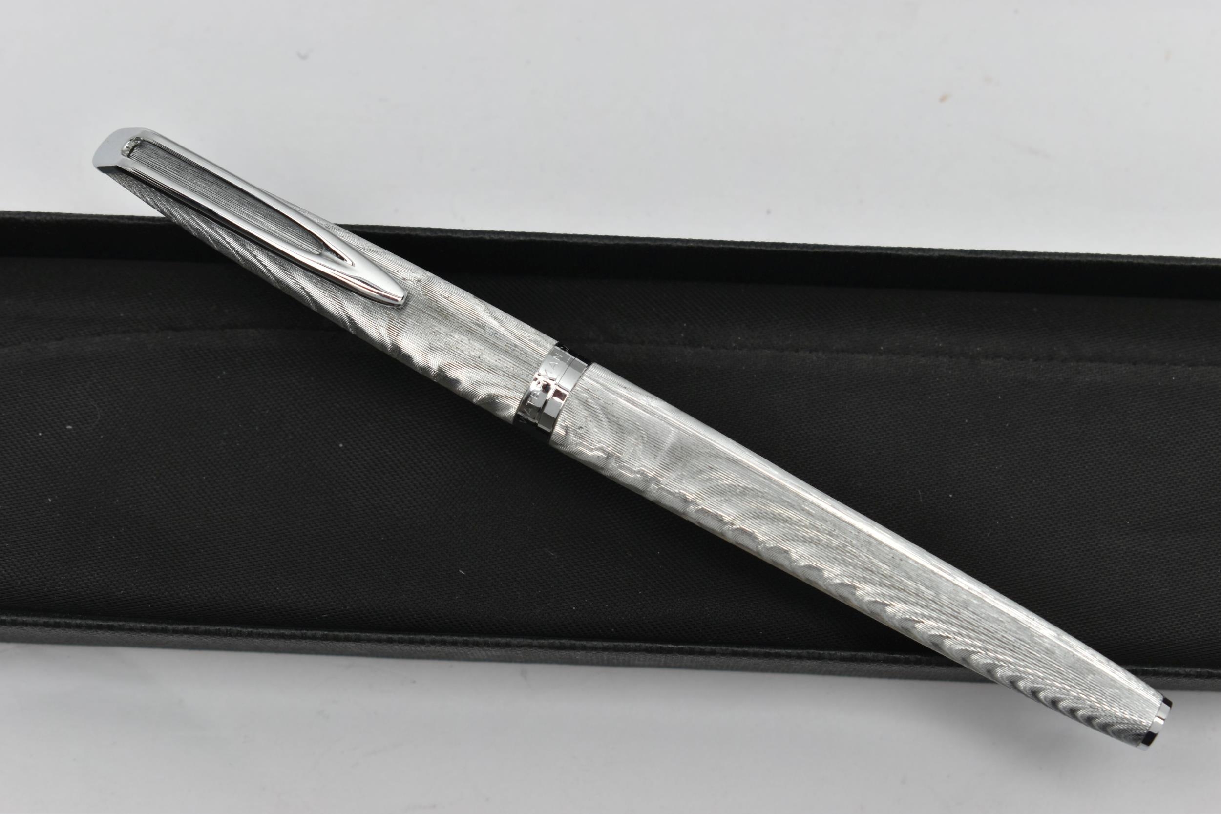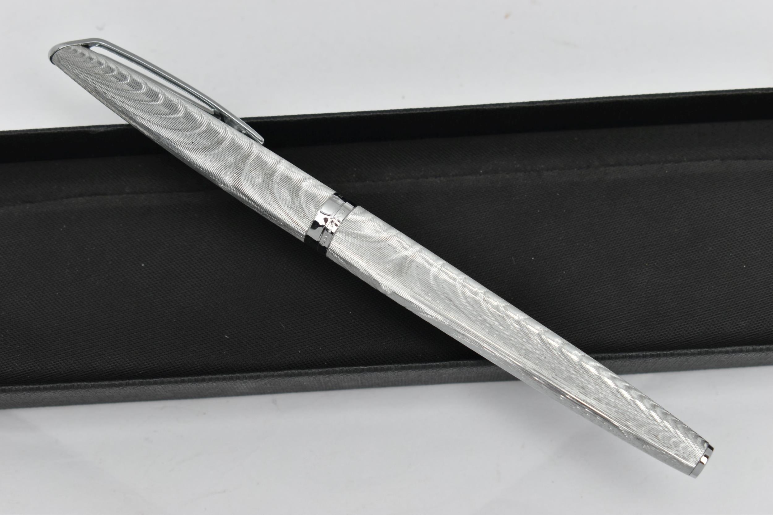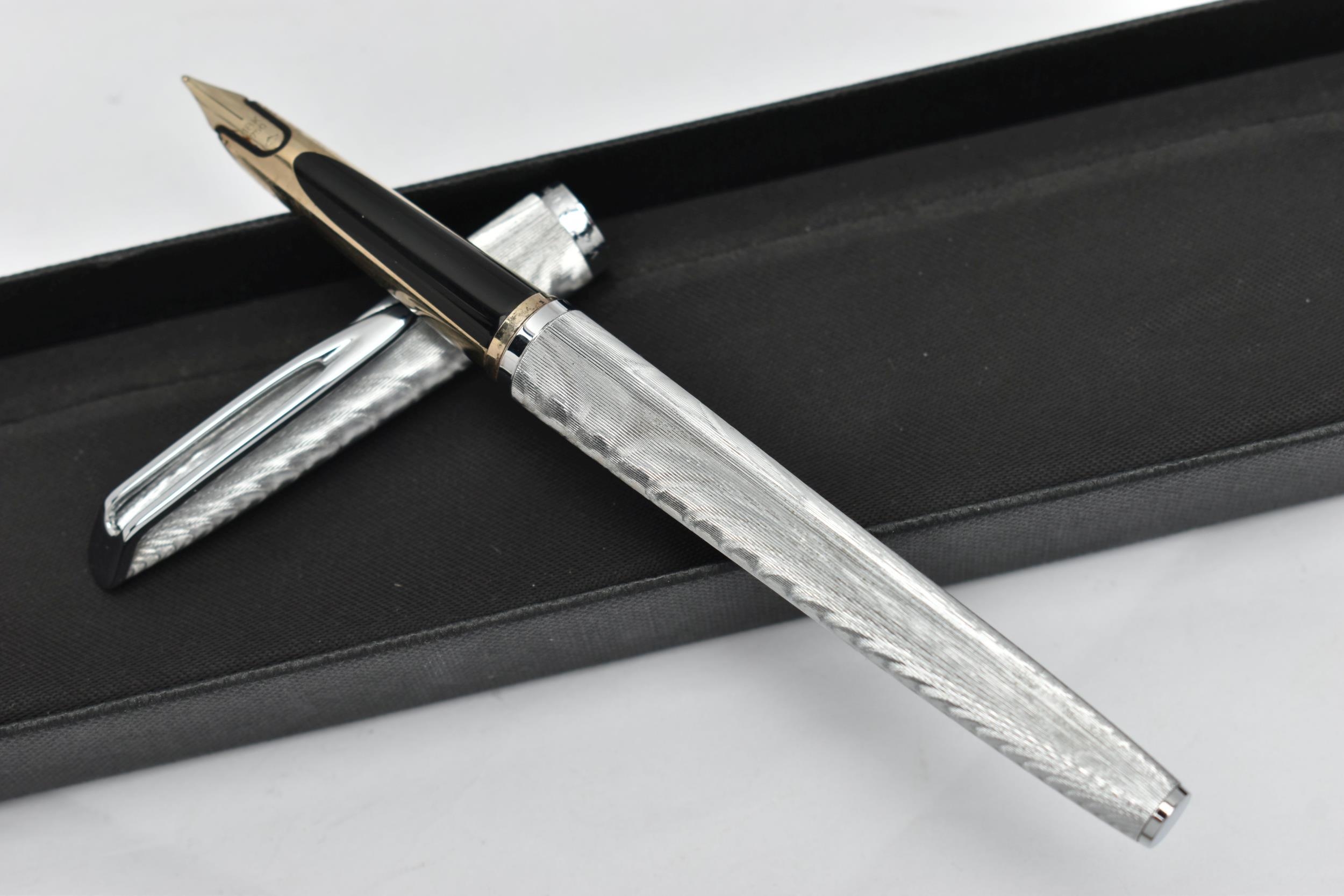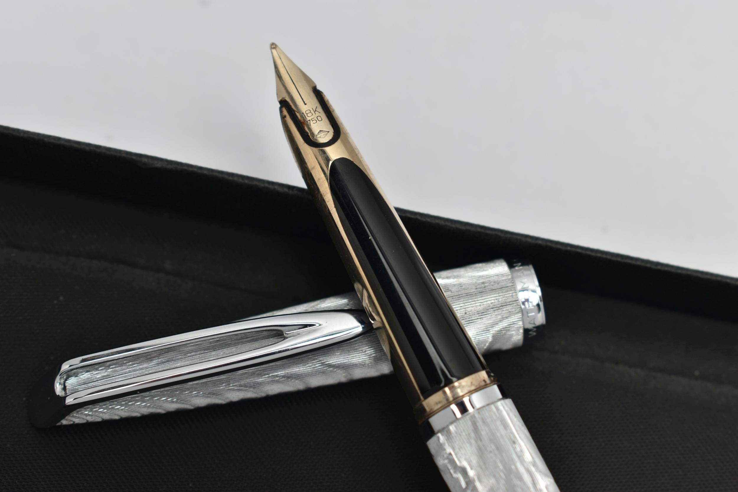 A 'WATERMAN' FOUNTAIN PEN, brushed effect, signed 'Waterman C/F, Made in France, fitted with a white metal nib stamped 750 18k (condition report: not tested, general light wear)
