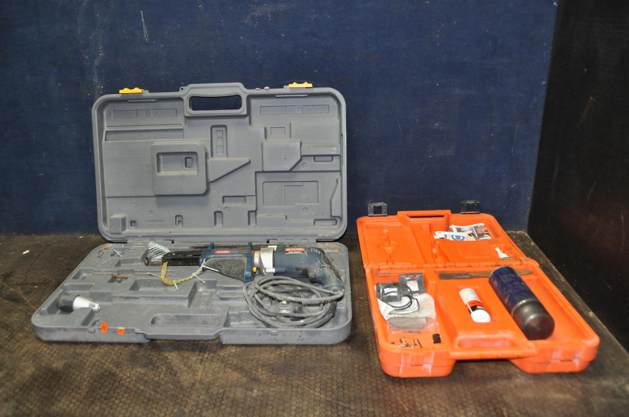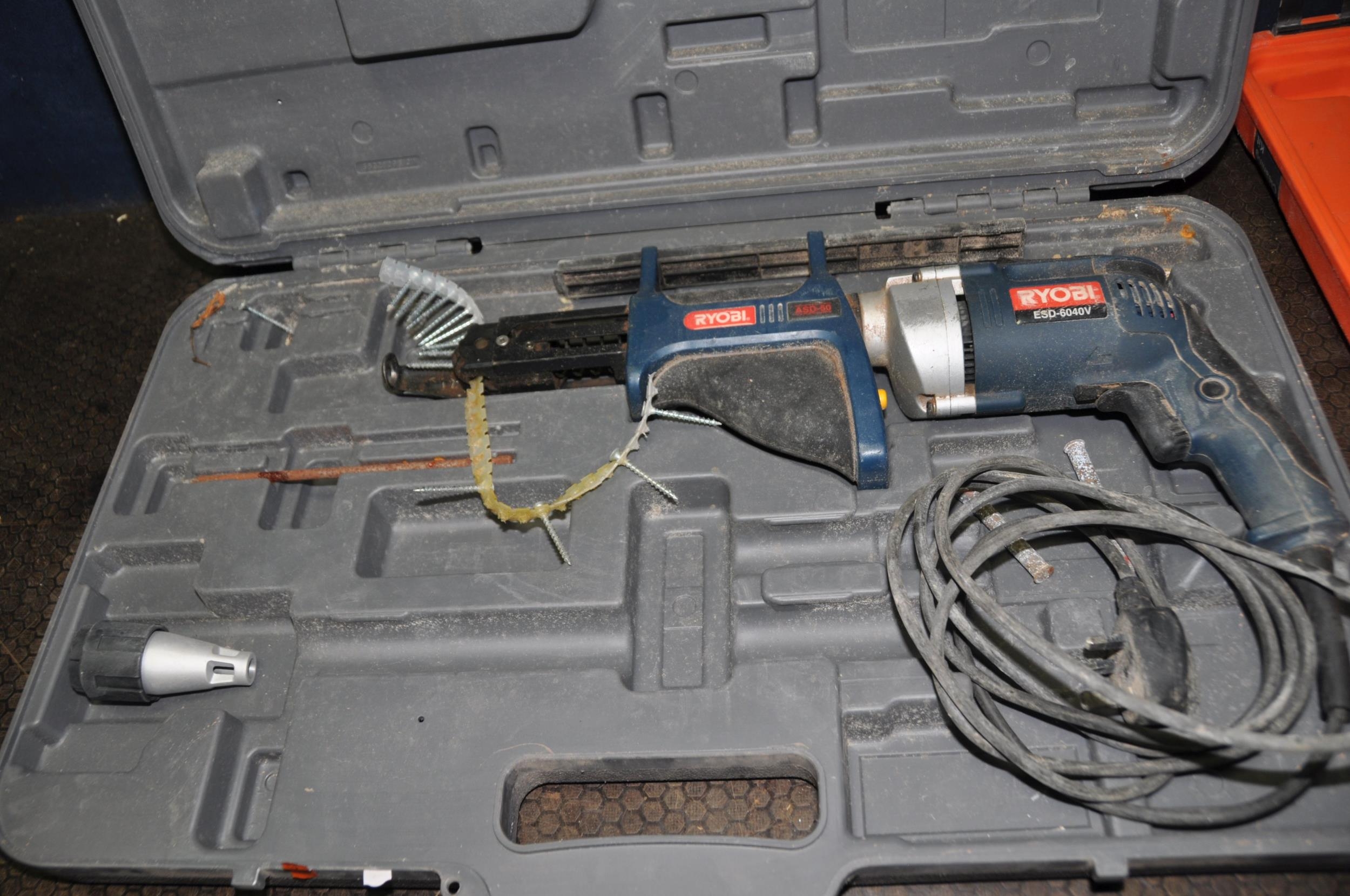 A CASED RYOBI ESD-6040V 240V ELECTRIC SCREWDRIVER (PAT pass and working) and a Plasplode Impulse cleaning kit (some bits missing)