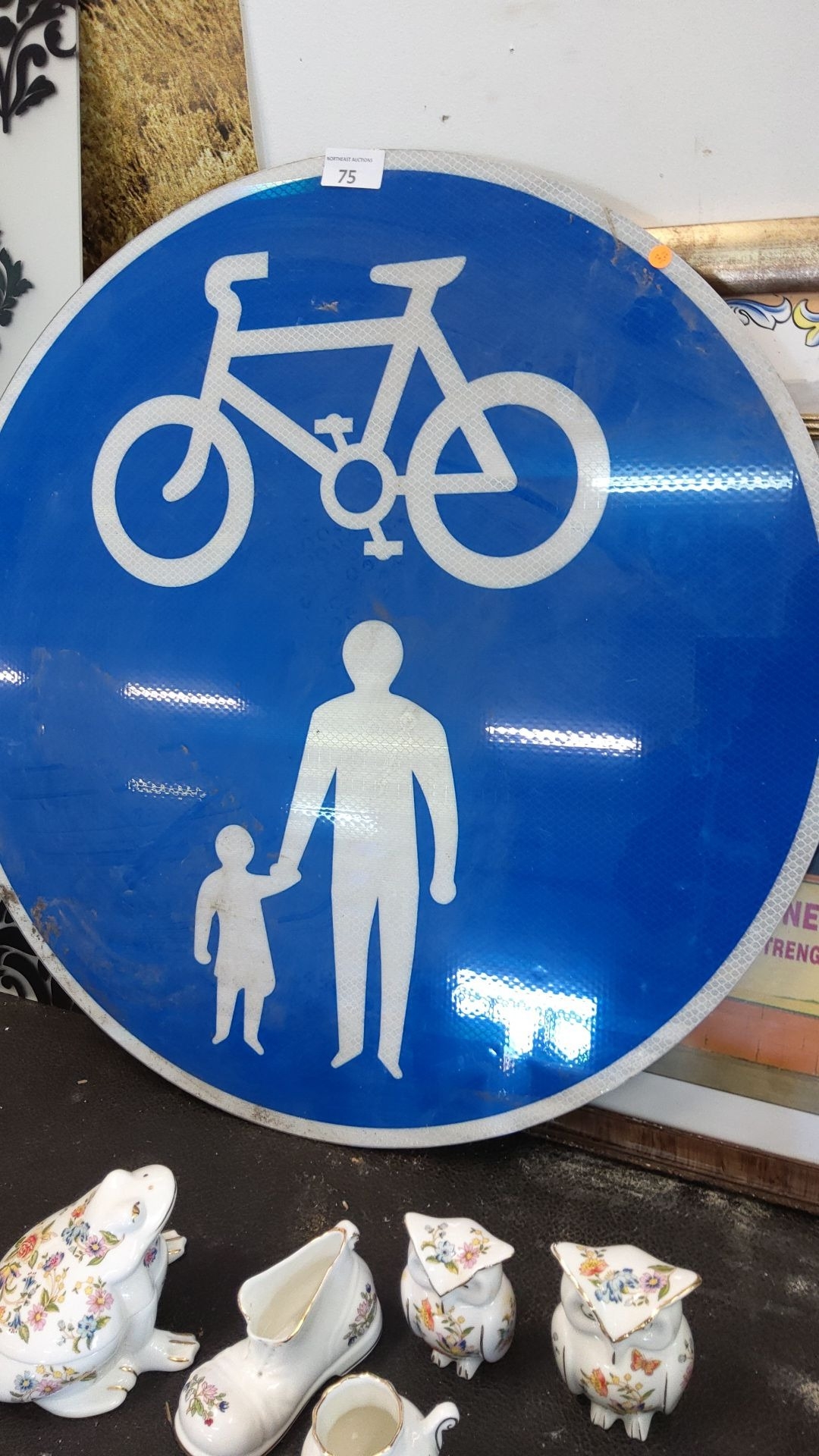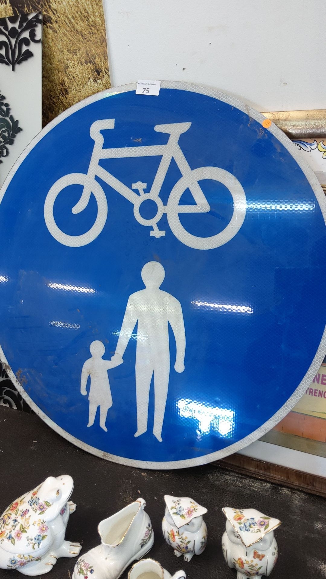 Blue reflective aluminium circular cycle-and-pedestrian sign