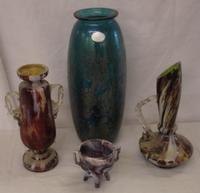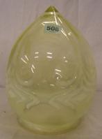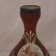 Victorian Vaseline Glass Over Painted Red/Brown Vase with silver rim, decorated with panels of cherubs