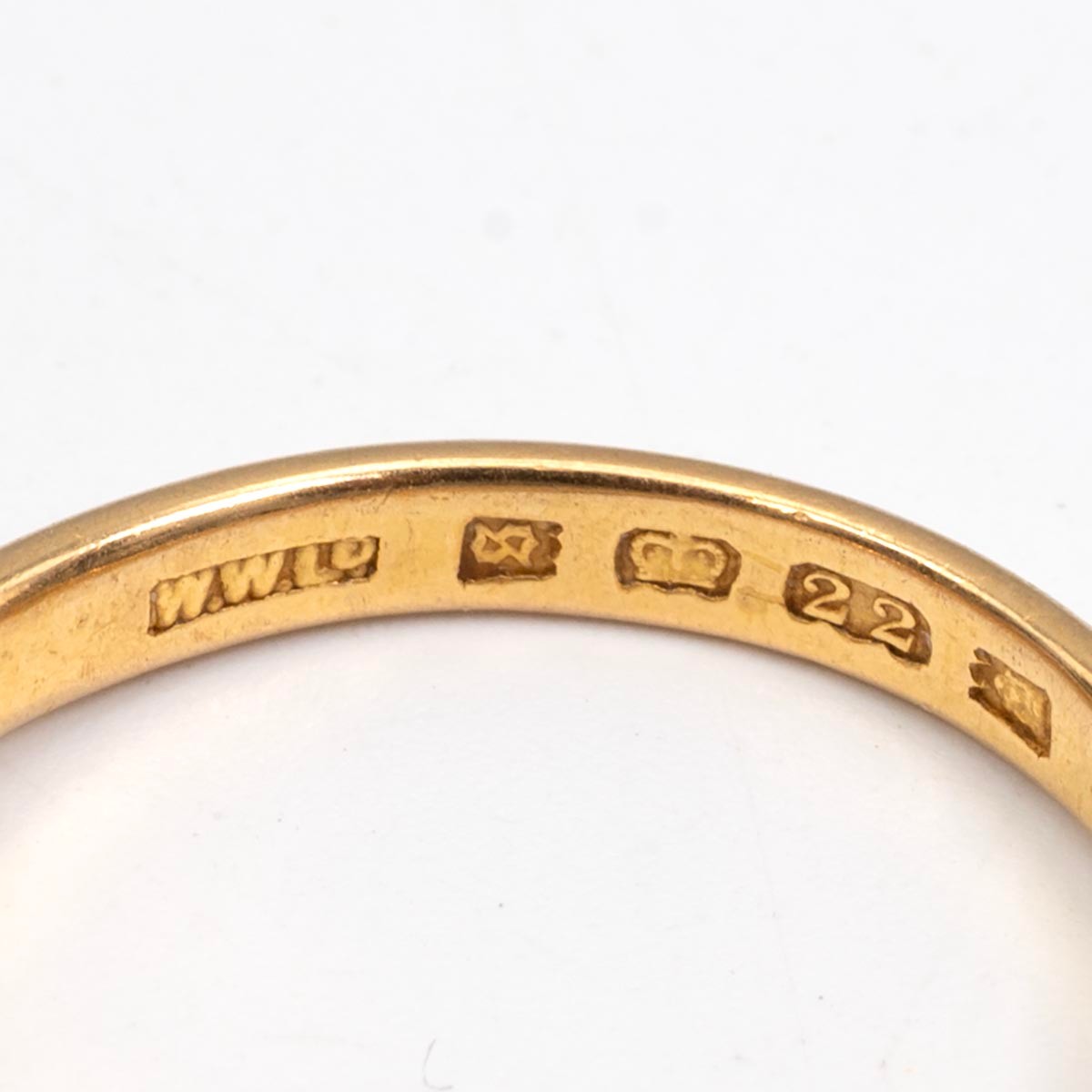 We confirm hallmarks a little worn, this is a wedding band, later adapted.